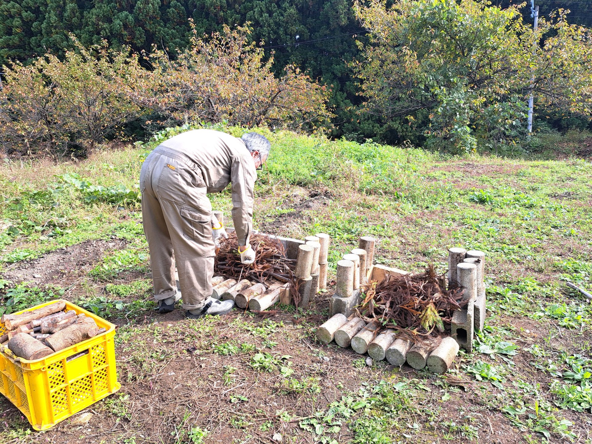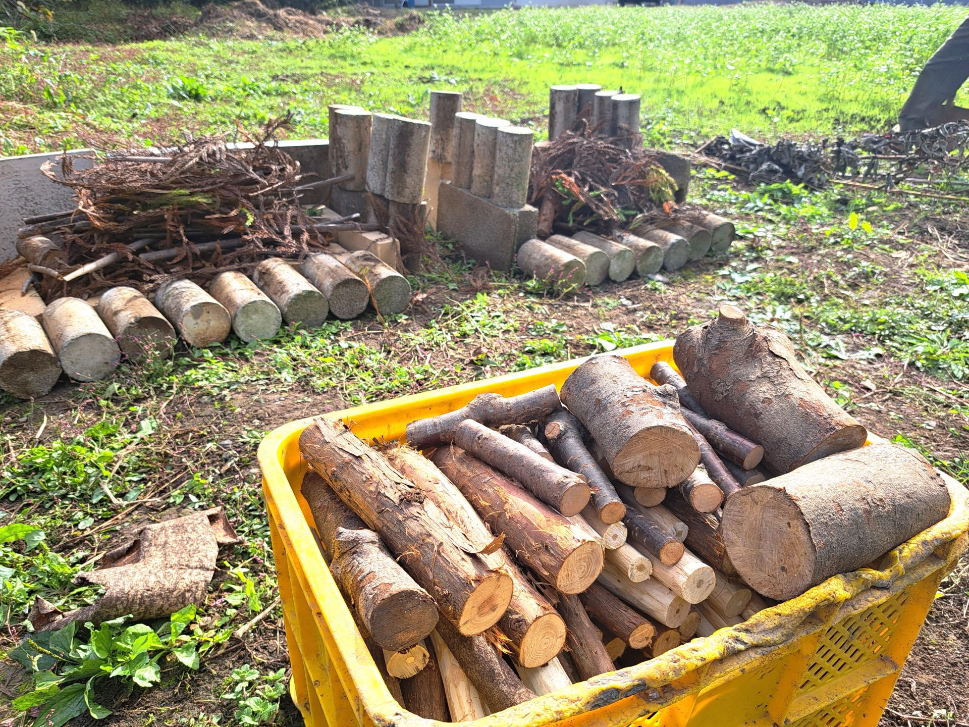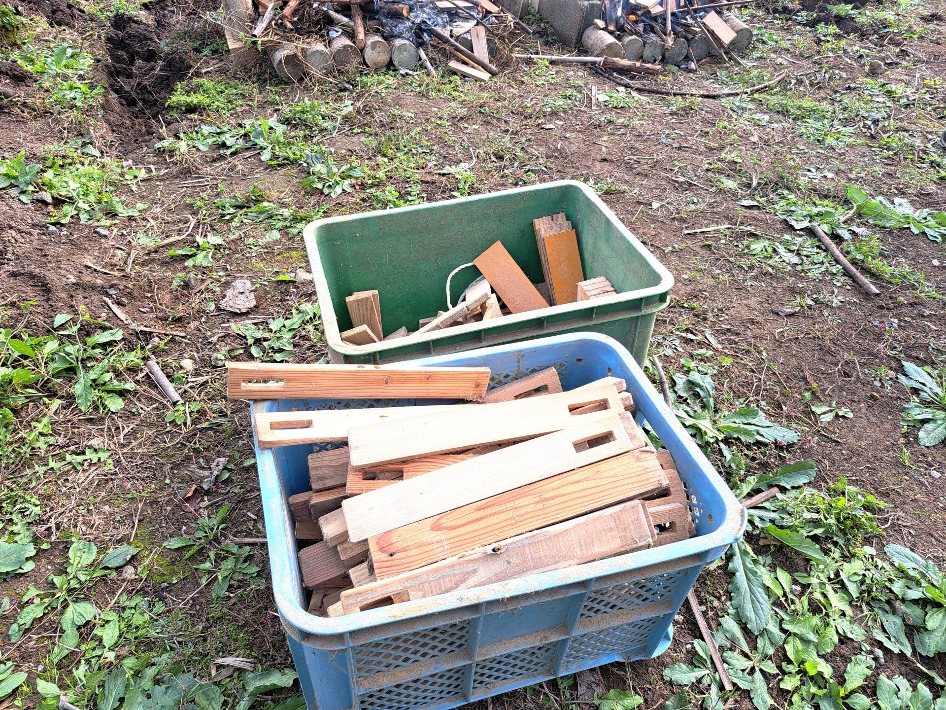 - ハウスに木工班の端材がいっぱいあって助かりました~(;^_^A