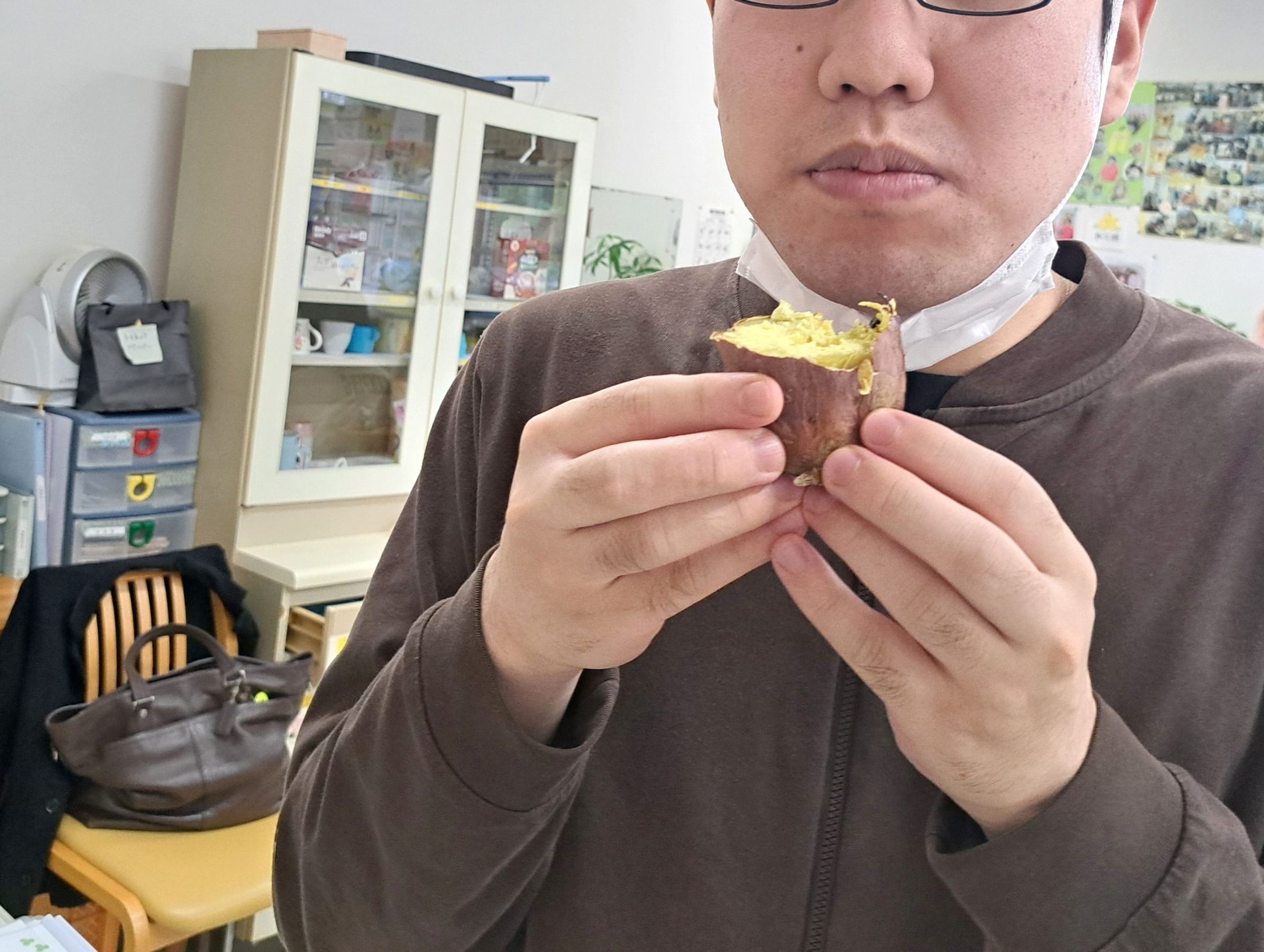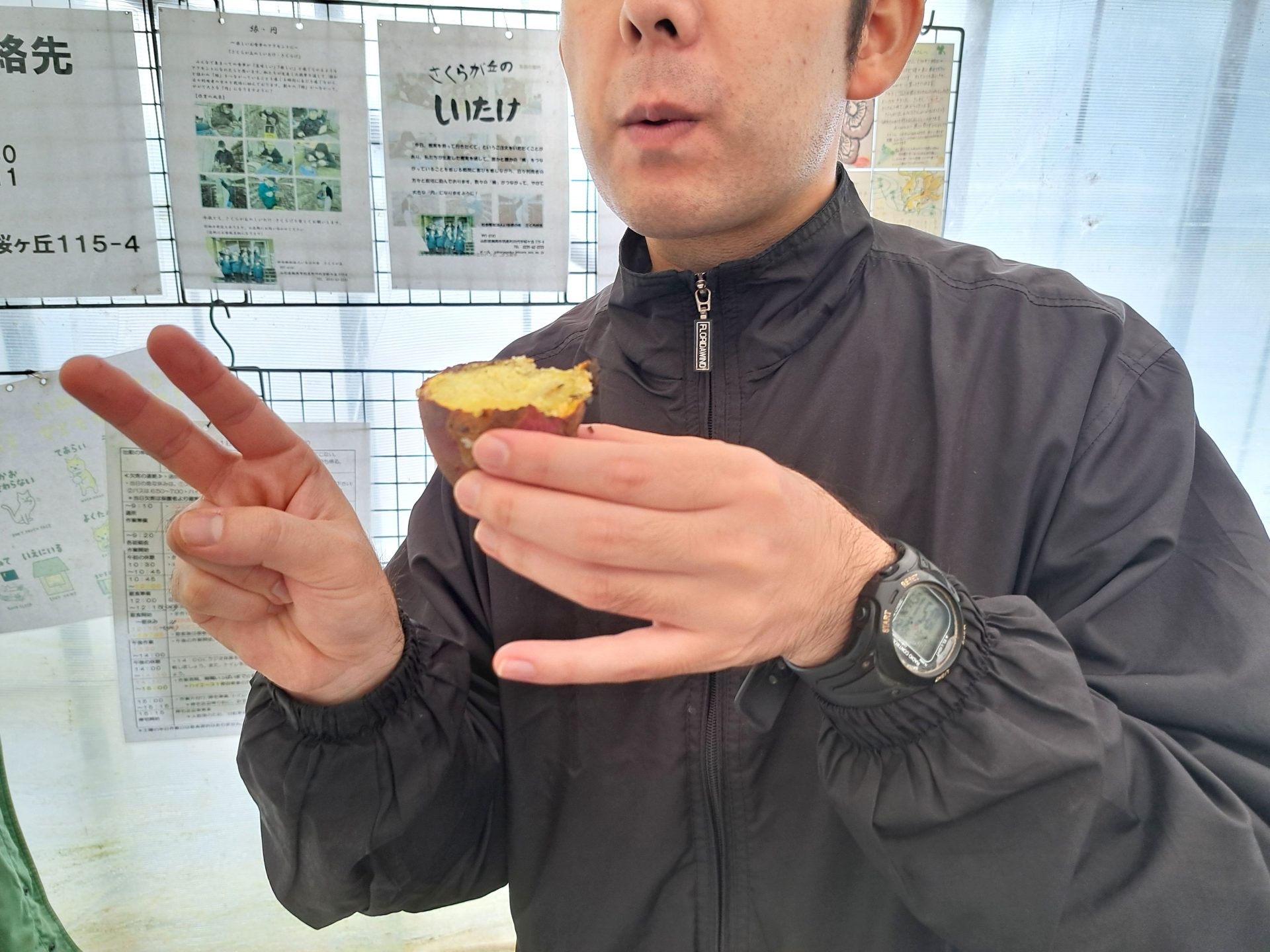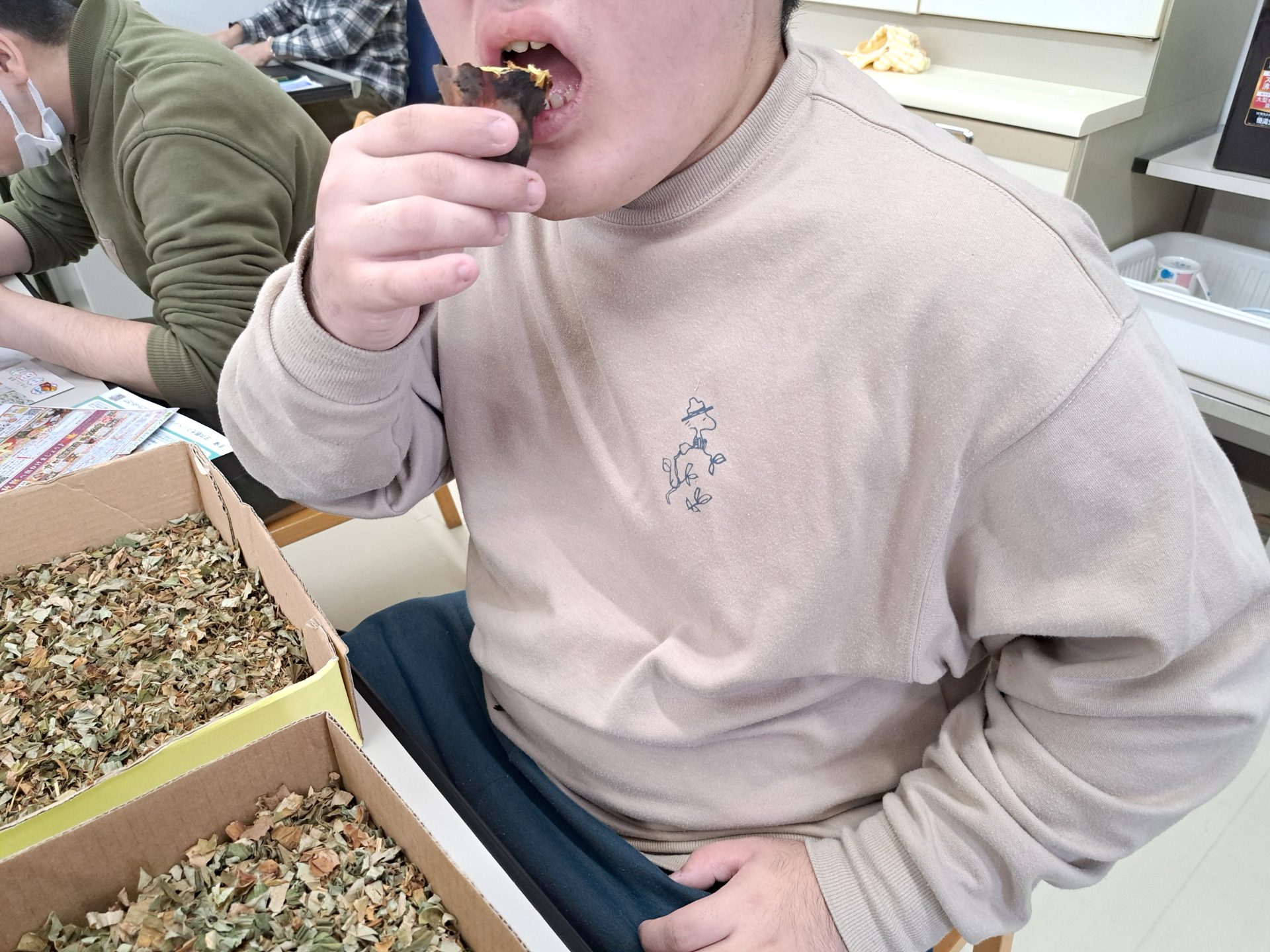 サツマイモを育てて収穫した新人職員さん、まさか焼き芋までしようとは!後ろ姿がたくましい!!