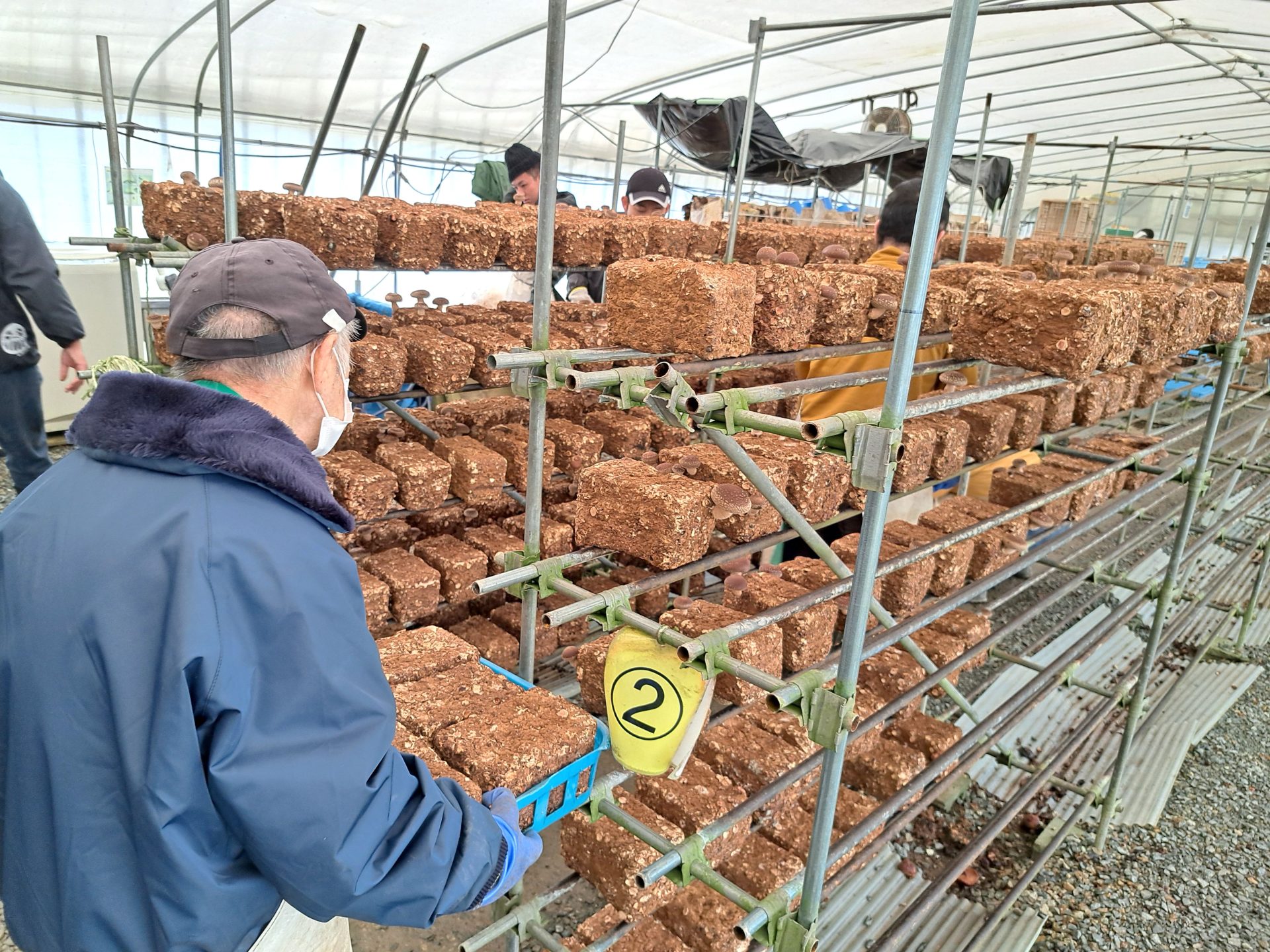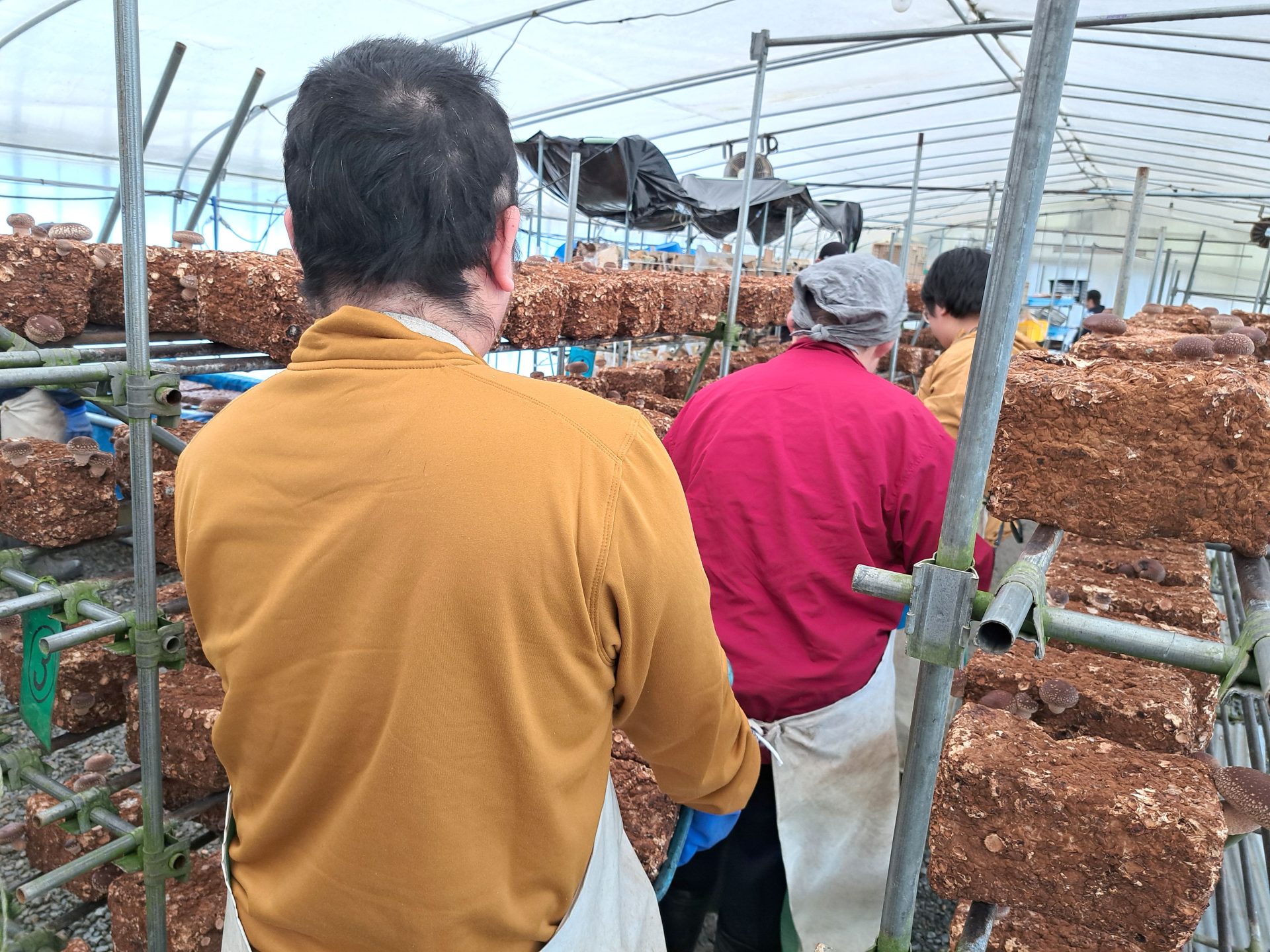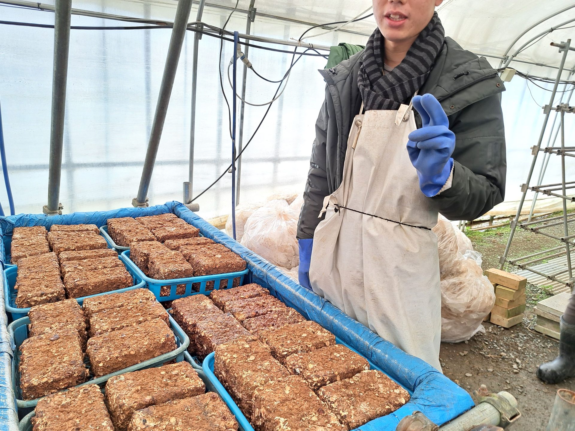 こちらは水に浸した菌床をまた棚に並べる作業です~♪