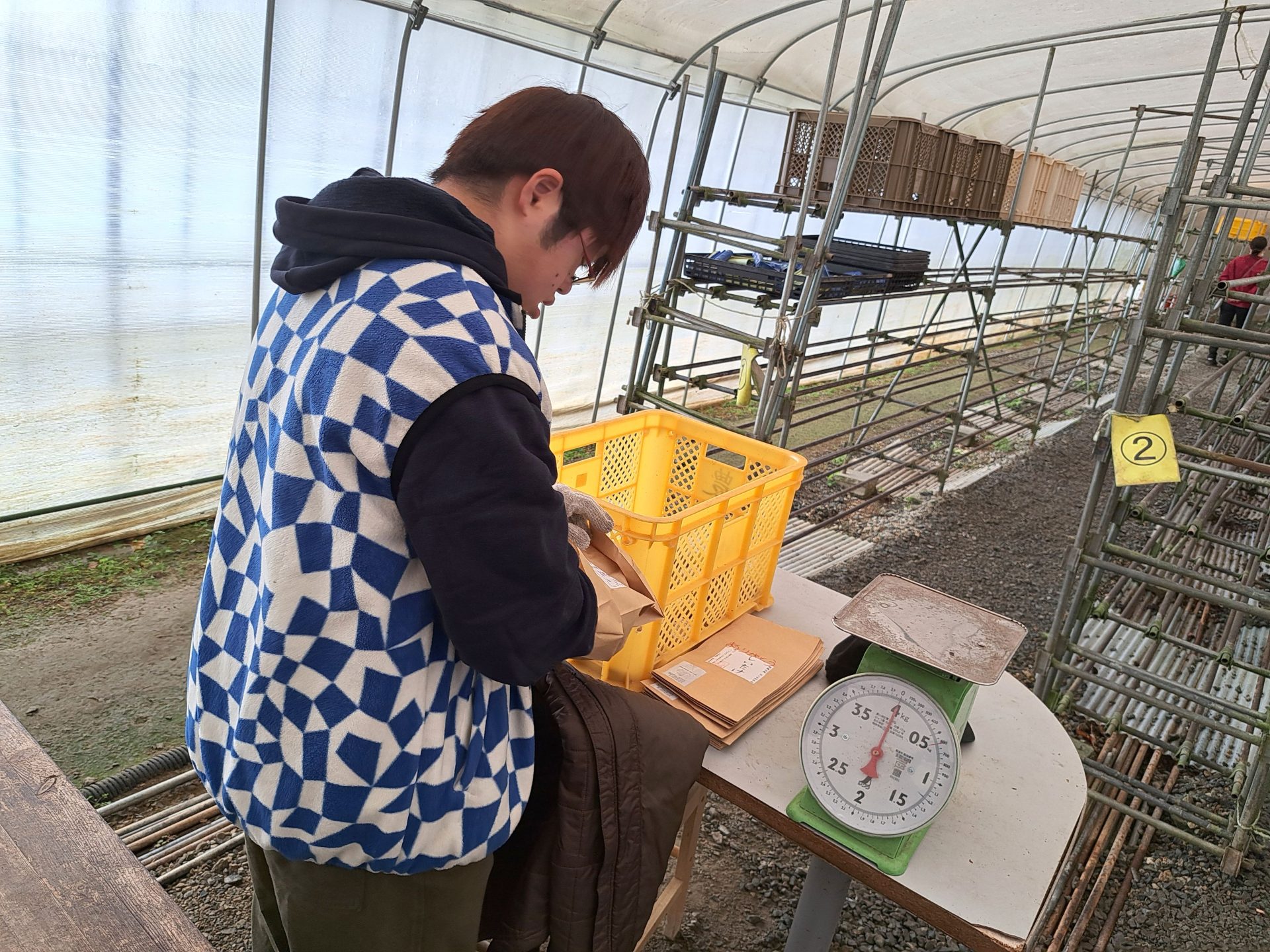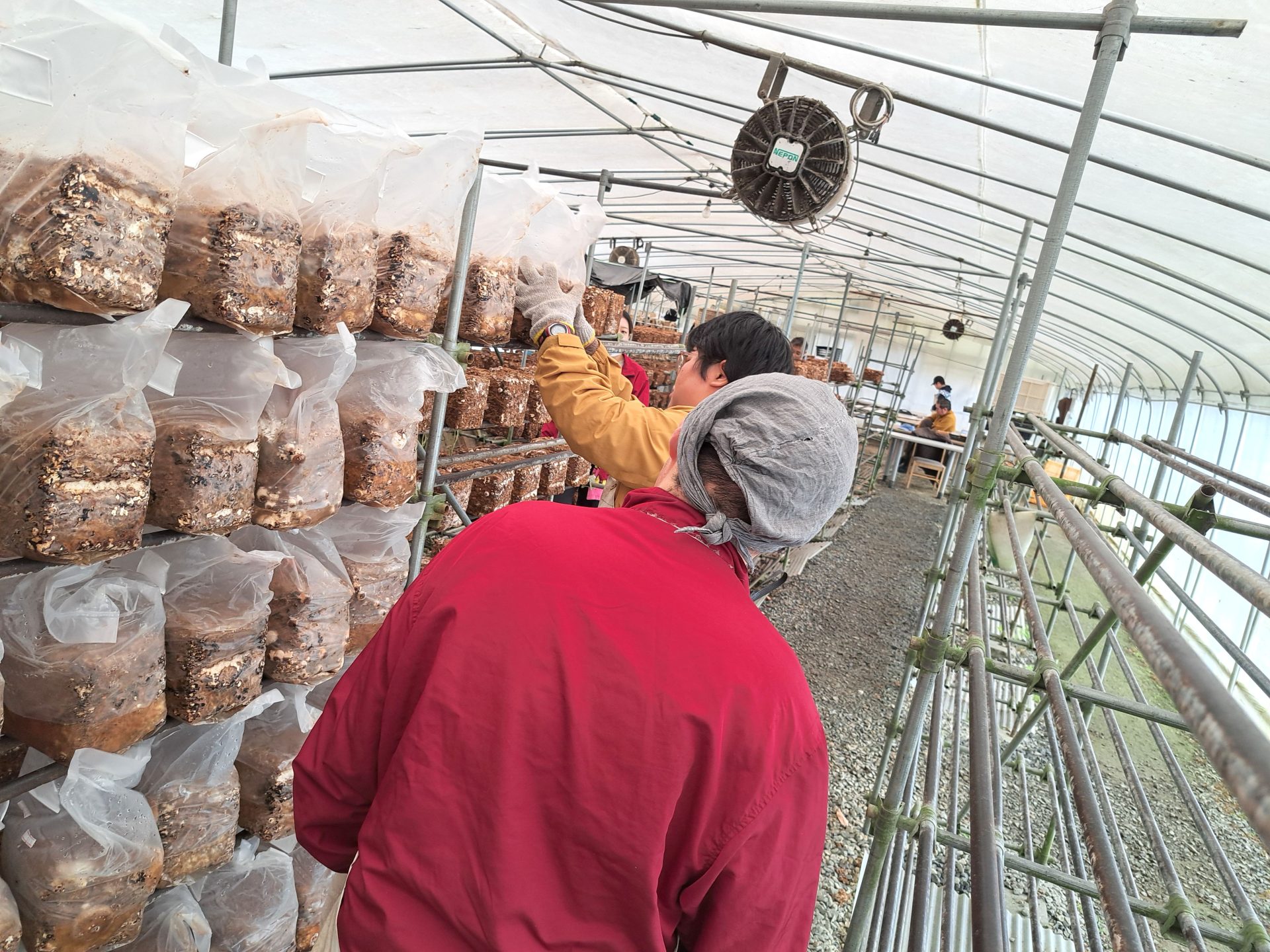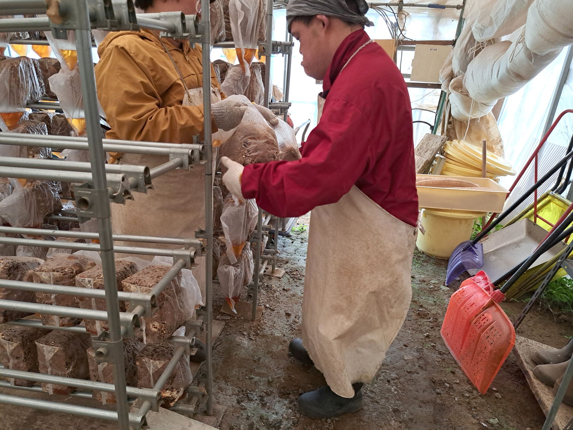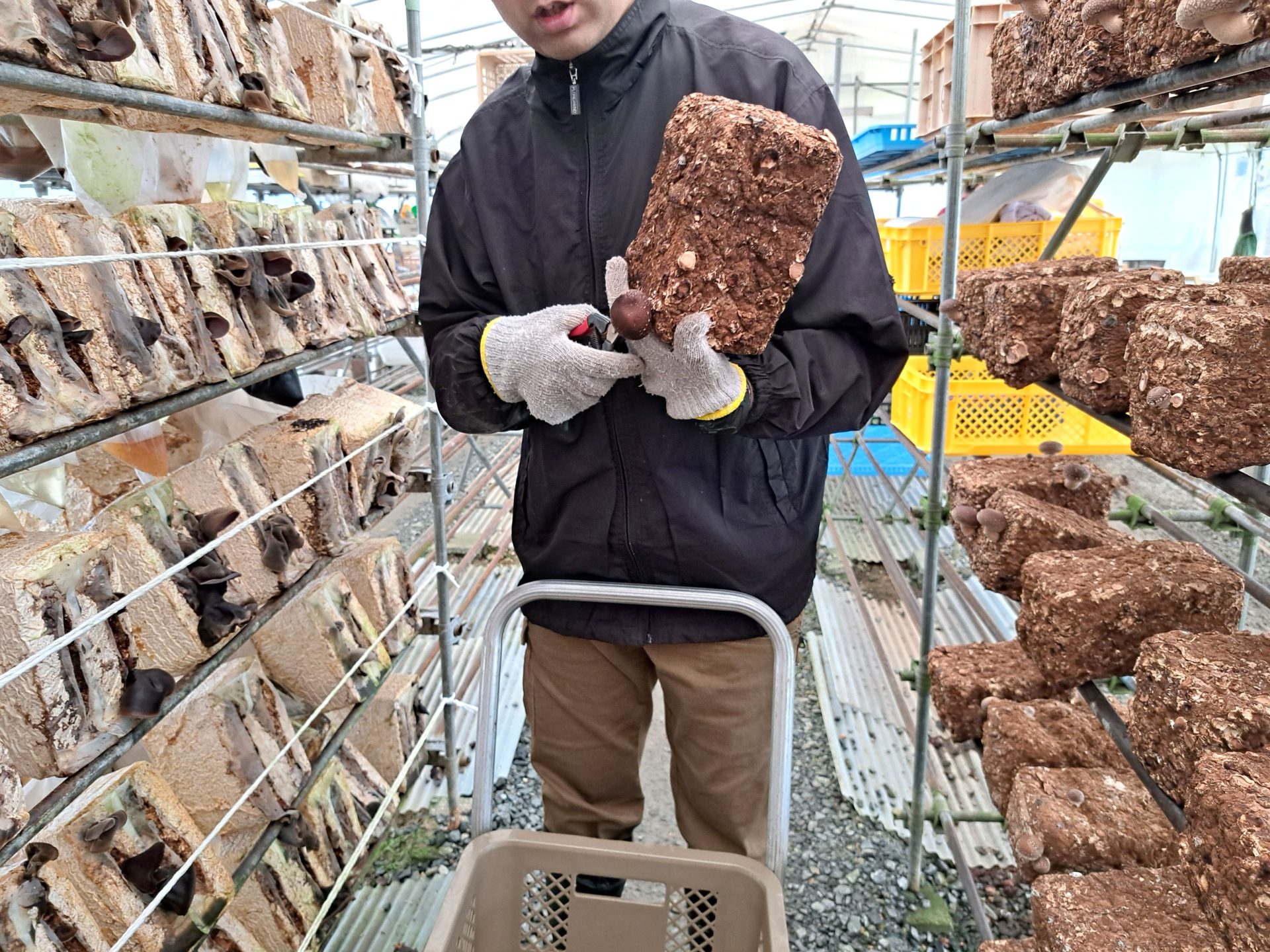 こちらは水に浸した菌床をまた棚に並べる作業です~♪