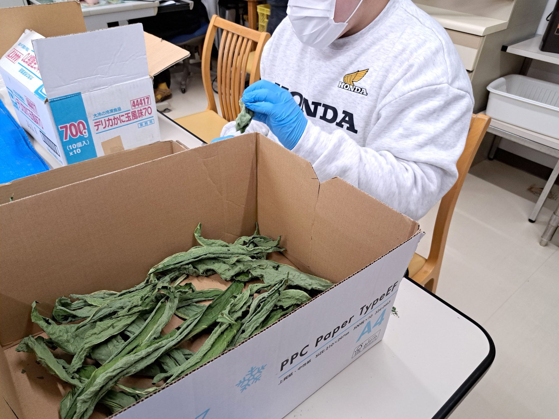 加工班もバリバリお仕事中~「朝ごはんは~ごはんと野菜と~色々だ~」