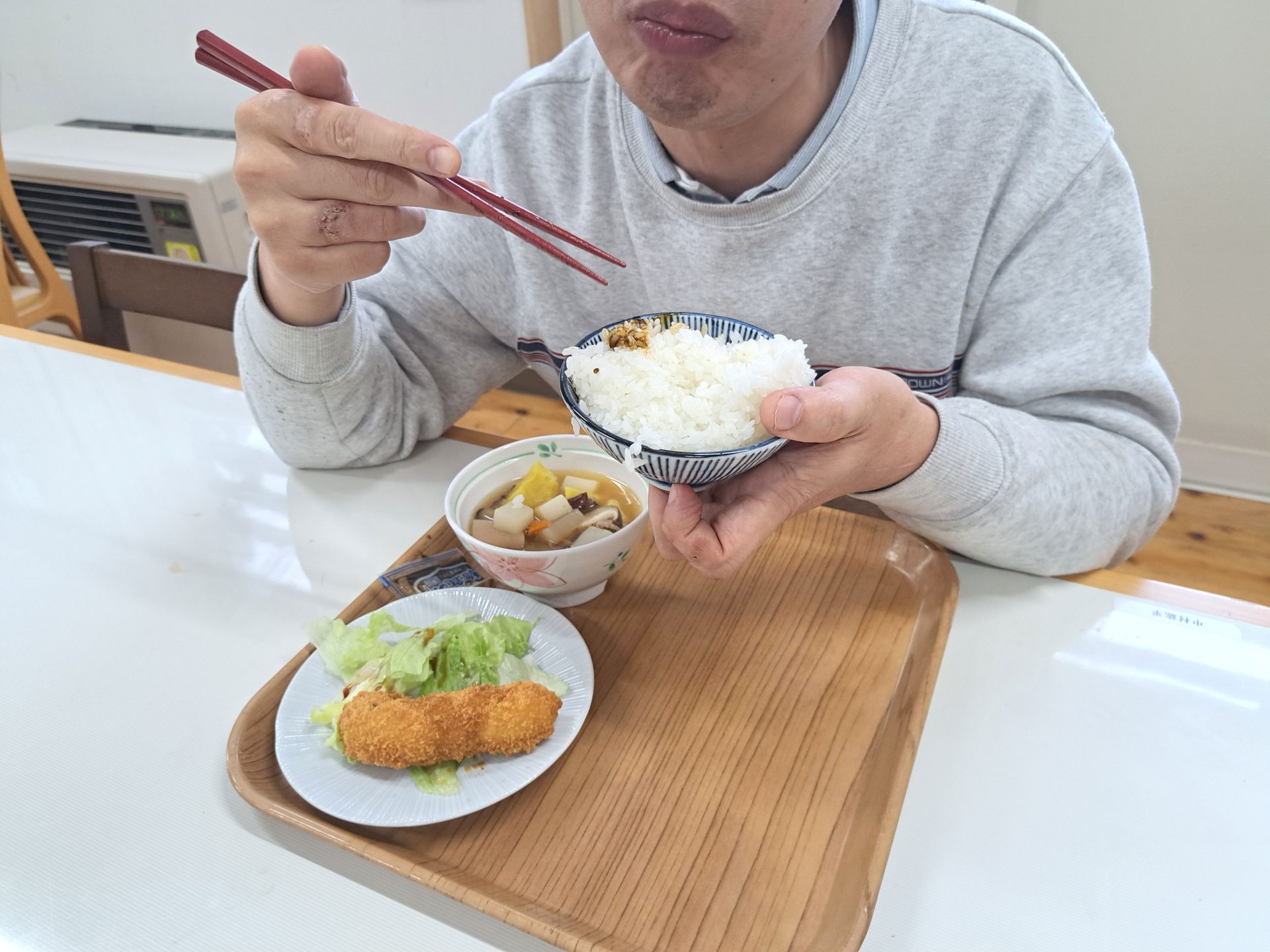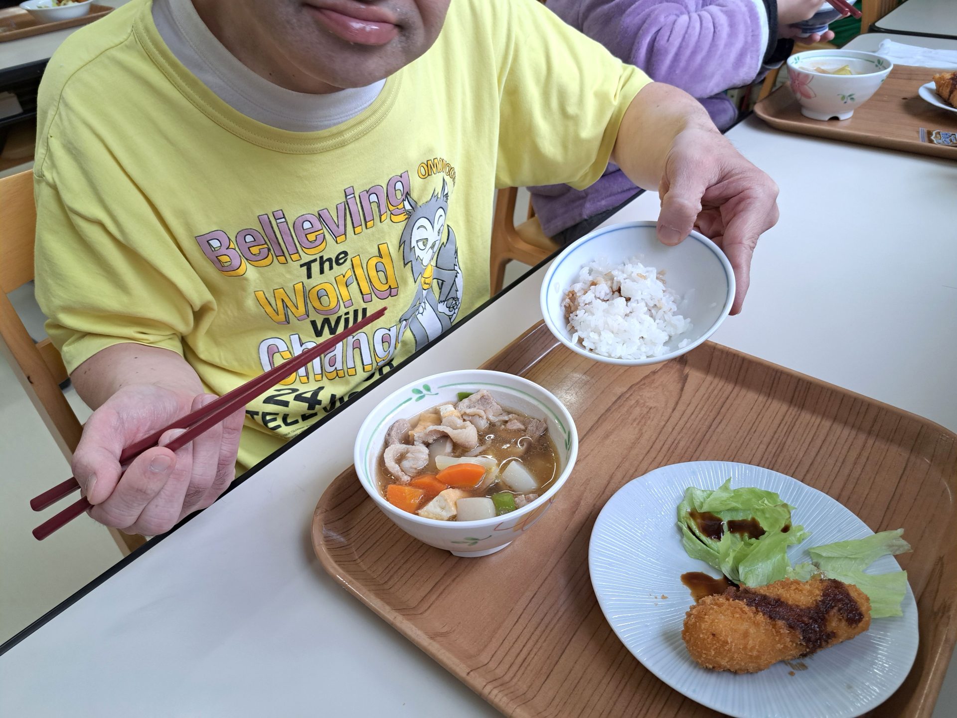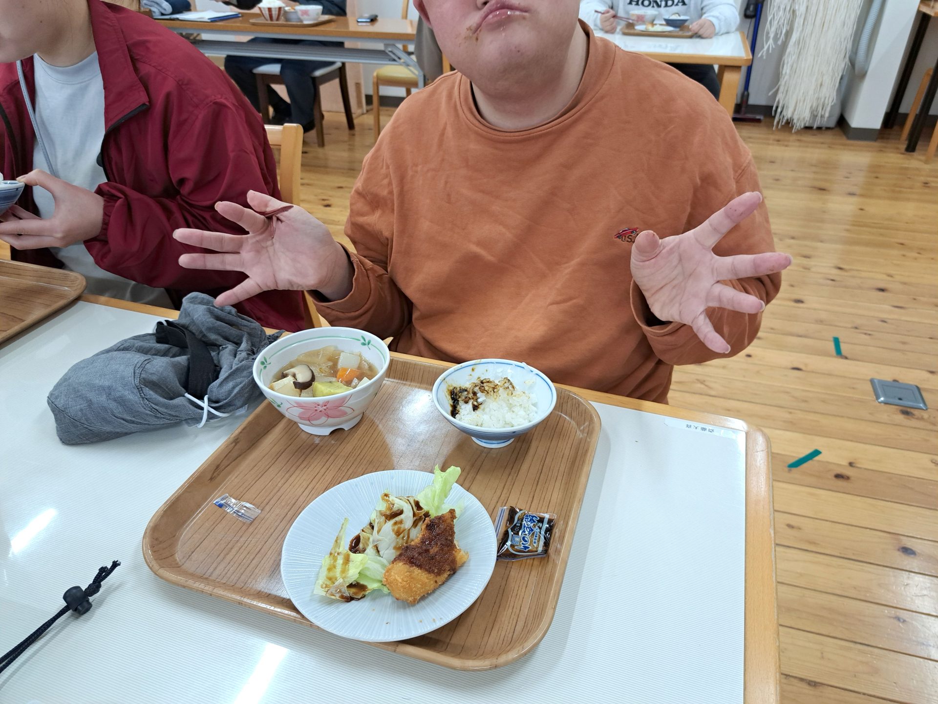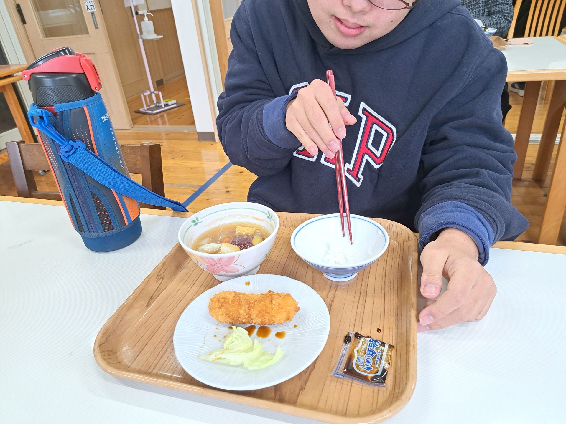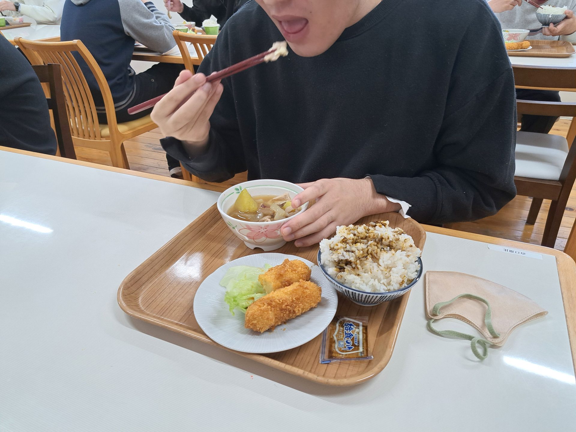 「え~今日のメニューは~ご飯(佃煮のり)、クリームコロッケ、レタス、さつま汁~以上!!!」日課のメニュー読み上げタイム…