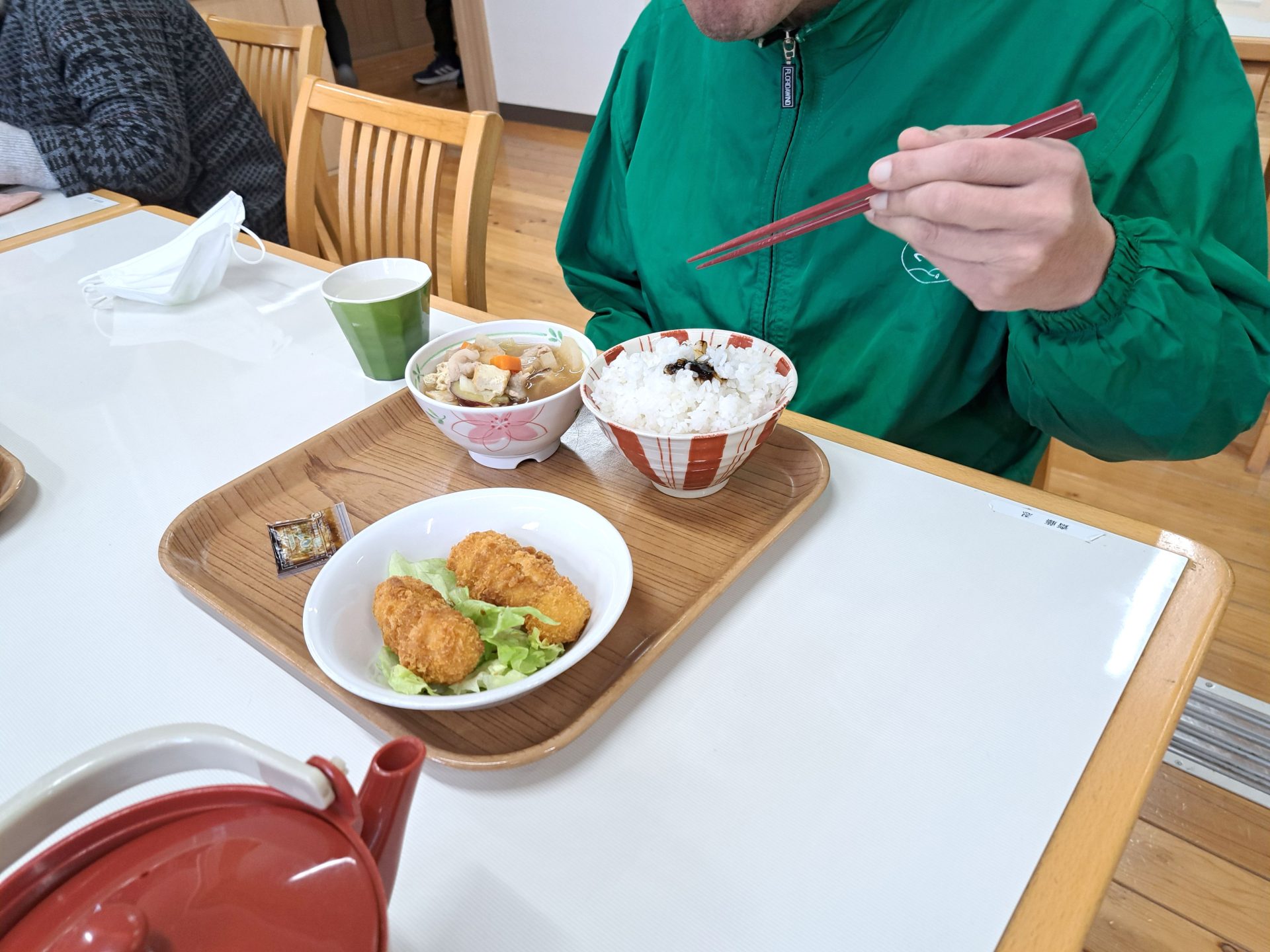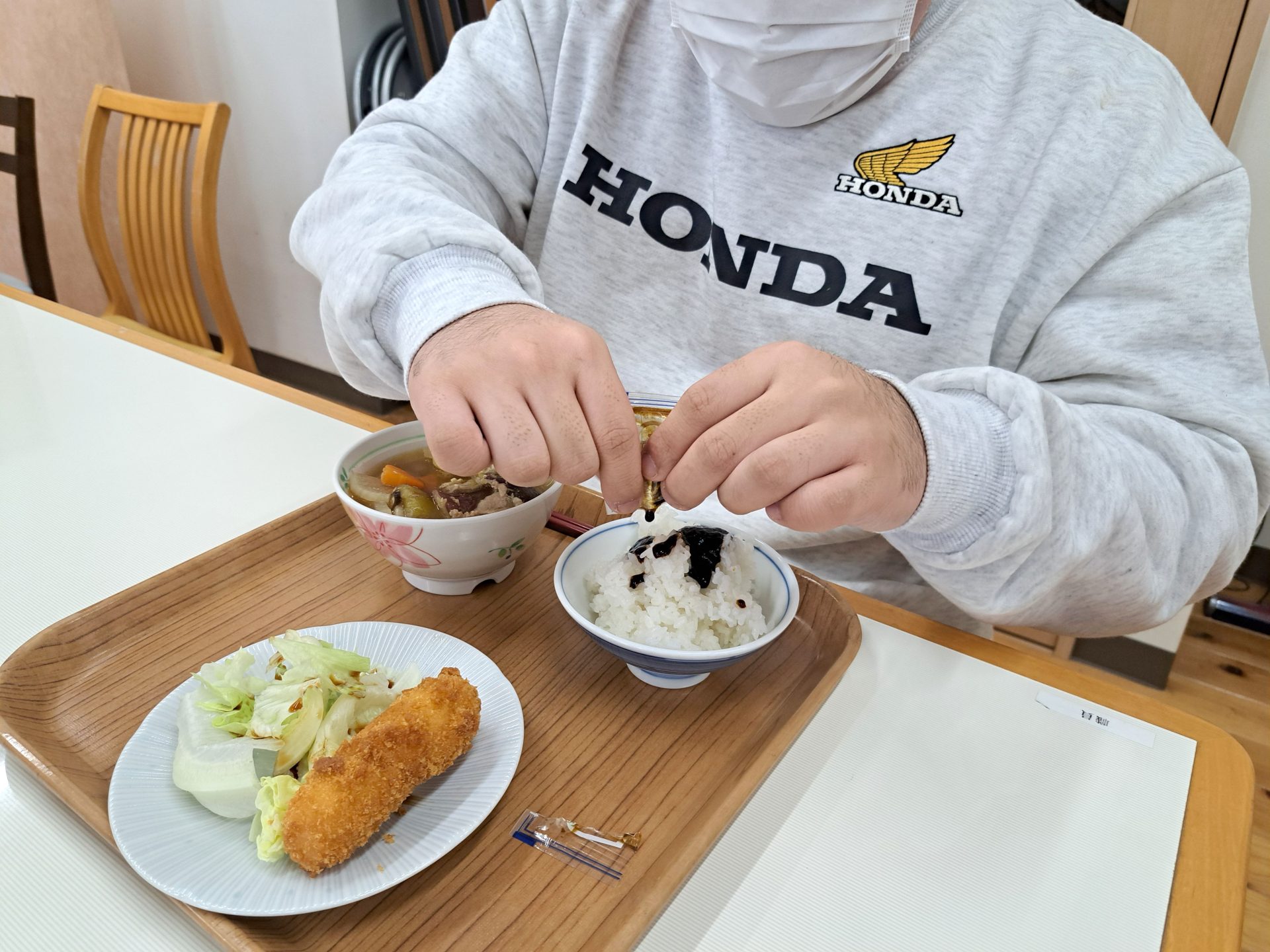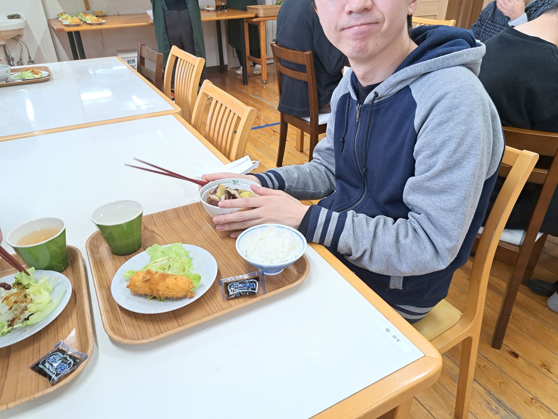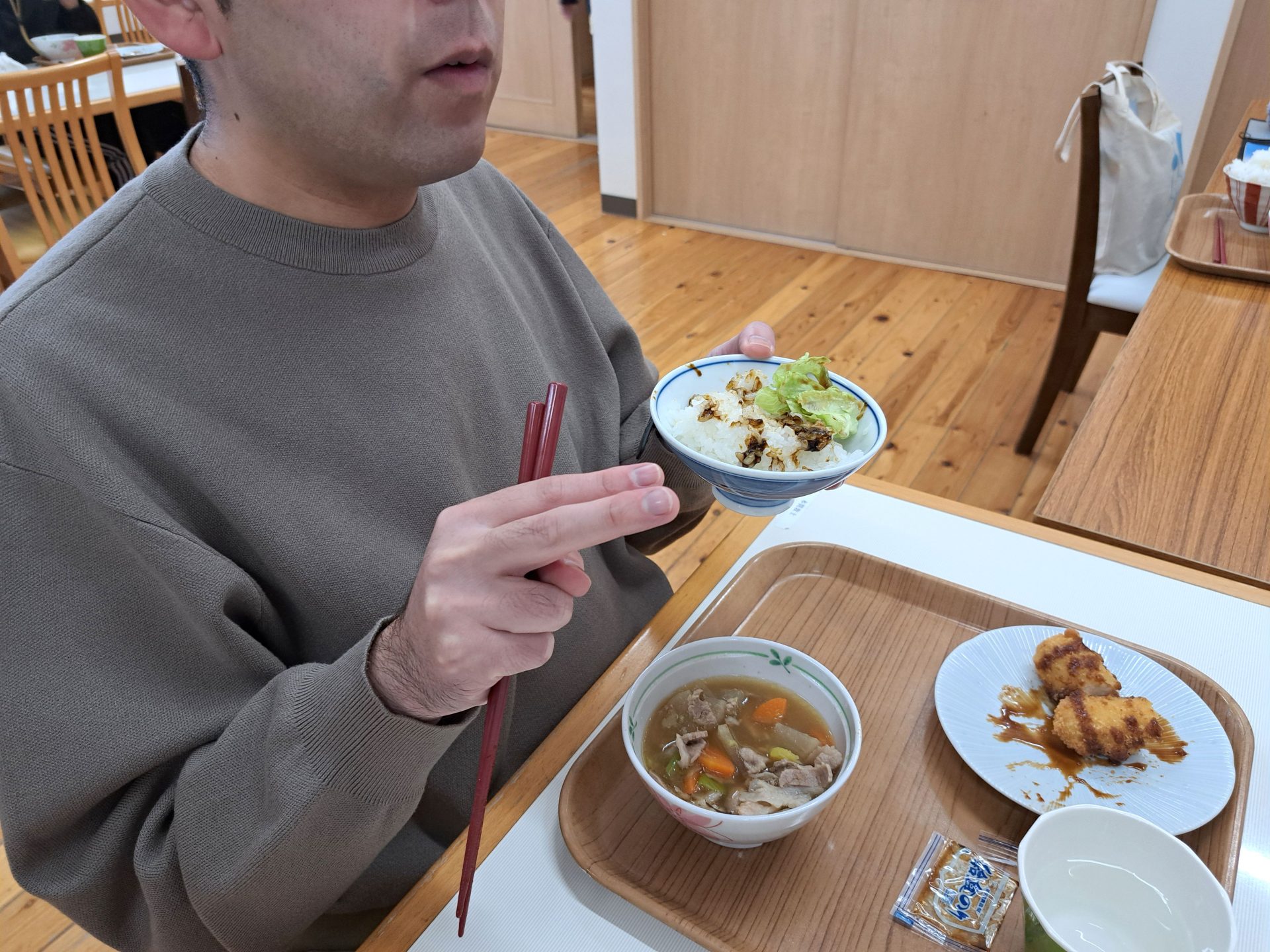 「え~今日のメニューは~ご飯(佃煮のり)、クリームコロッケ、レタス、さつま汁~以上!!!」日課のメニュー読み上げタイム…