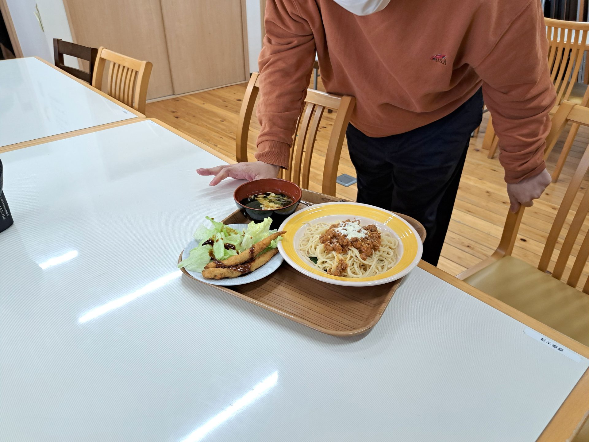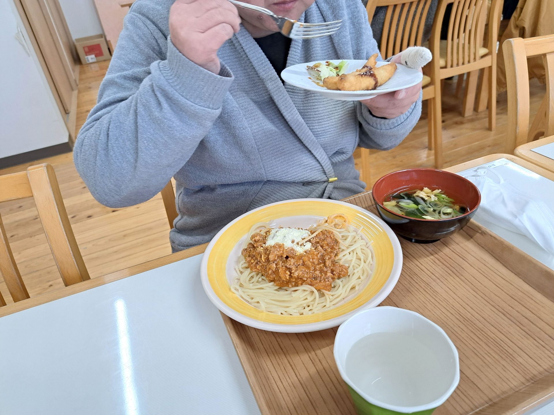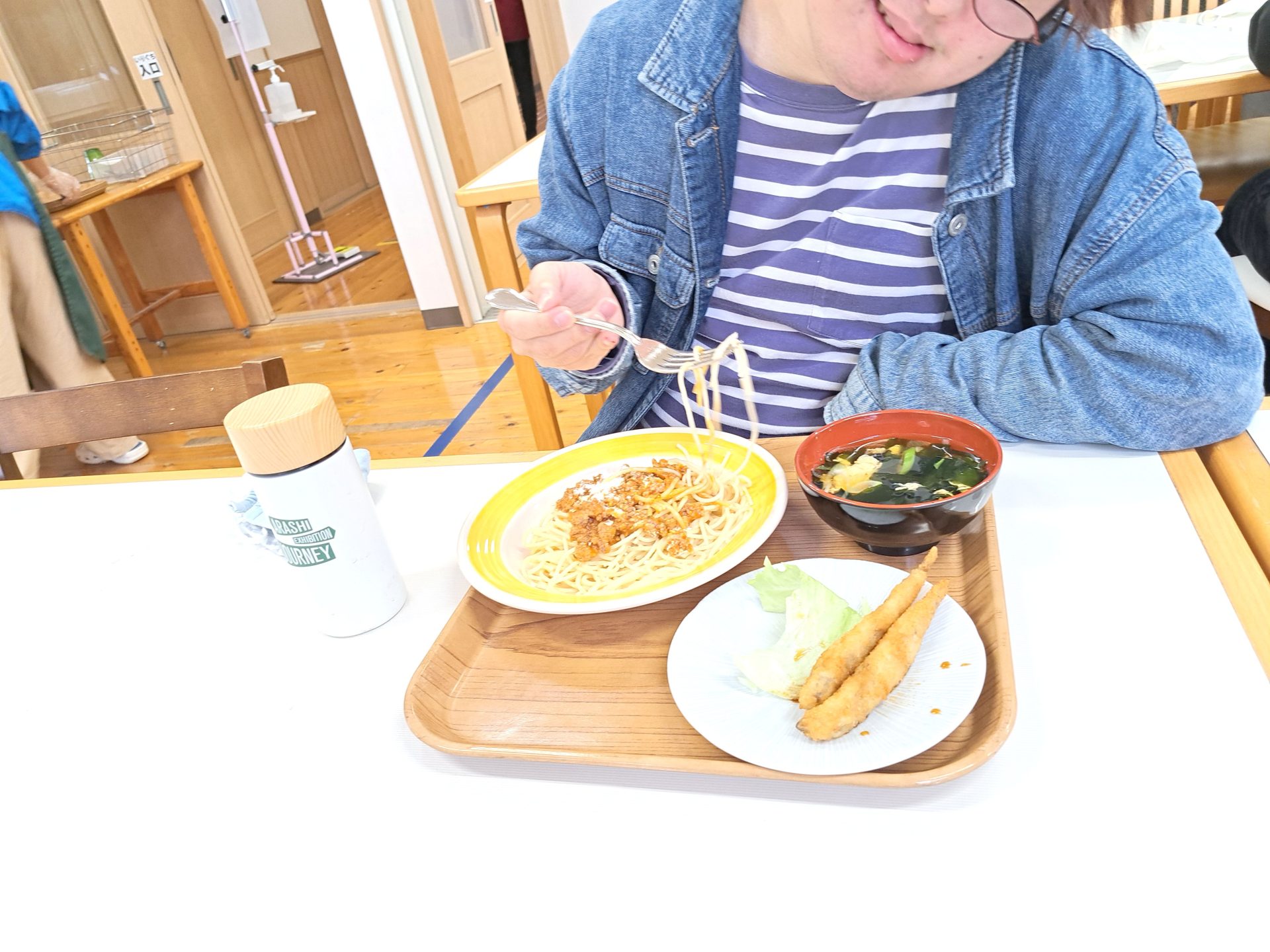 ミートソーススパと、シシャモフライですよ~お腹空いた!