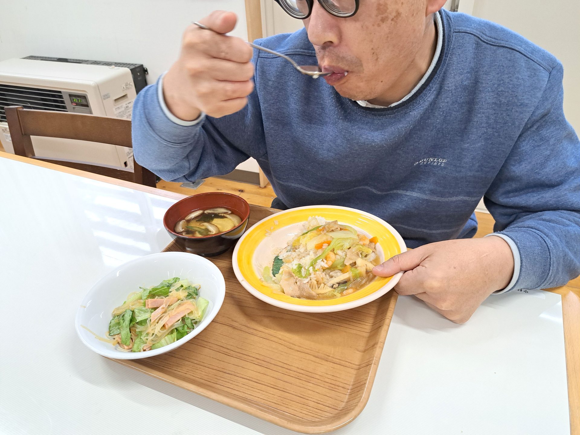 - 「ご飯と~…冷凍トンカツですね!」「野菜は?」「…えへへ!」