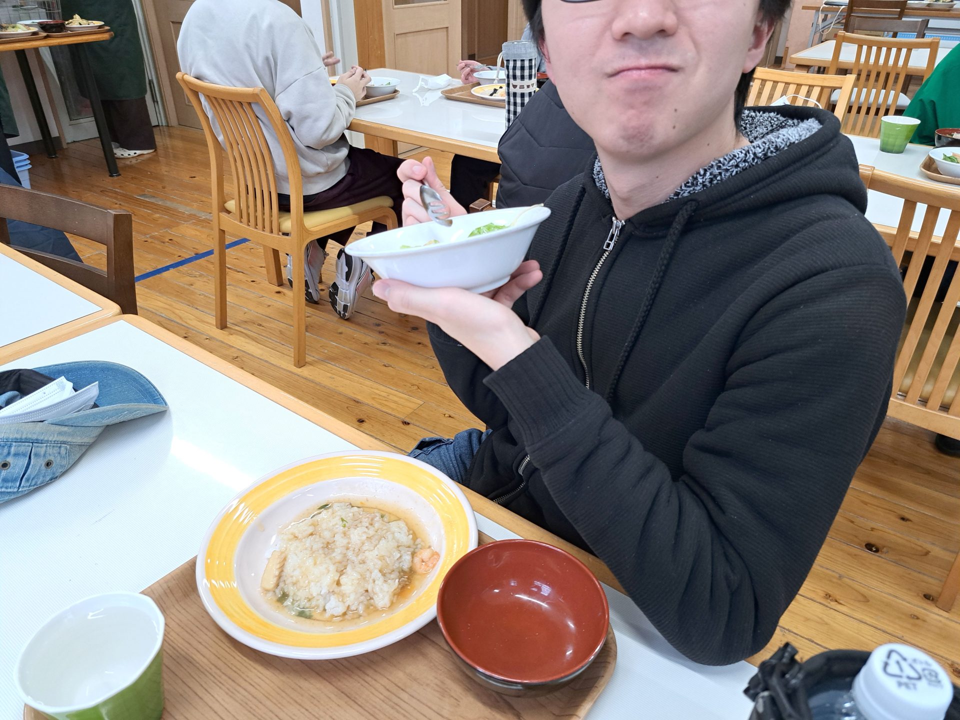 あとはいつもと変わらない作業ですね~定番の朝ごはんインタビューをしながらご挨拶♪