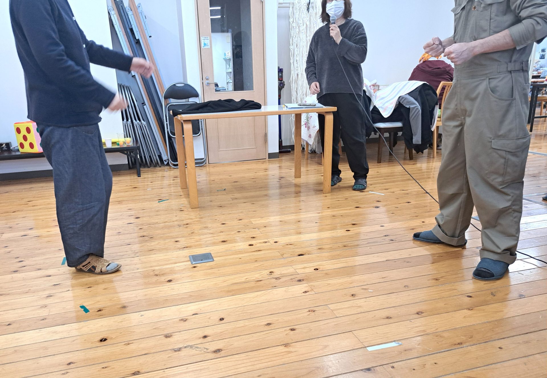 まずは施設長と加工班の支援員のじゃんけん対決~さてどっちが勝つか予想して、勝つと思う方に席を移動しますよ~なんだか人気投票になりそうな雰囲気~( ´艸`)