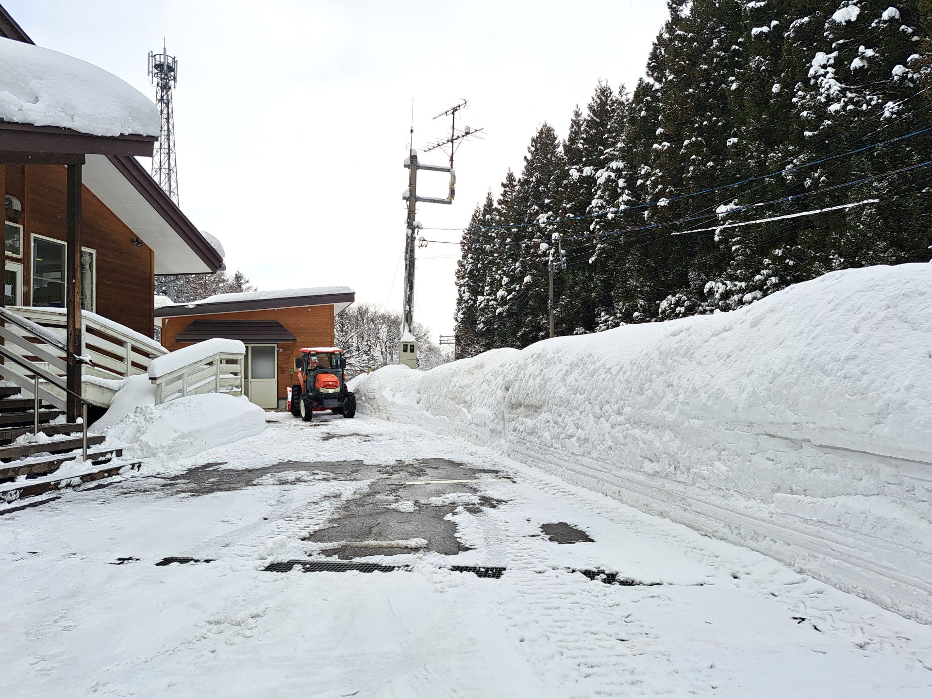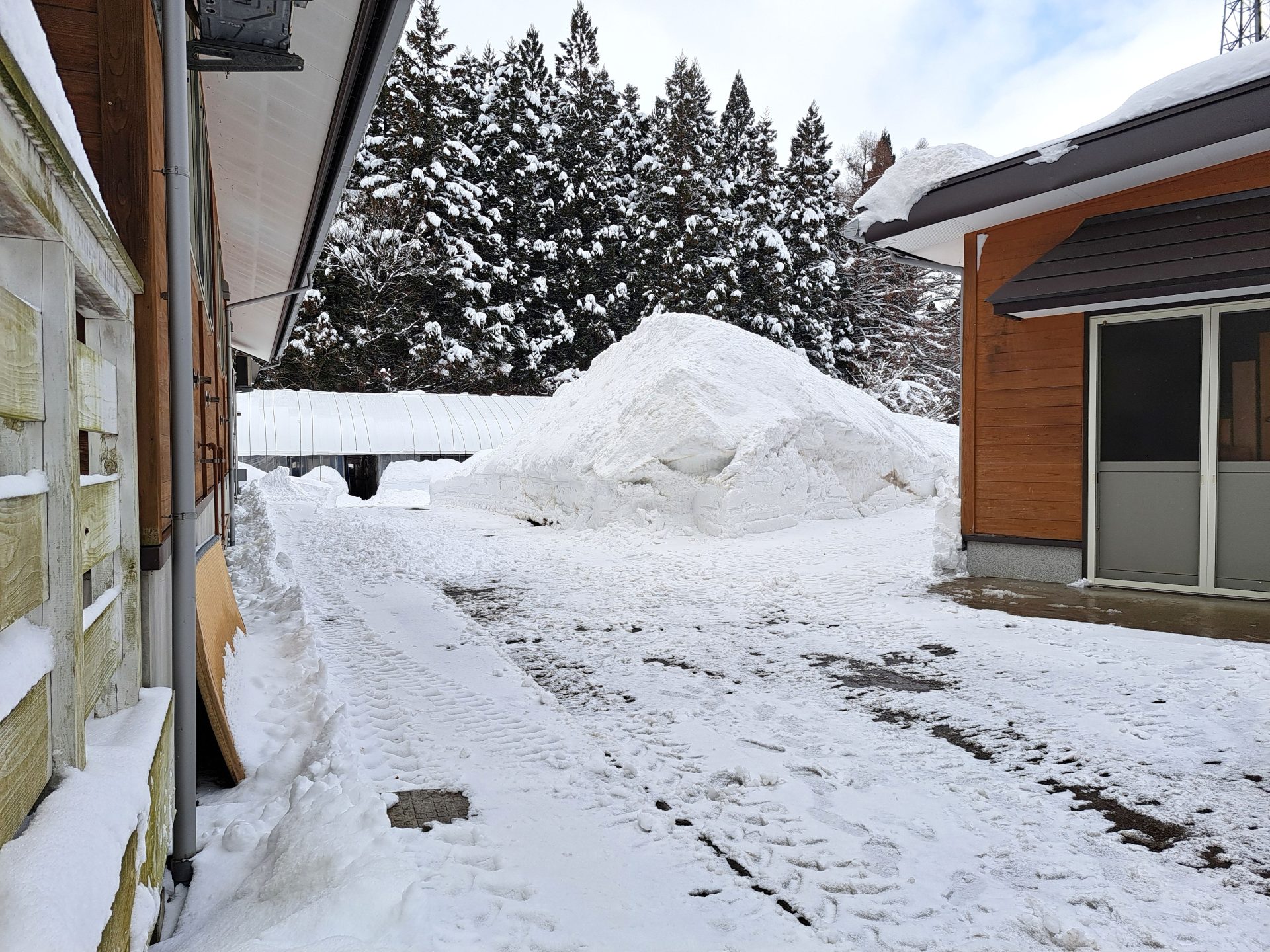 玄関の屋根の雪もだいぶ厚くなってきました…これ以上だと登って下ろさないといけませんね~(;^_^A
