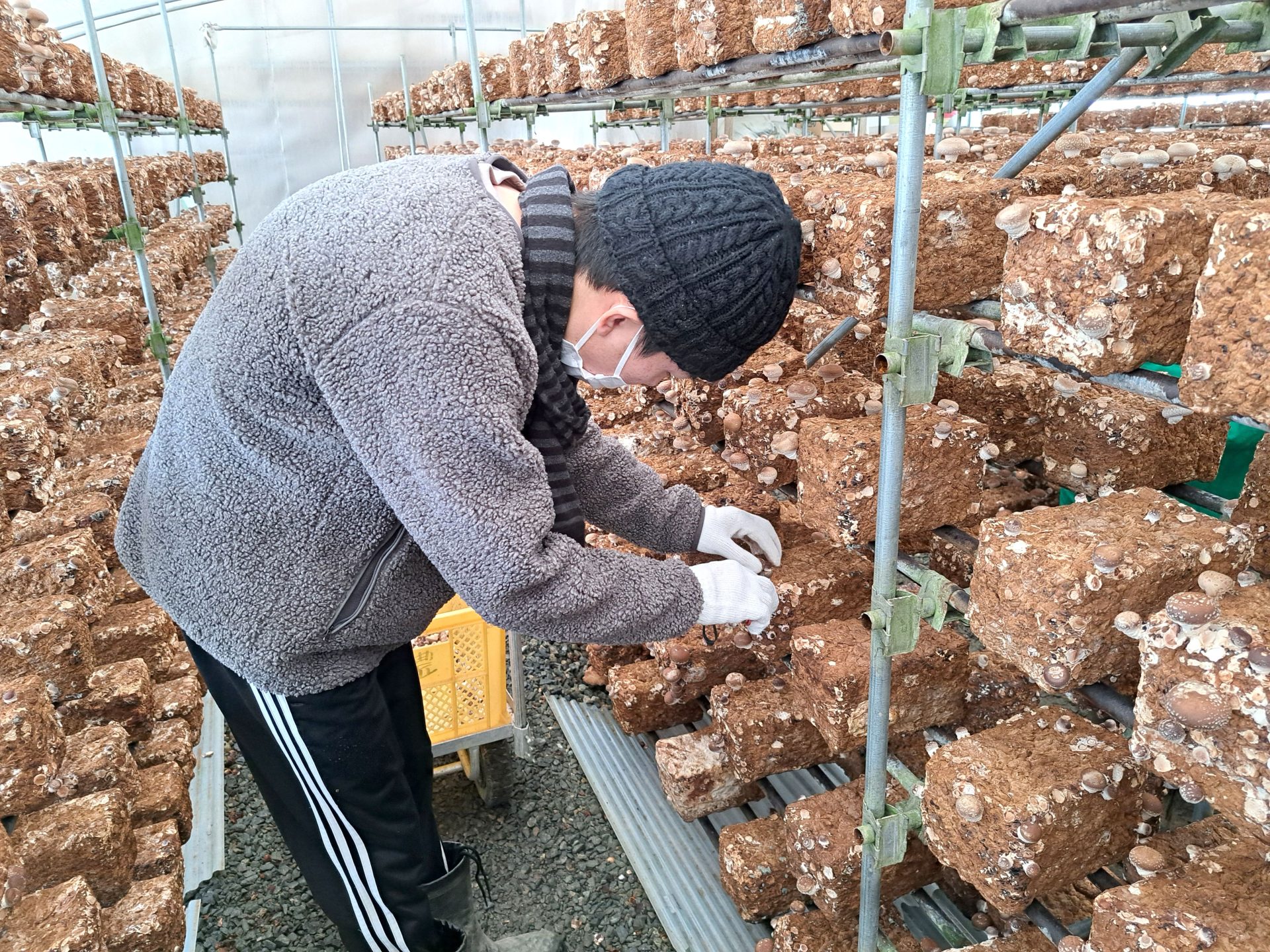 ハウスでは散水作業中~ホースの収納ってけっこう大変ですよね~(;^_^A