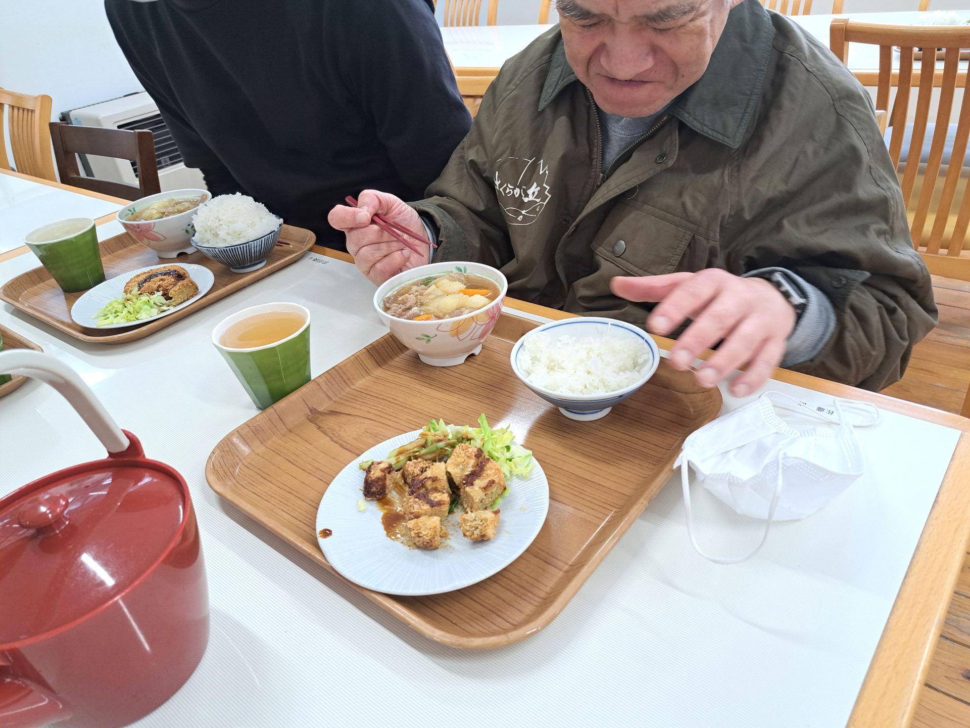 揚げ立てのメンチカツも付いてボリューム満点!肉じゃがのお肉がとにかく美味しい♪
