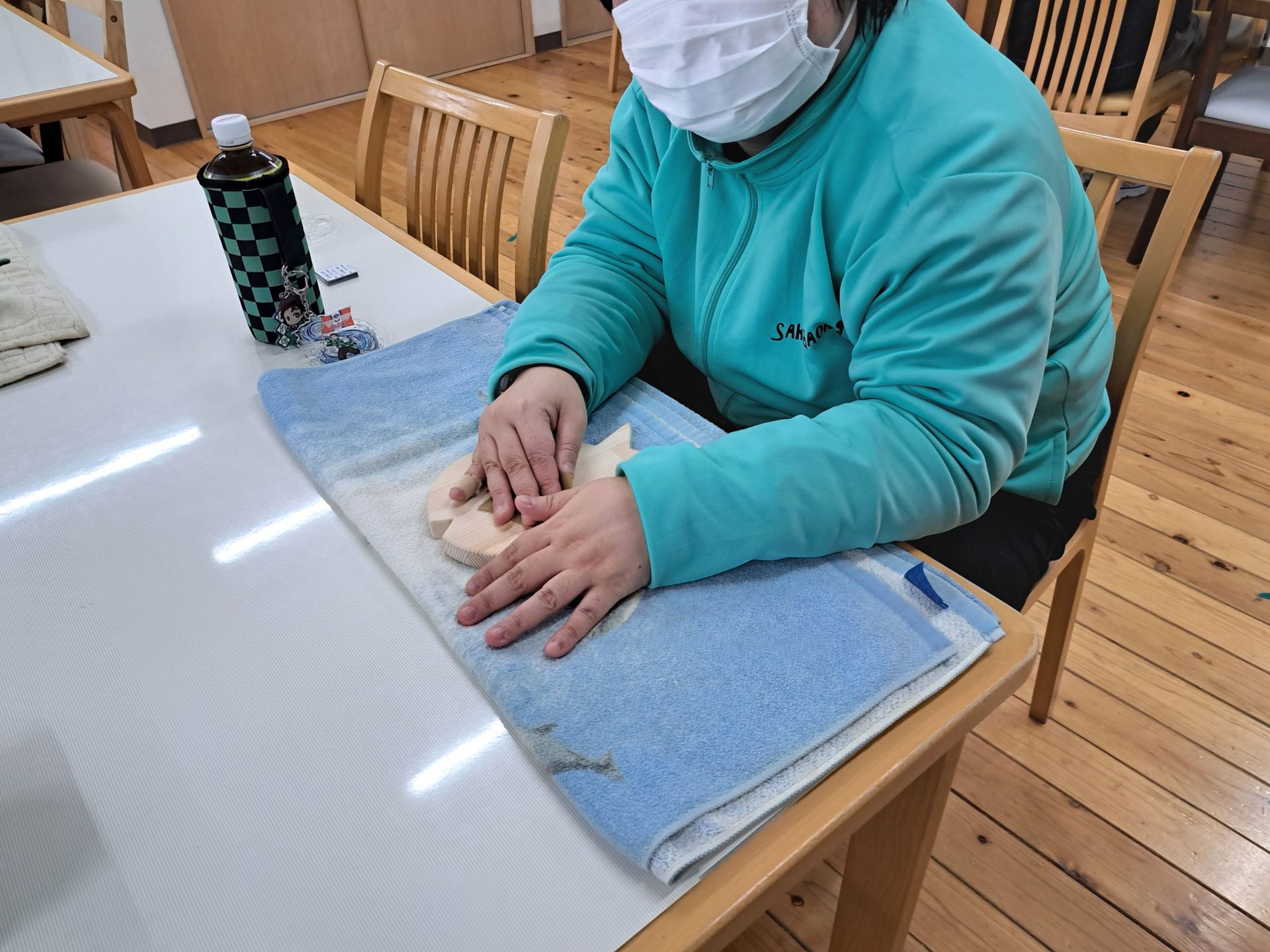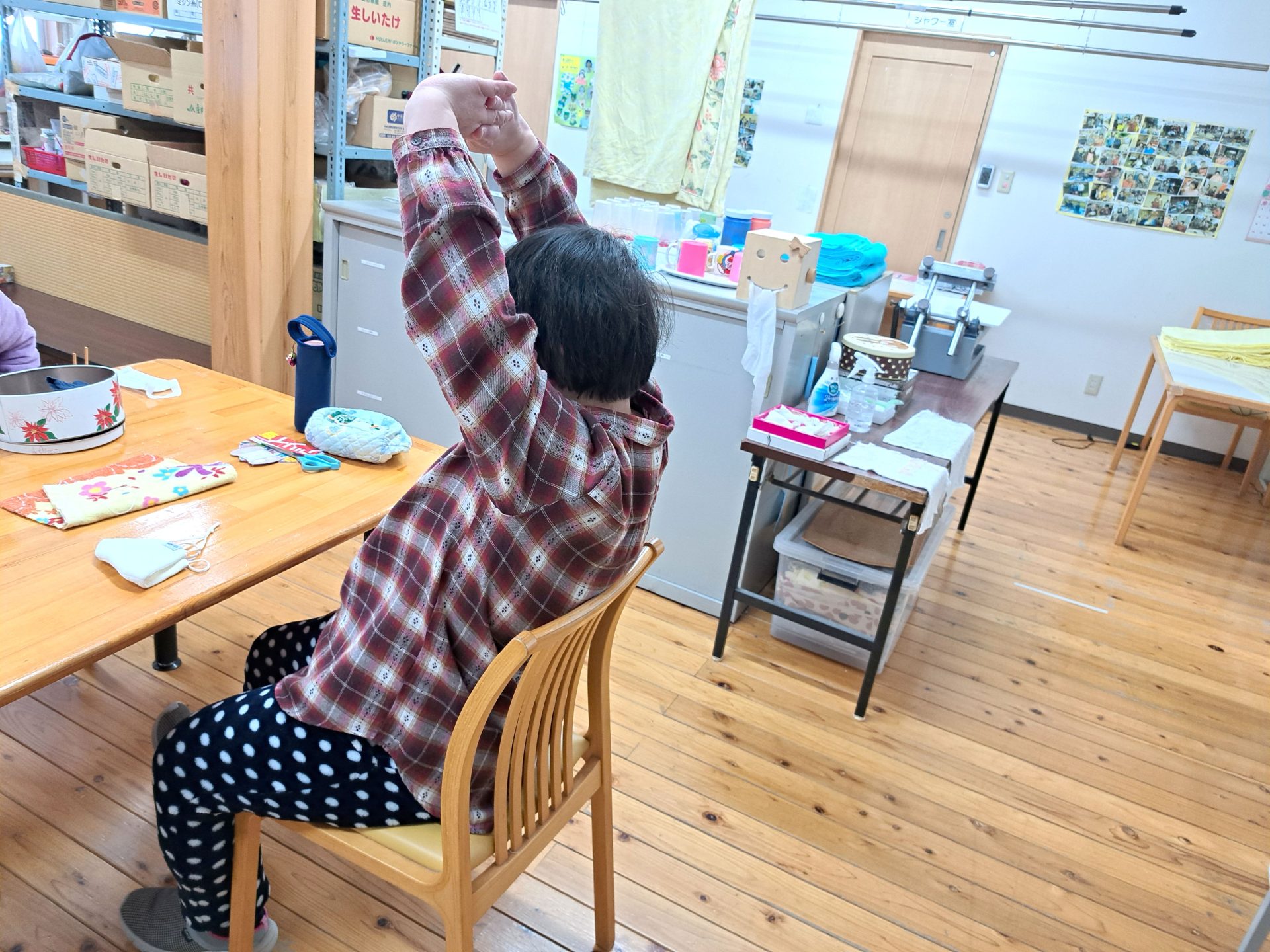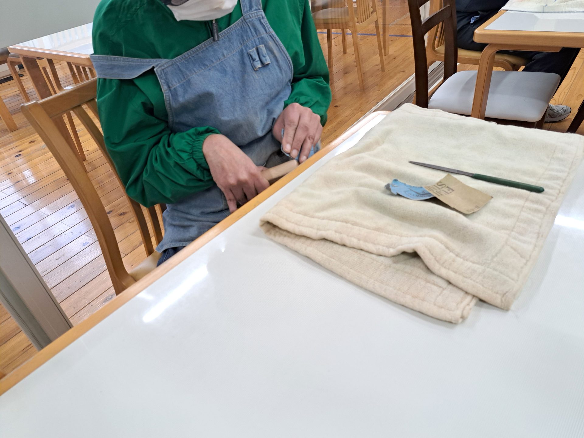 今日は(火)で木工班は空き缶回収の日~残ったメンバーは食堂ホールで作業です(´▽`*)
