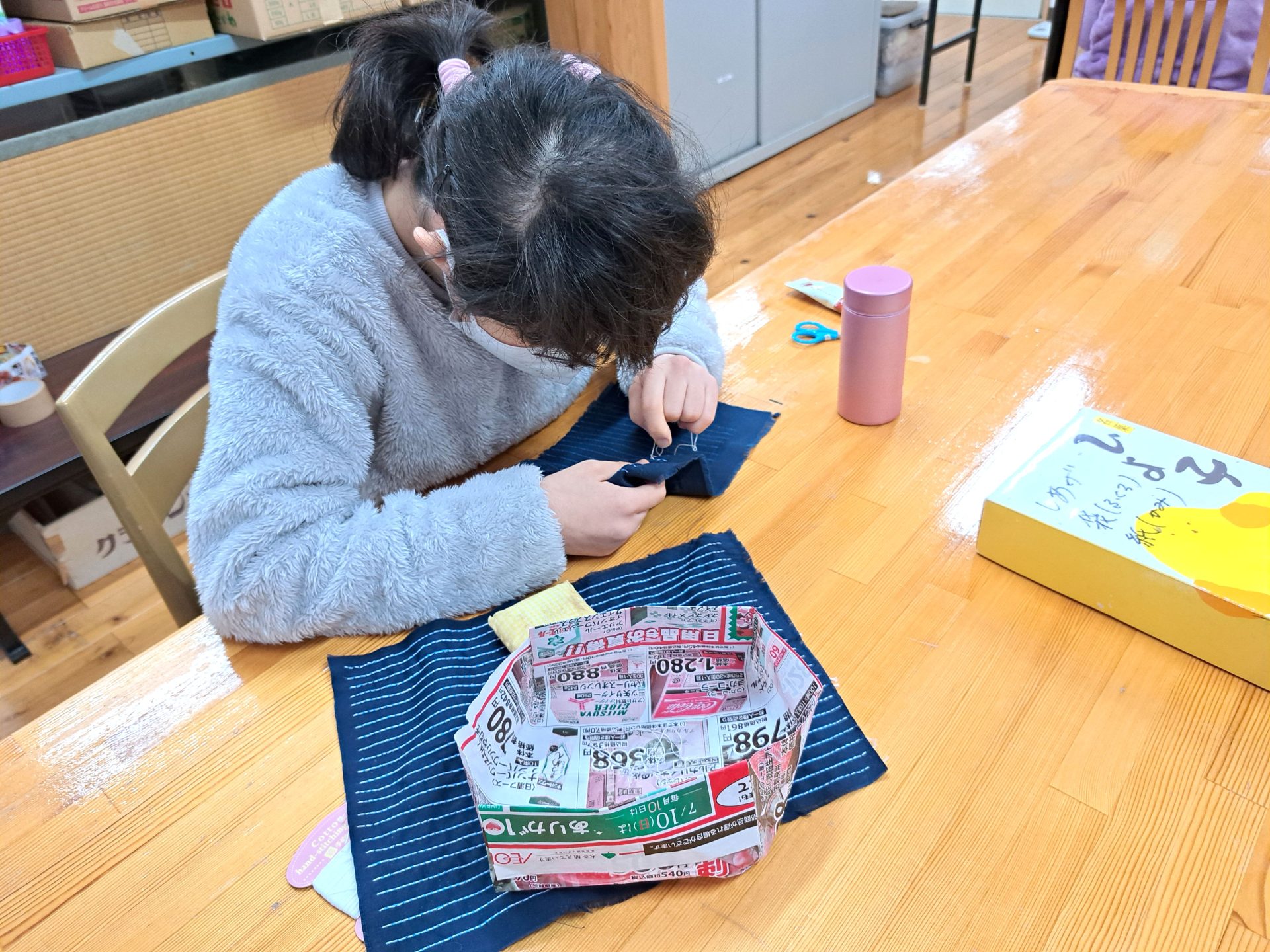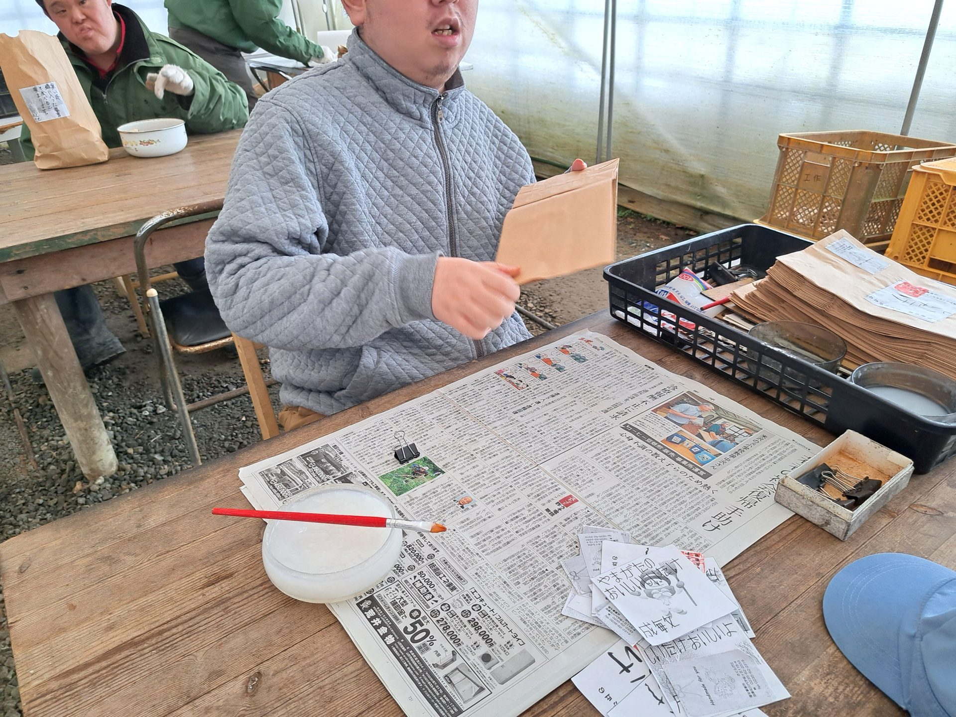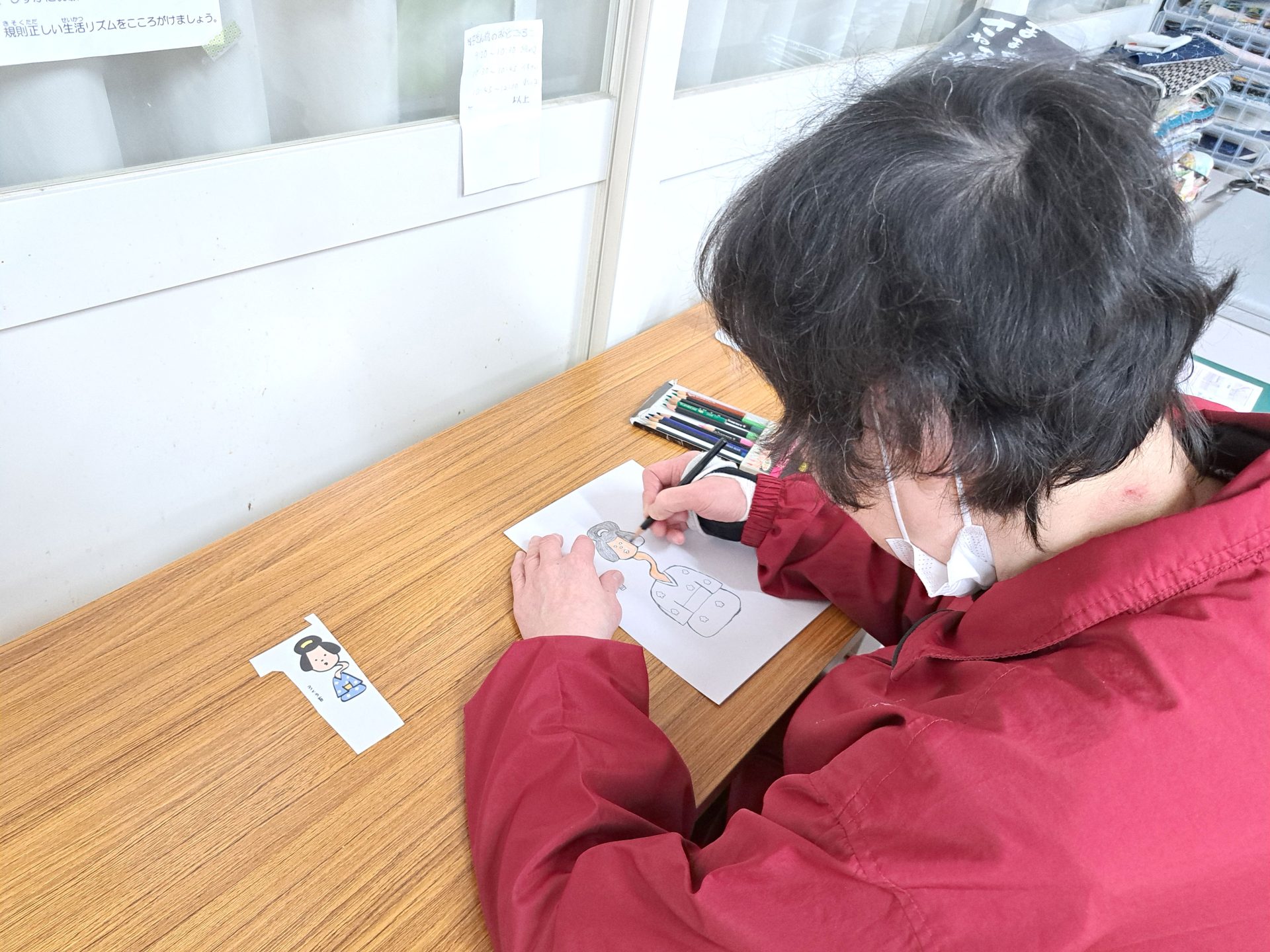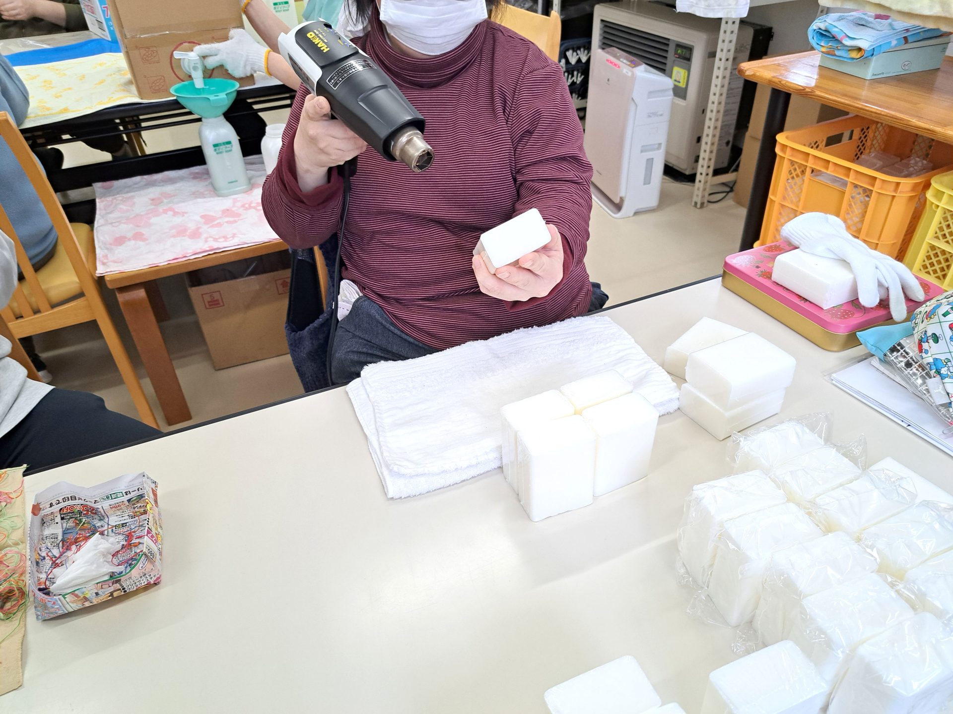 今日は(火)で木工班は空き缶回収の日~残ったメンバーは食堂ホールで作業です(´▽`*)