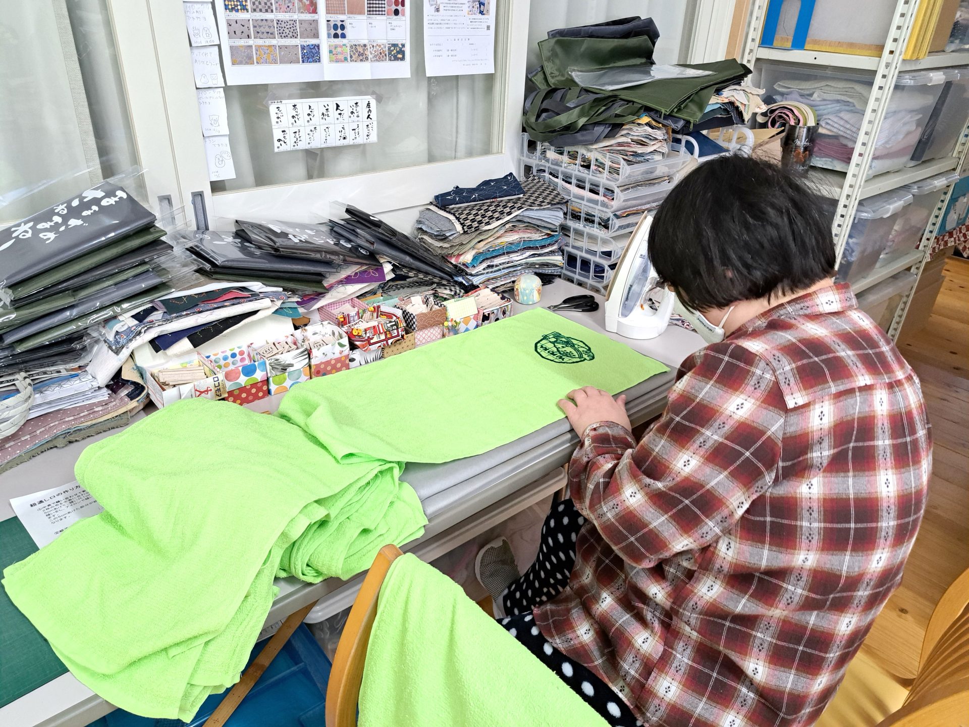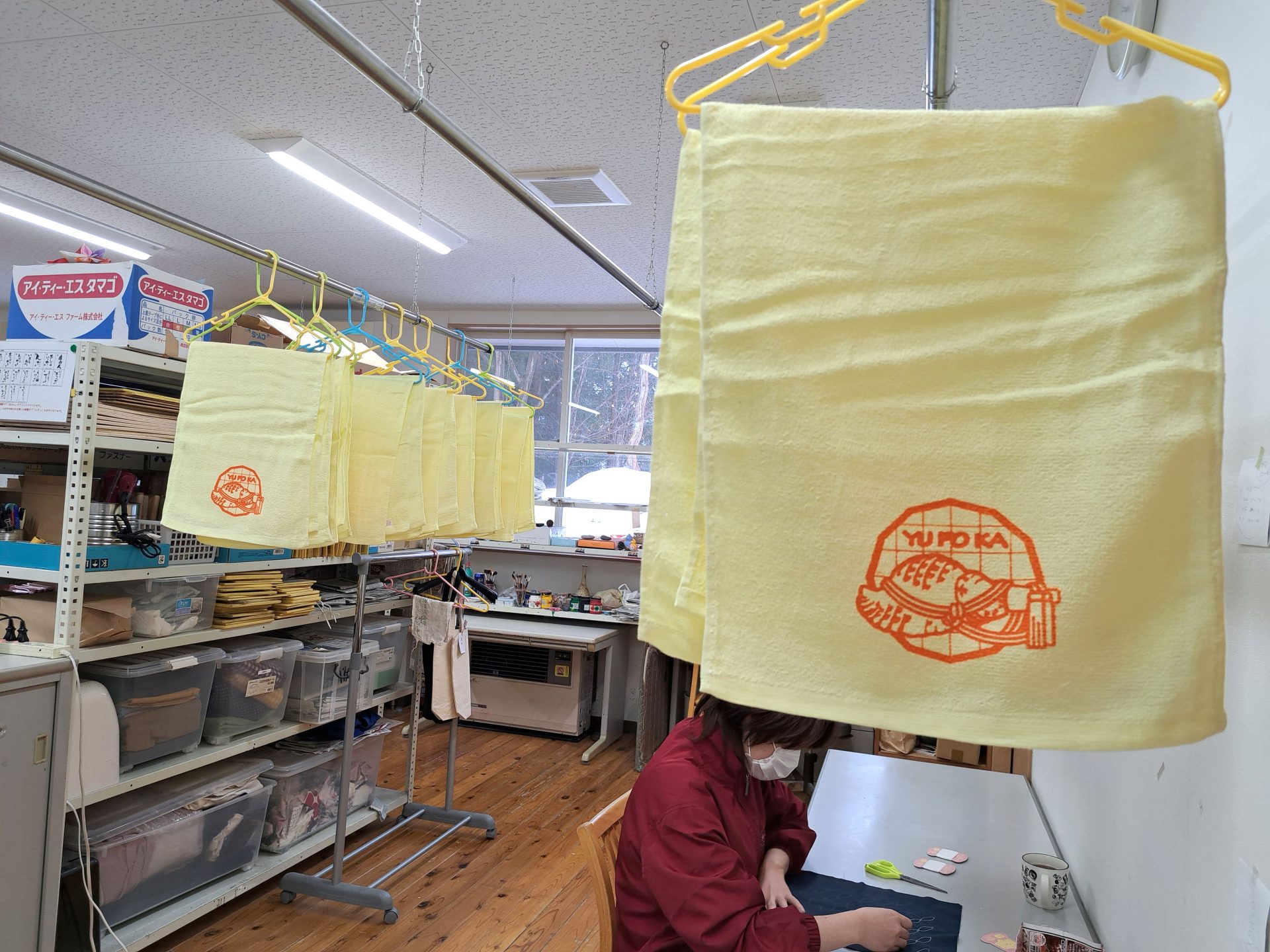 朝一番で乾いたプリントしたタオルをハンガーから降ろしてまとめてくれていました~ありがとうー(´艸`*)