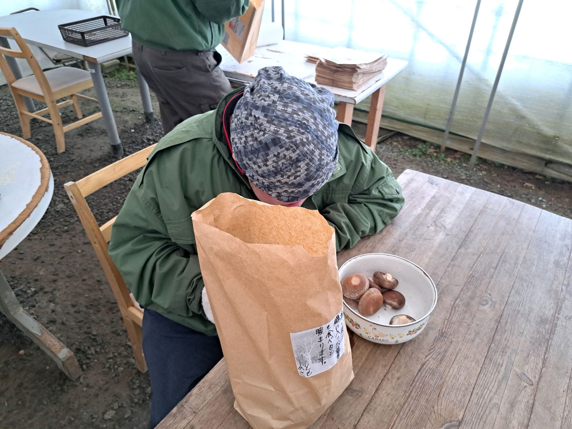「昨日は~階段掃除と~テーブル拭きしました~ローソンできのこの山買いました!」