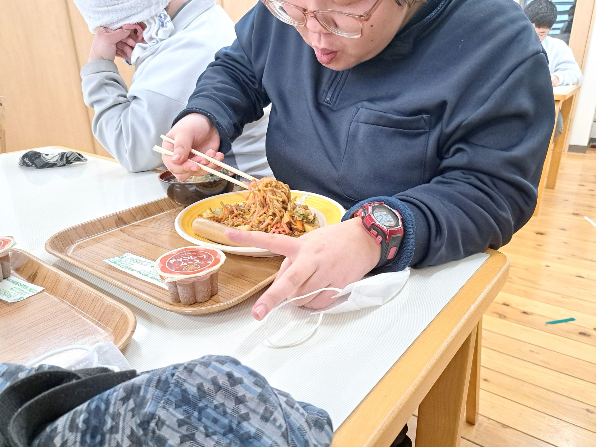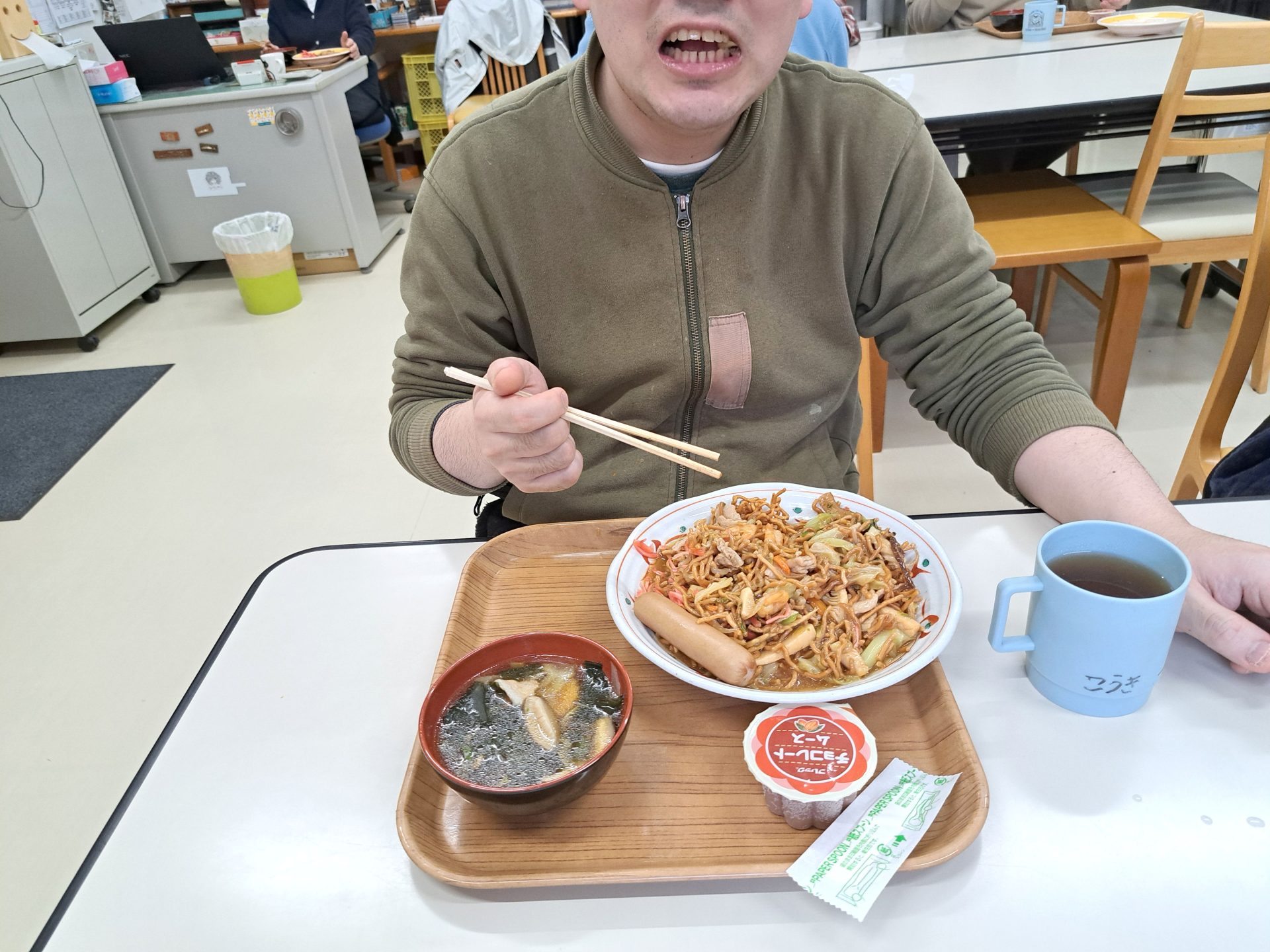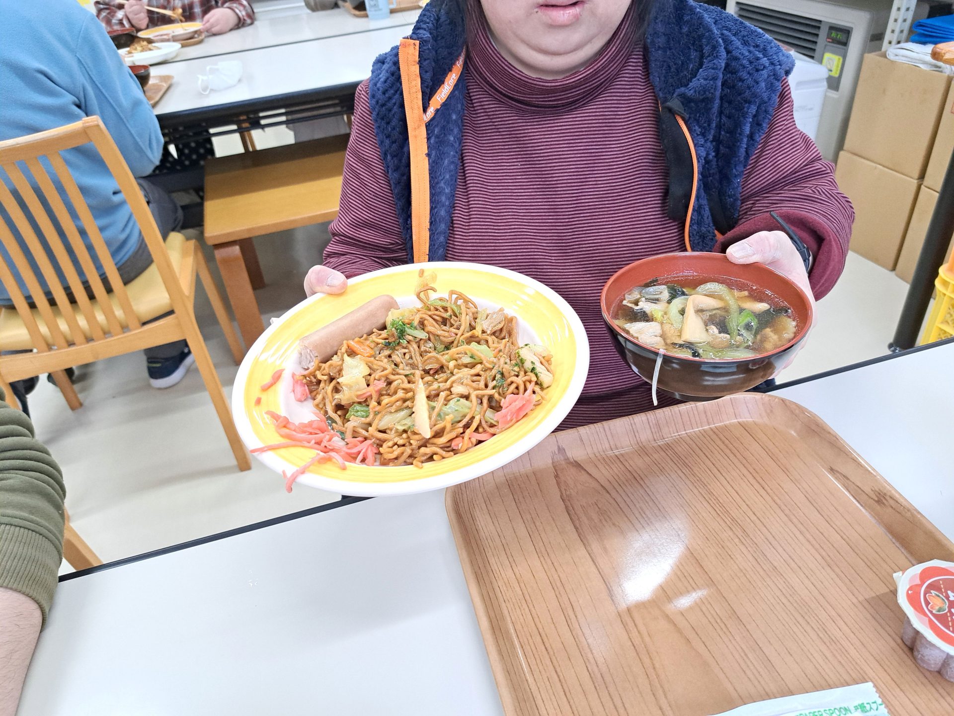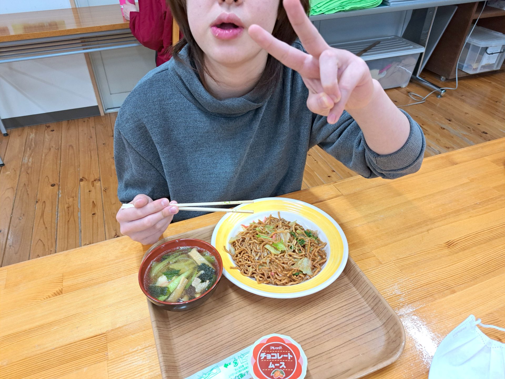 今日の給食は何かな~?!熱狂的ファンがいる揚げ焼きそばではないですか~( ´艸`)