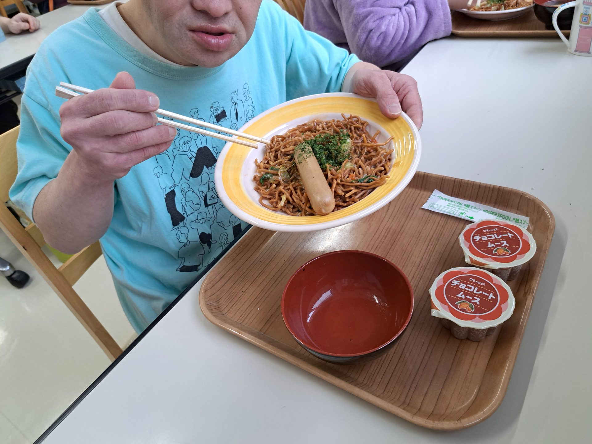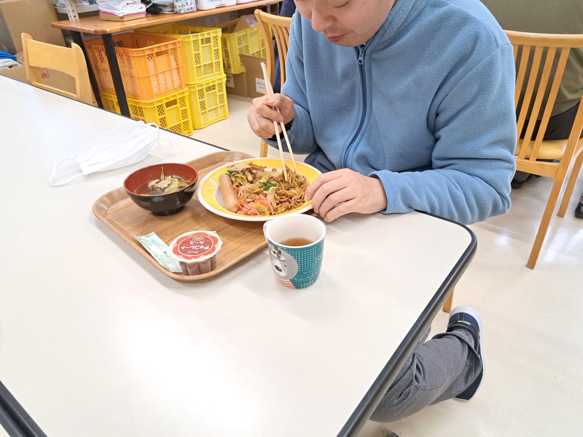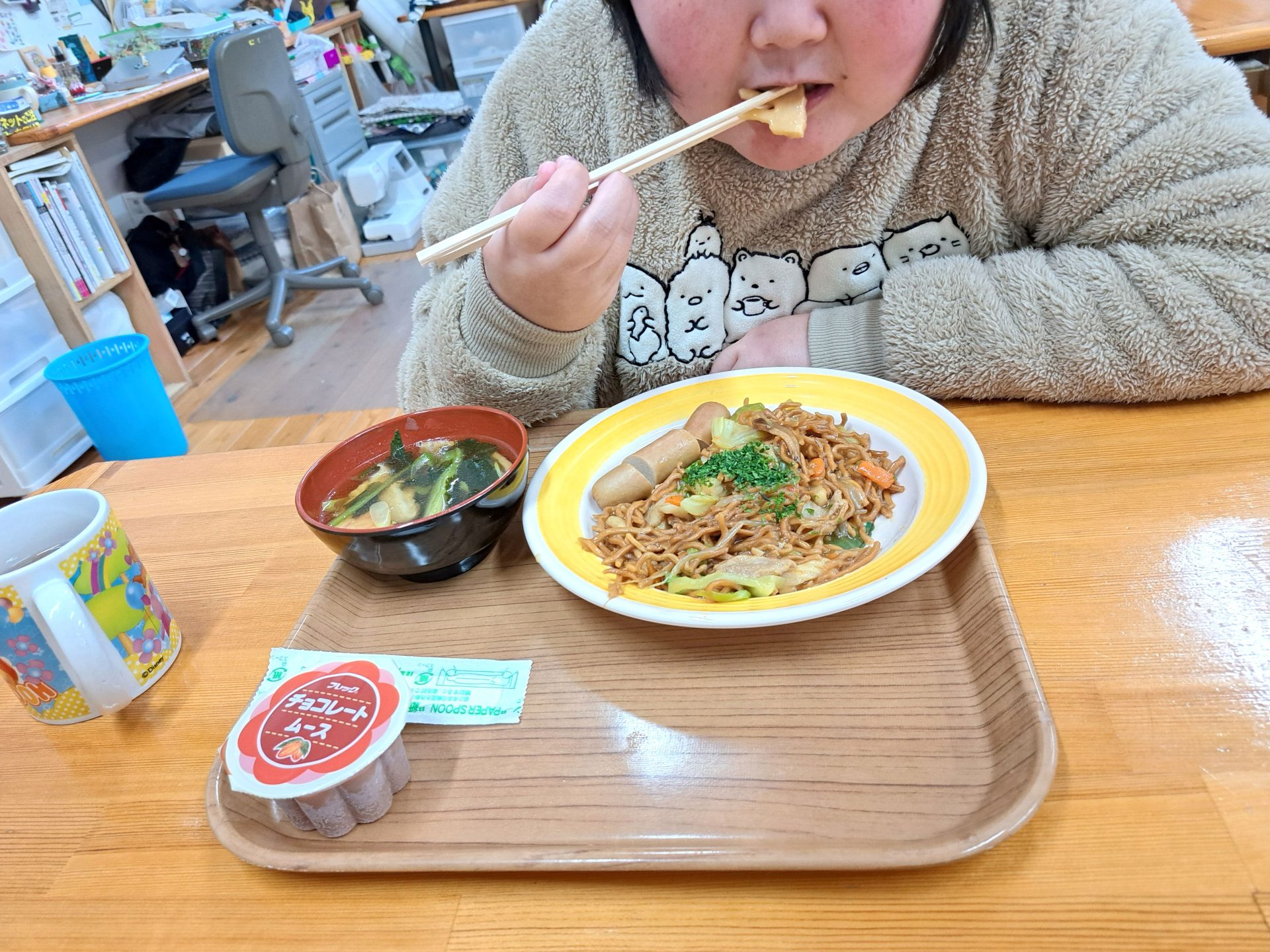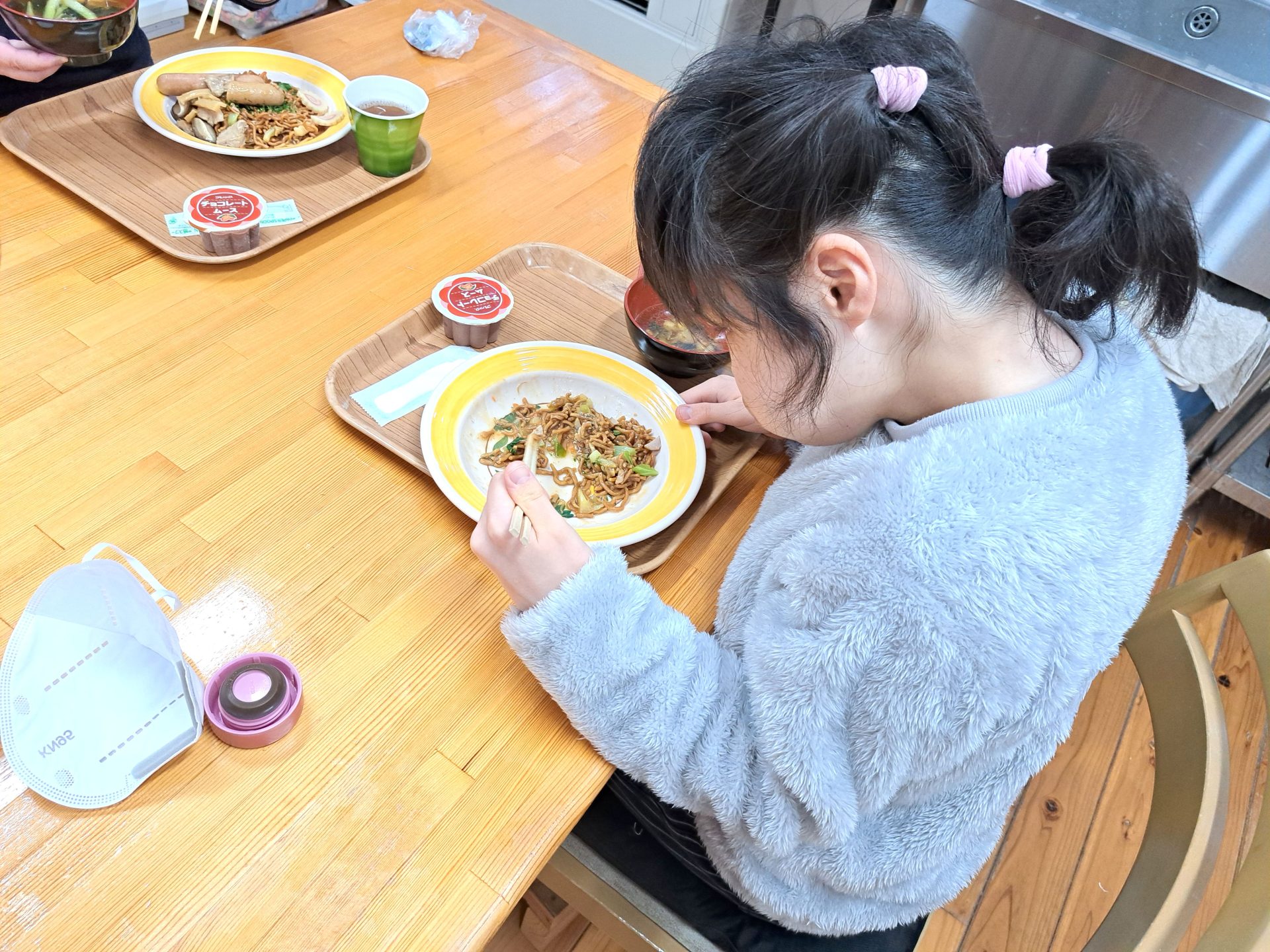 今日の給食は何かな~?!熱狂的ファンがいる揚げ焼きそばではないですか~( ´艸`)