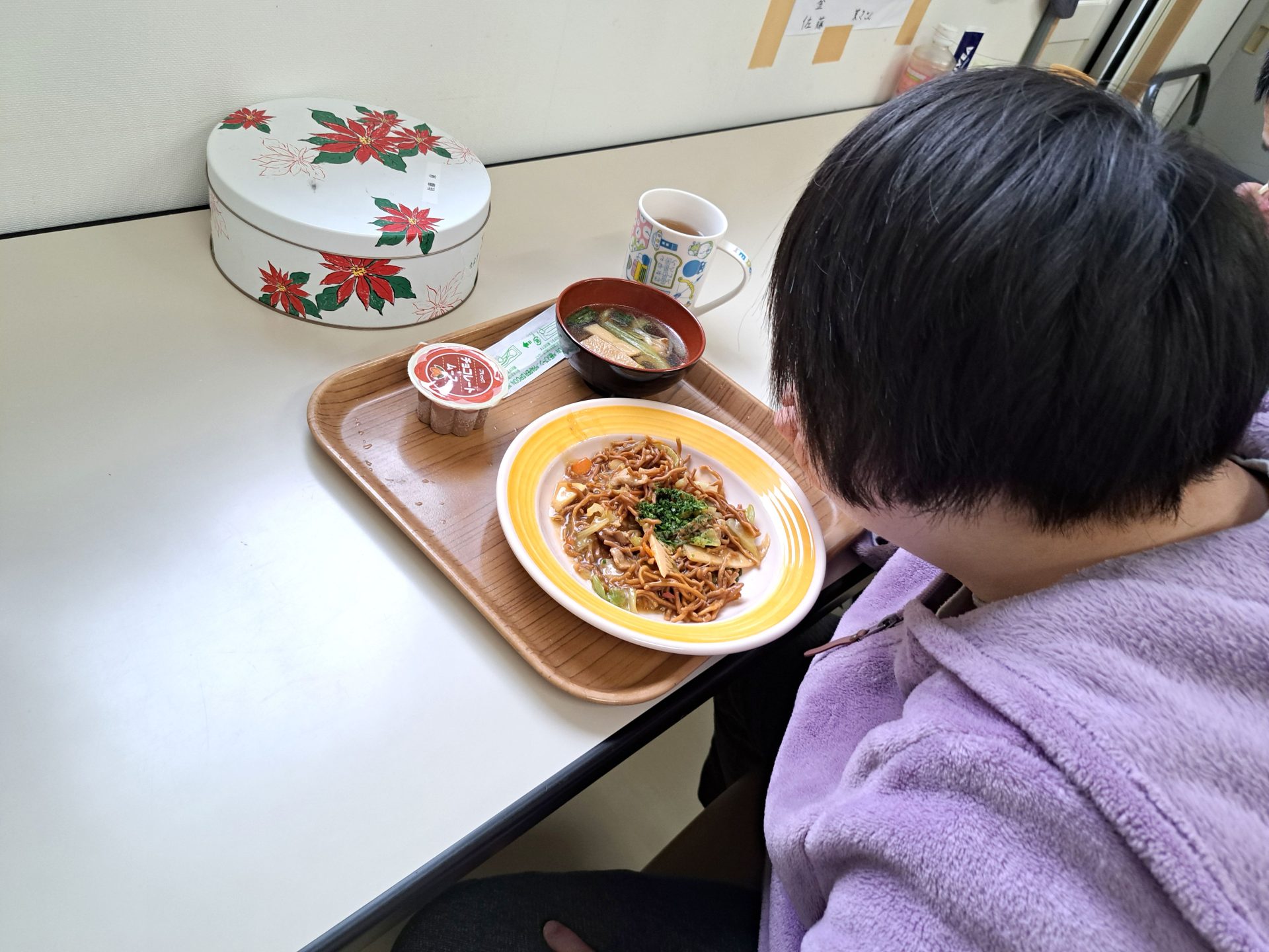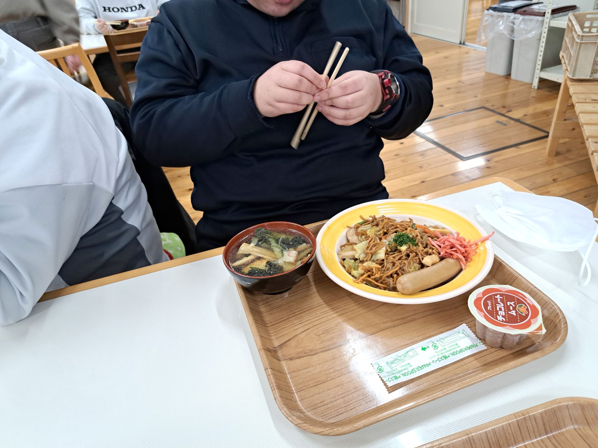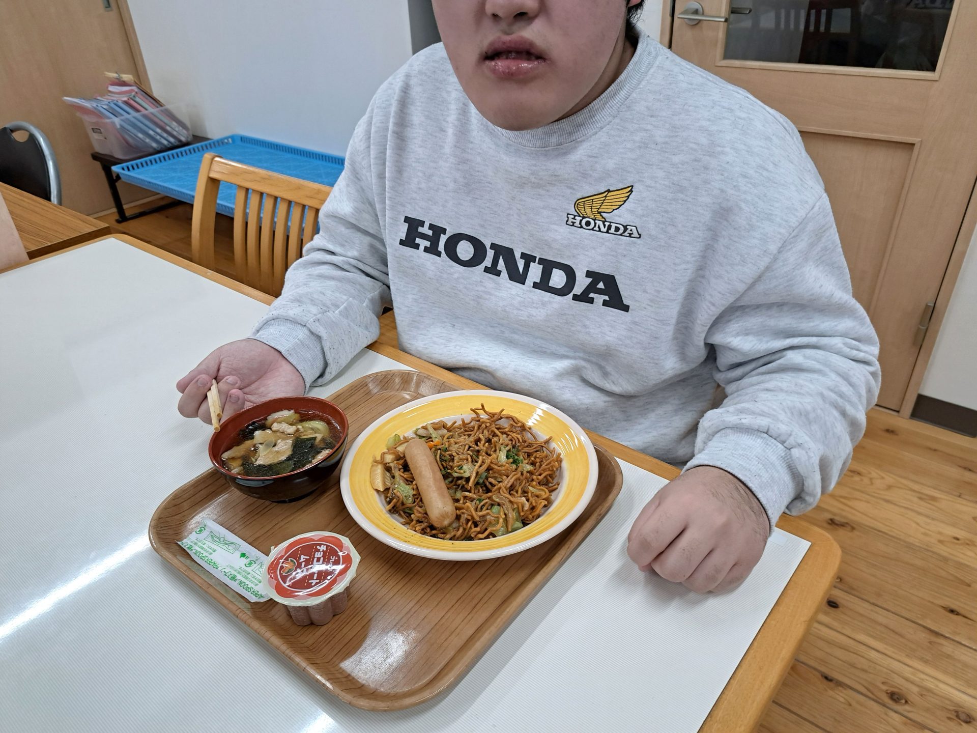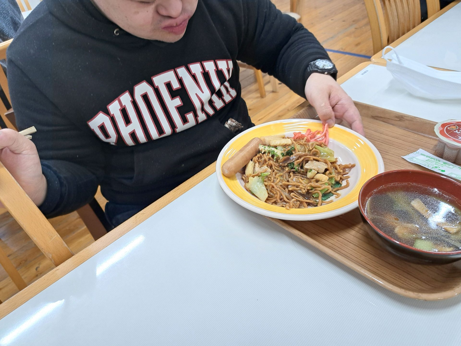 今日の給食は何かな~?!熱狂的ファンがいる揚げ焼きそばではないですか~( ´艸`)