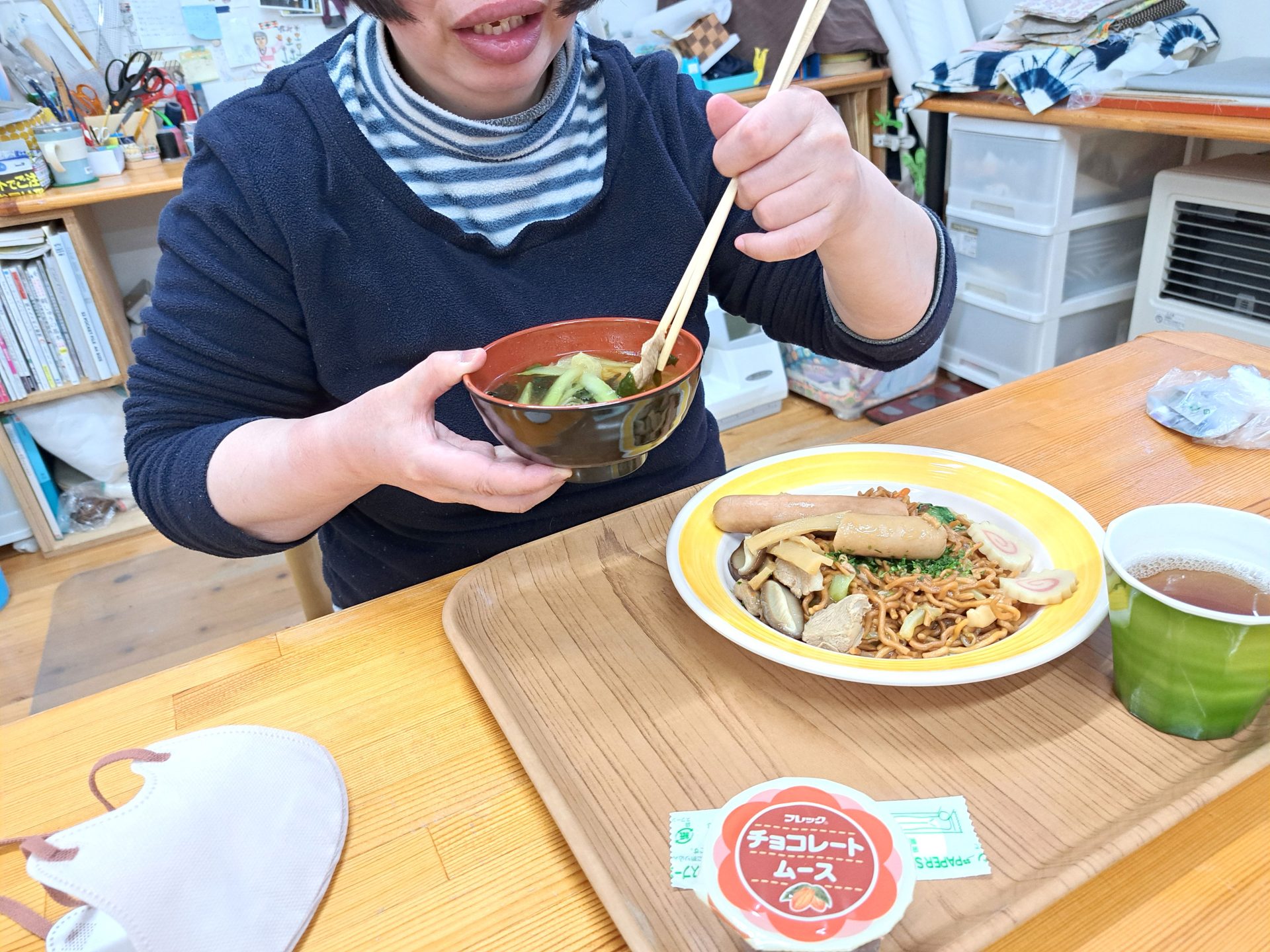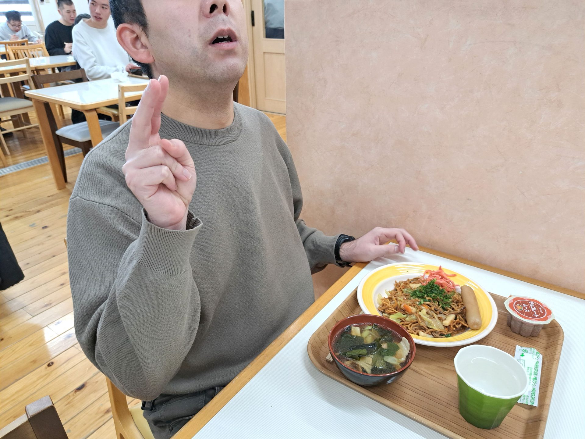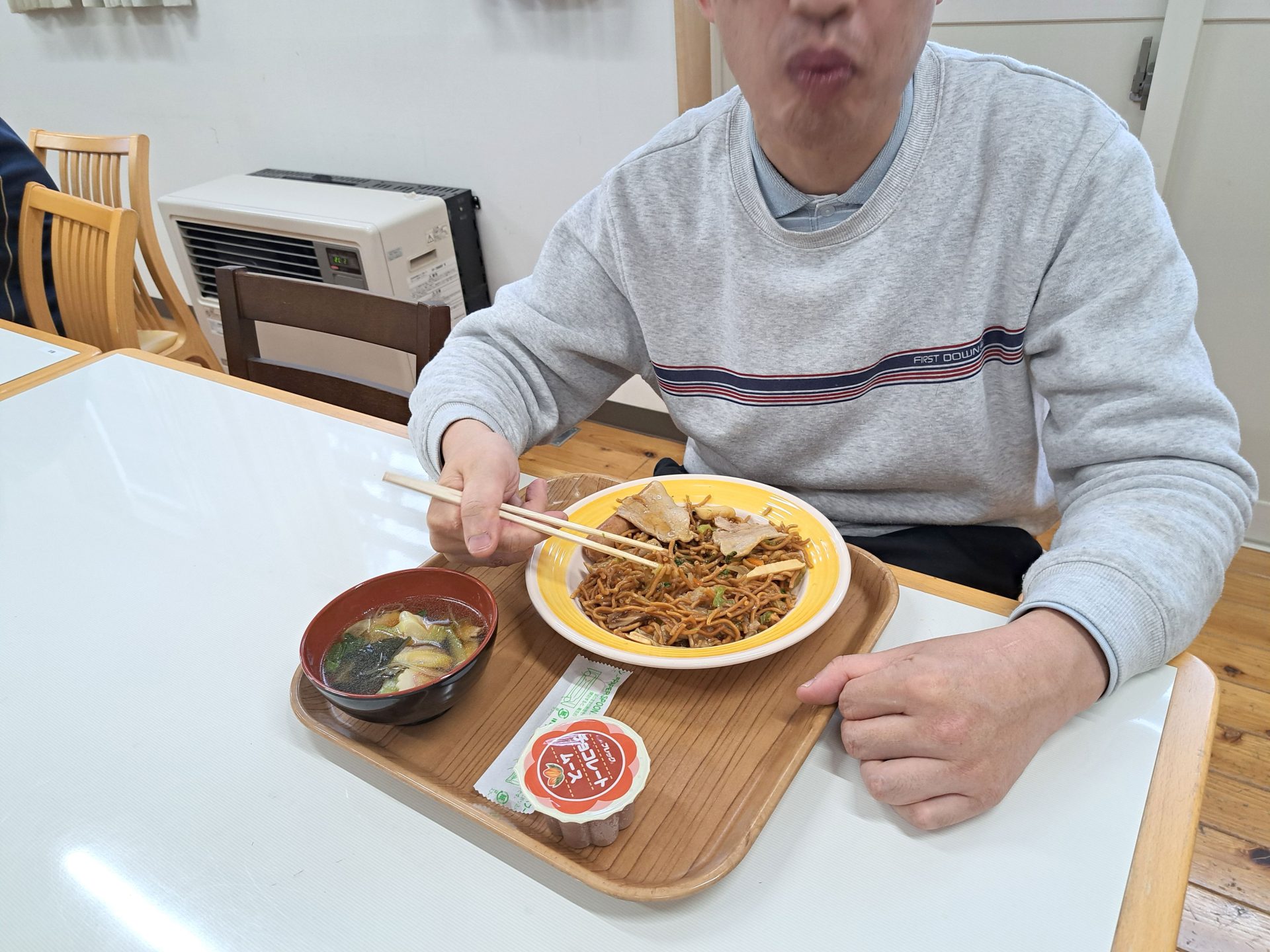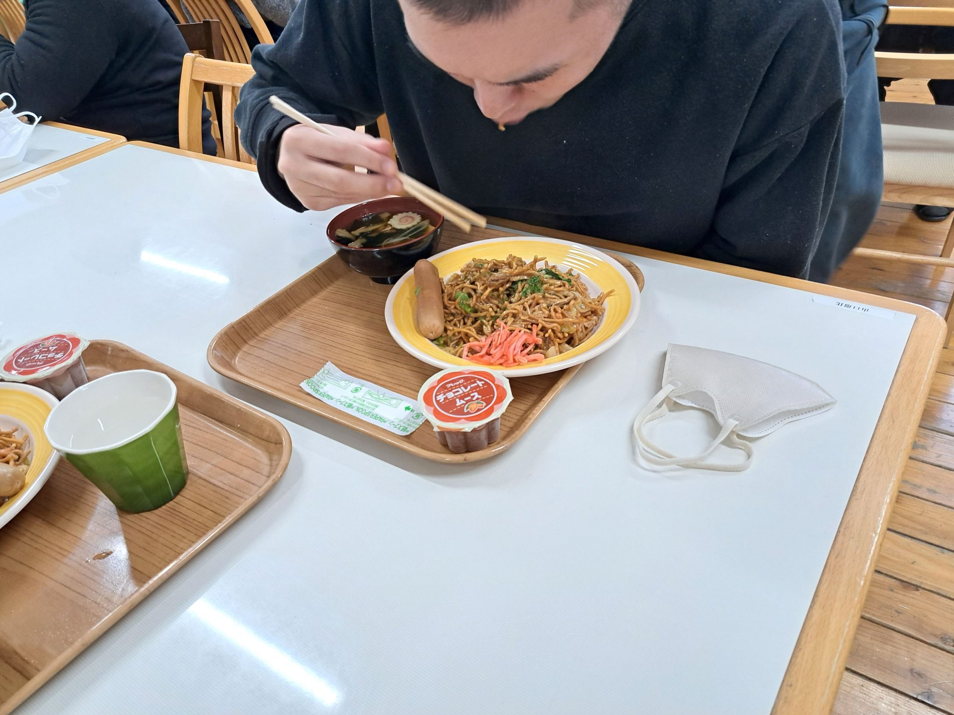今日の給食は何かな~?!熱狂的ファンがいる揚げ焼きそばではないですか~( ´艸`)