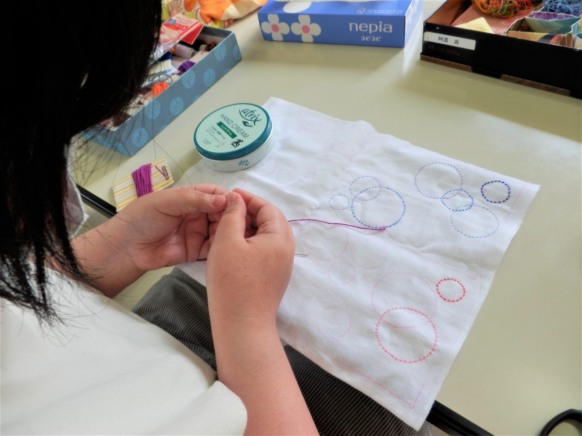 利用者さんが自宅で毎晩作成しているアクリルたわしを頂きました!