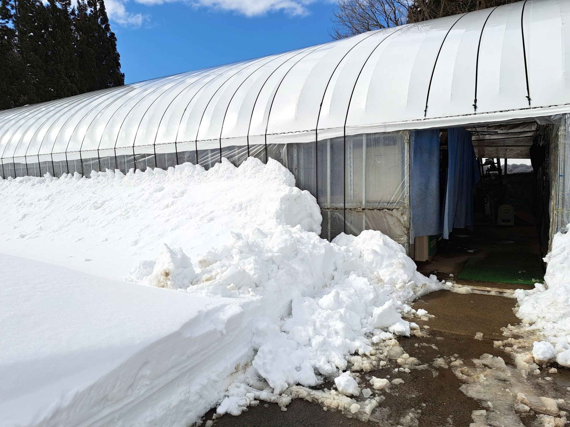 - うわ!ハウスの屋根まで雪が~!