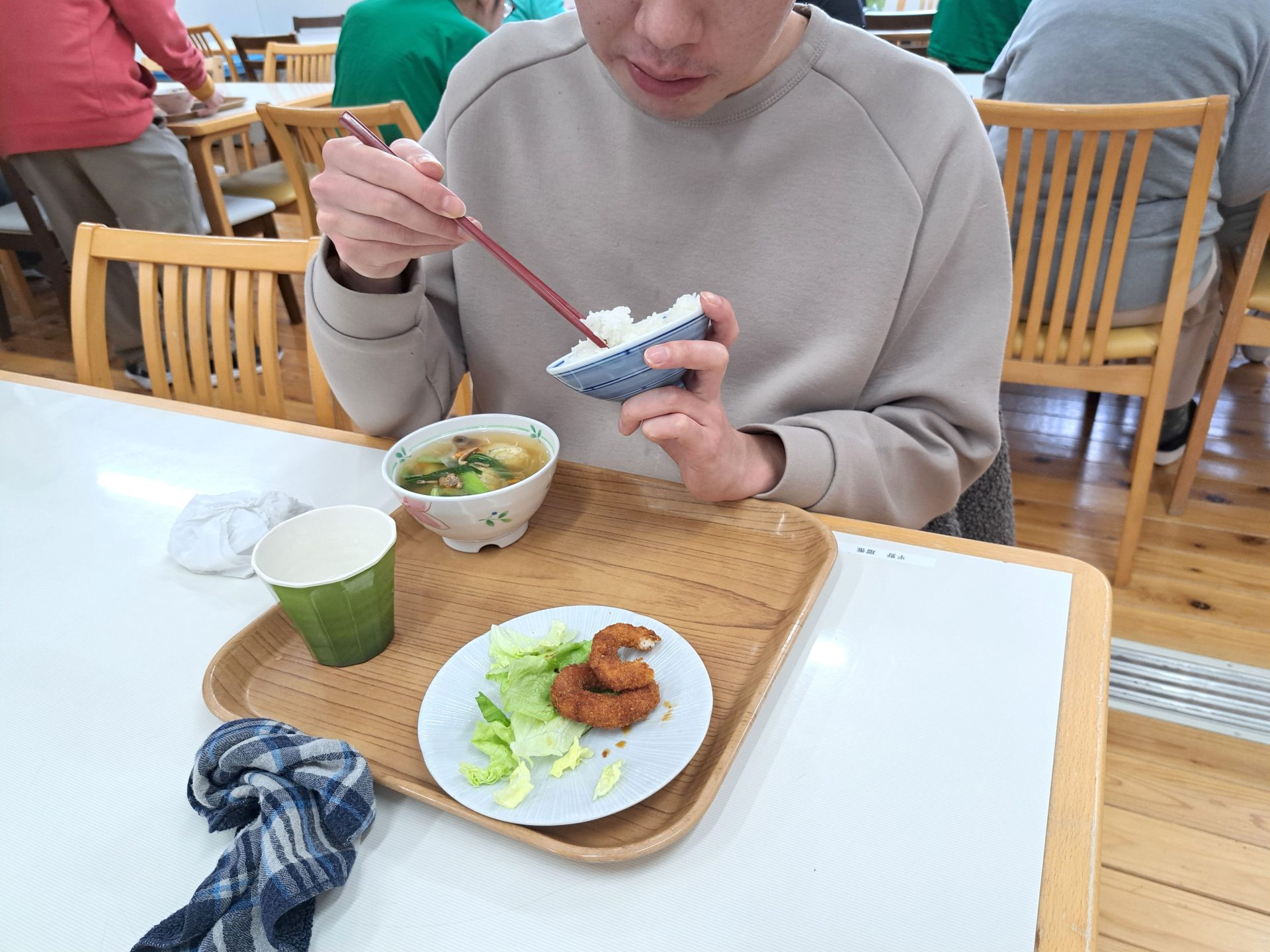 - 「鯛めし、納豆。梅干しご飯おいしい♪」