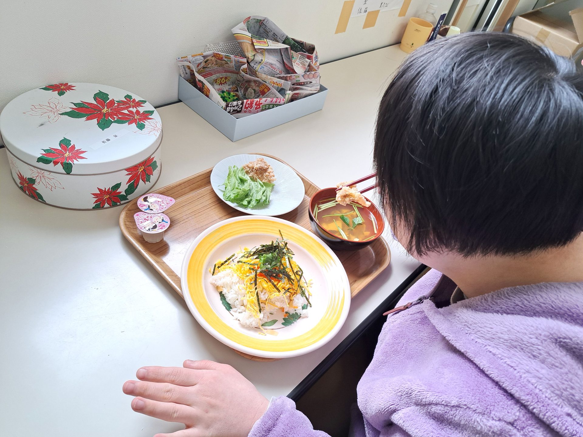 おいしそう~ちらし寿司の黄色の玉子と三つ葉と海苔の組み合わせが食欲そそります~♪