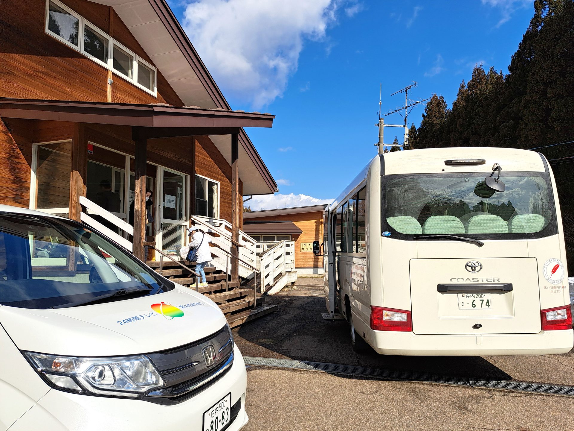 朝の送迎途中、雲の向こうは月山~下界の田んぼは雪消えましたね~(´▽`*)