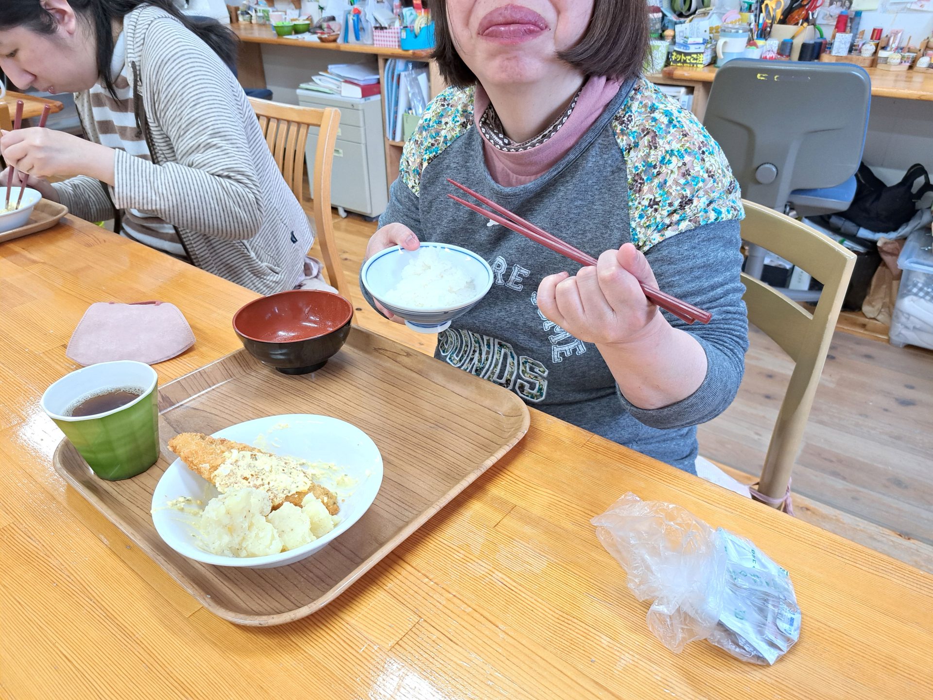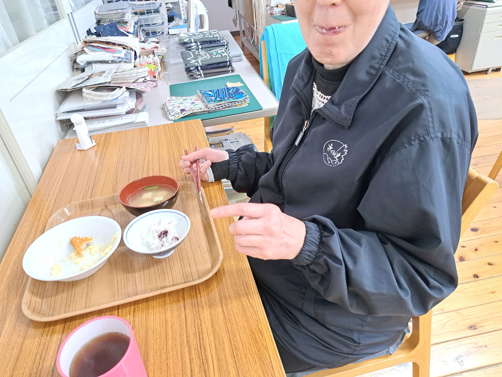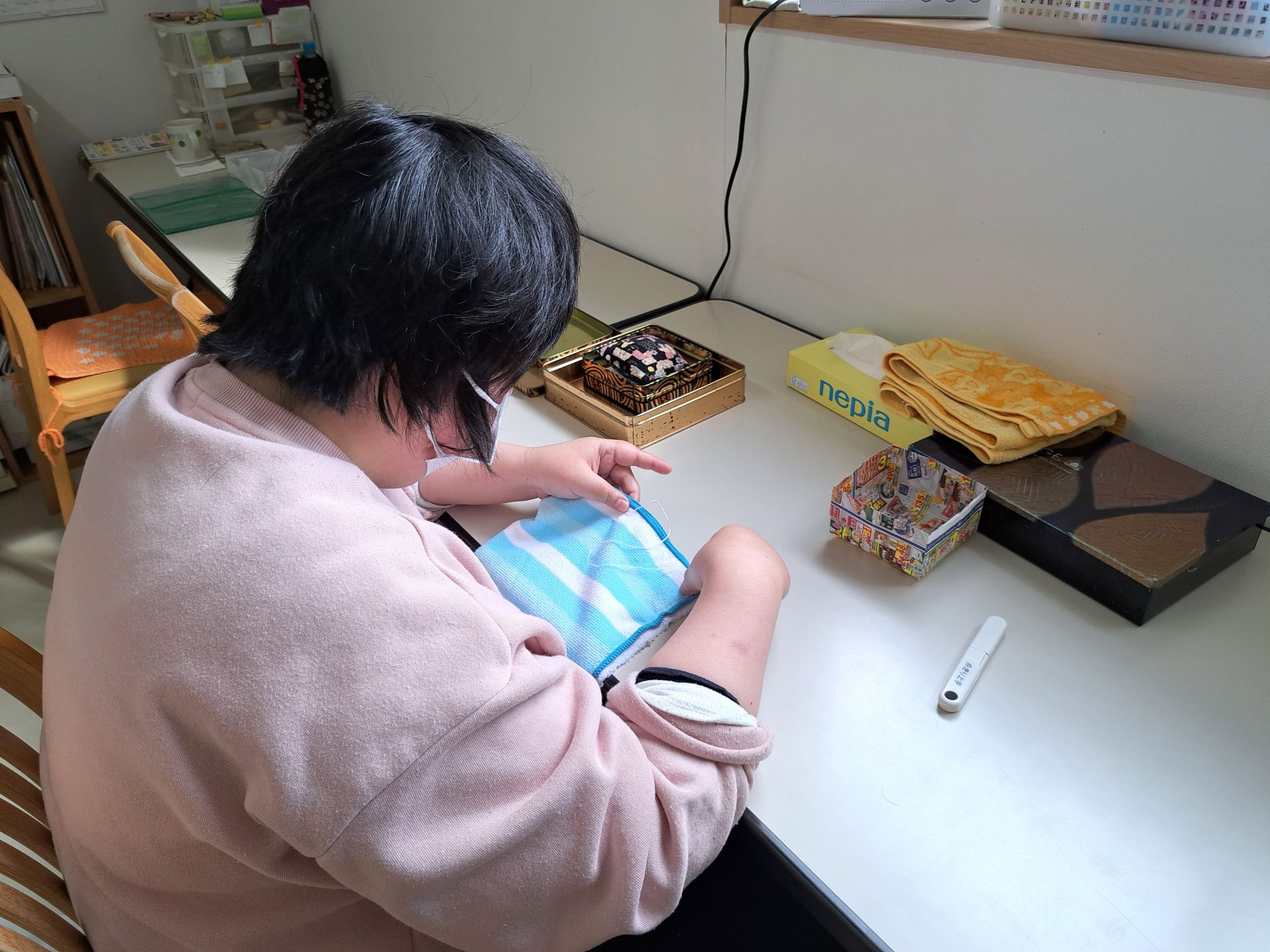 裁縫室に戻ると休憩のおやつがありました~これホントに美味しい!ぜひ食べてみて~♪