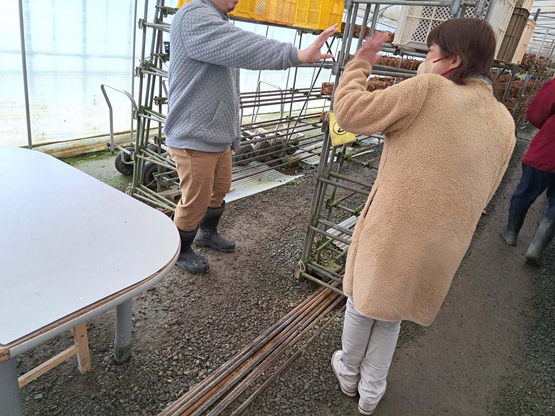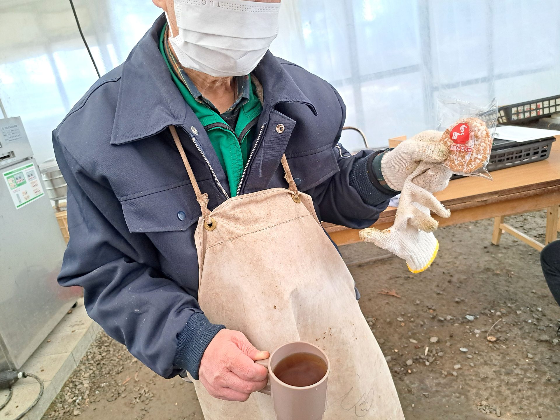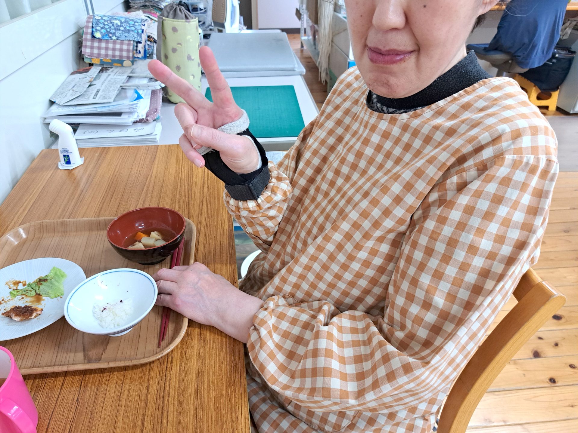 ごちそうさまでした~と同時にすぐに道具を持ってハウスへ向かう利用者さん~みんな働き者ですな…
