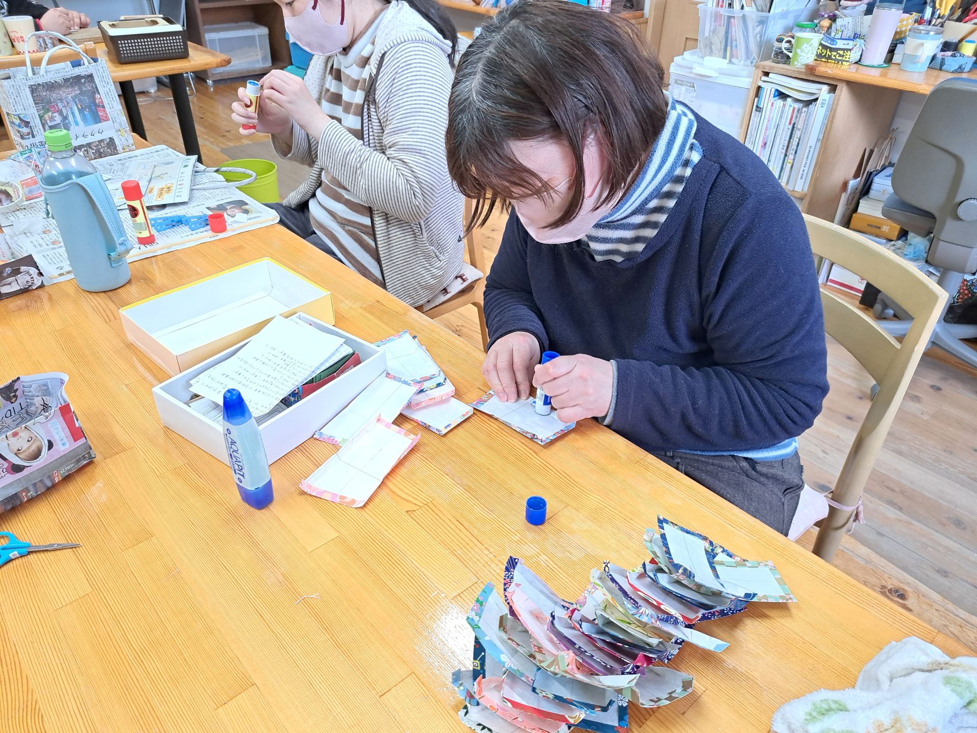 慣れ親しんだ加工室で最後に利用者さんといつものように談笑…こうやって35年間、誰よりも利用者さんに深い愛情を注ぎ、さくらが丘の事を大事に想い、いつも全力で頑張ってくれていました…本当におつかれさまでした…(*´ω`*)