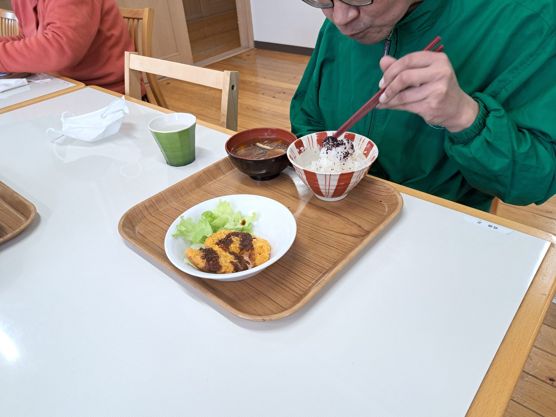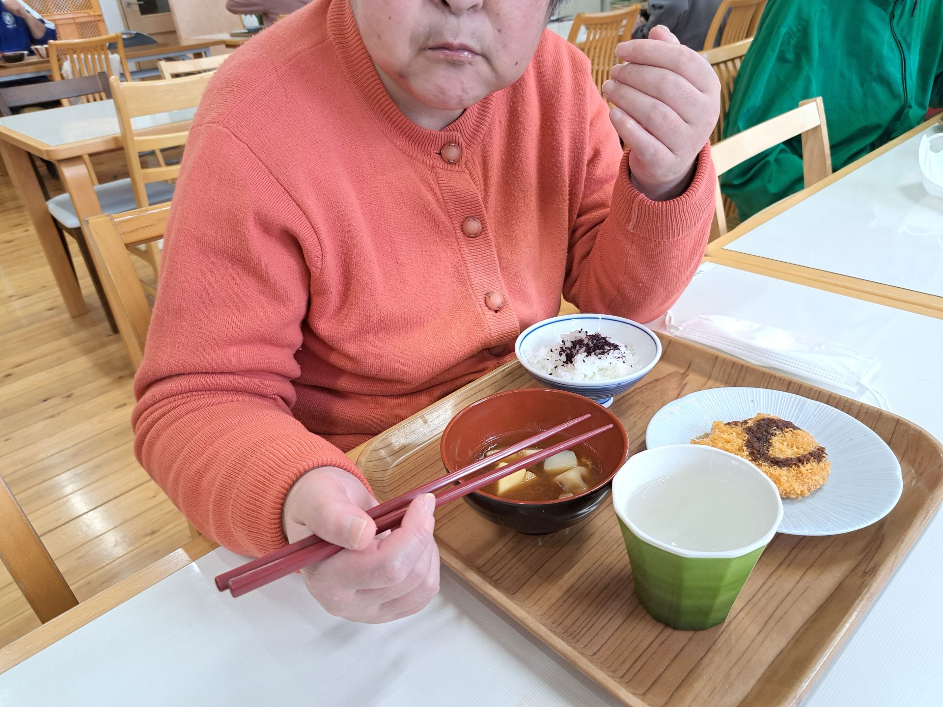 こちらはとあるGHの利用者さんなのですが、ご飯がいつも豪華~「鮭、大根おろし、野菜炒め、納豆ご飯、焼きふとネギのみそ汁だよ~♪」