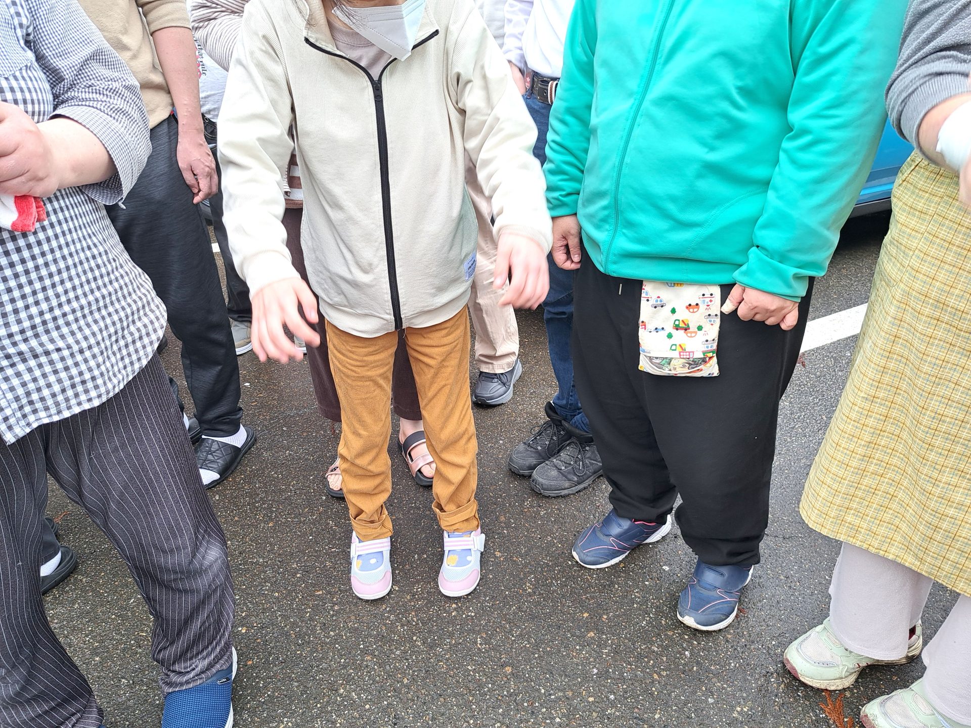 10時(結局利用者さんの予想通りの時間~笑)「火事だ――――男子更衣室から火事だーーーー!」と施設長の火事ぶれの声が響き渡りました!利用者さんは支援員の誘導にしたがってスムーズに避難行動。裁縫班は火元が玄関近くなので、裏口から内履きのまま避難することになります!