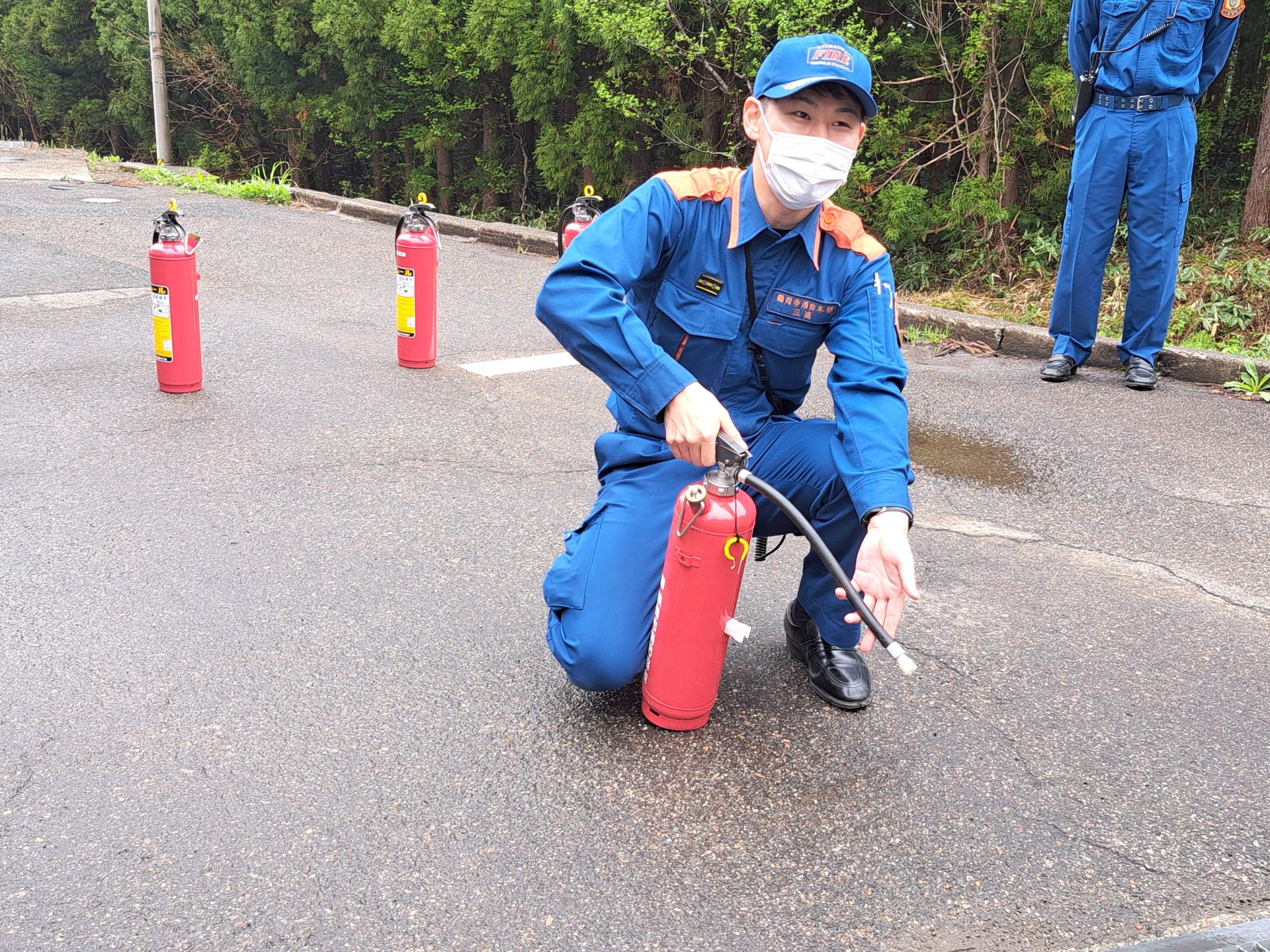ちなみに消火器で消せる火は、小さい火の場合で、人の背丈まである火は消せないのですぐに避難、通報してください。