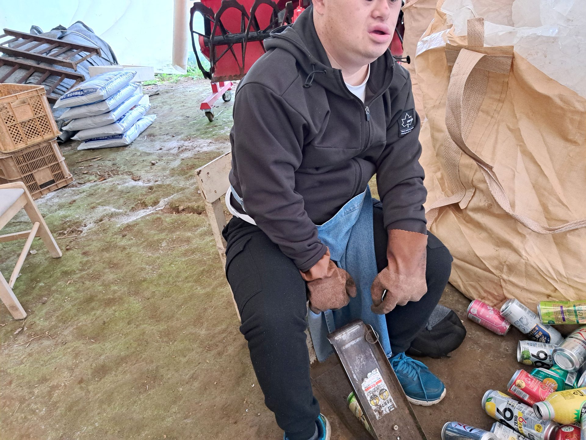 ハウスの後ろの畑にジャガイモの種を植える施設長~(=゚ω゚)ノ