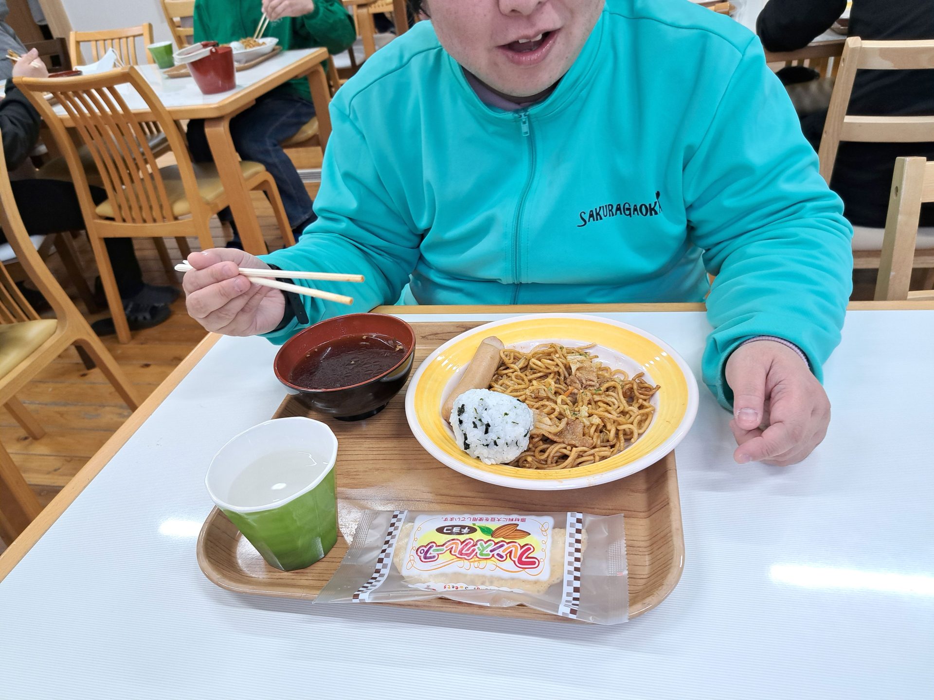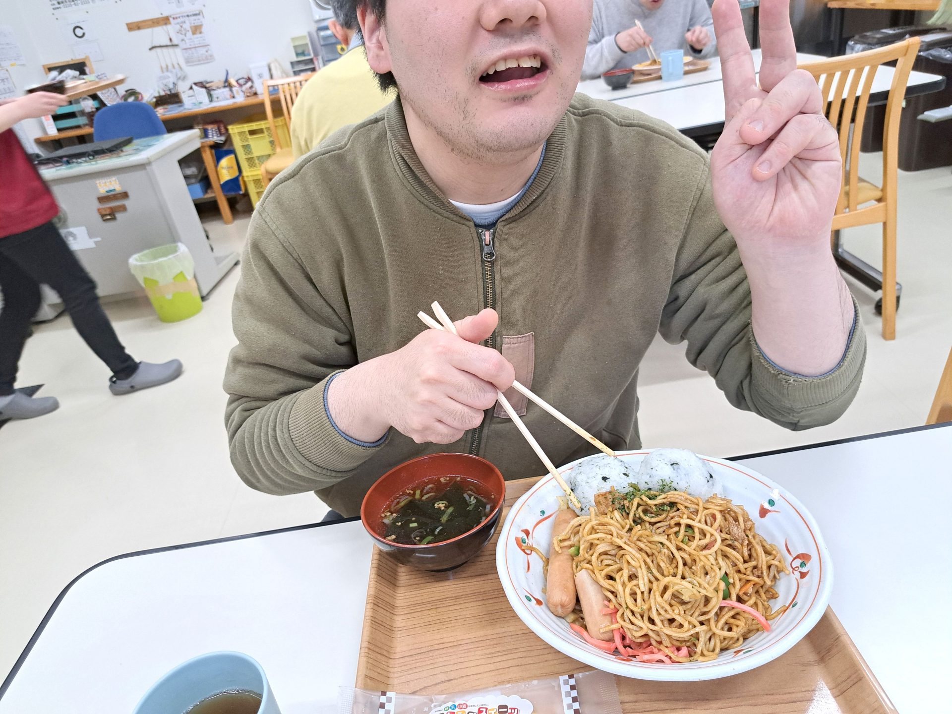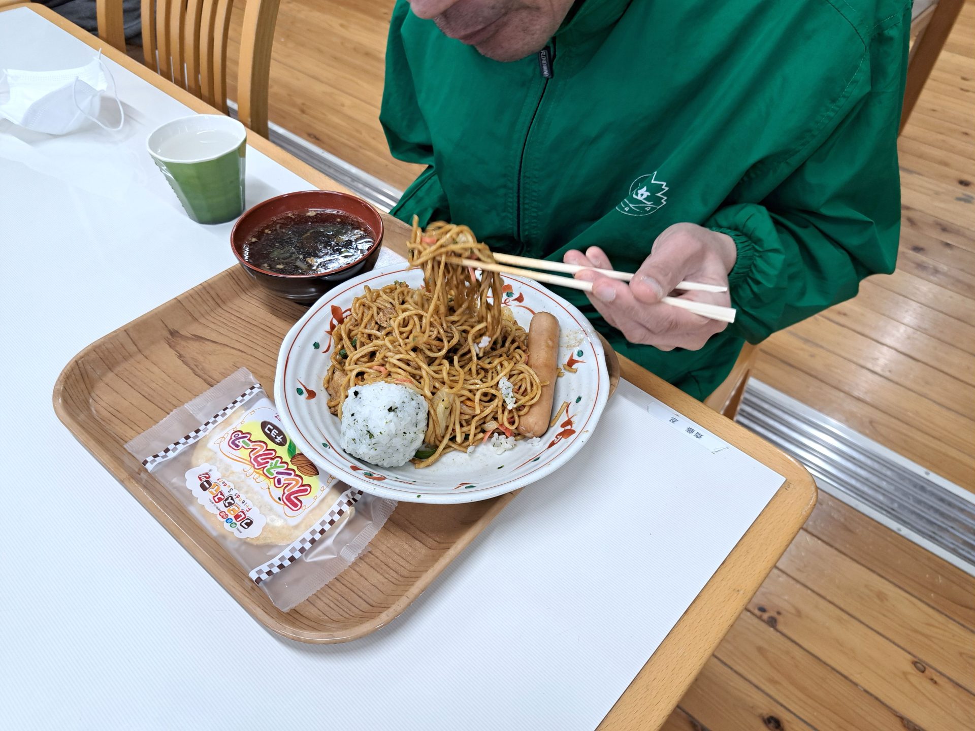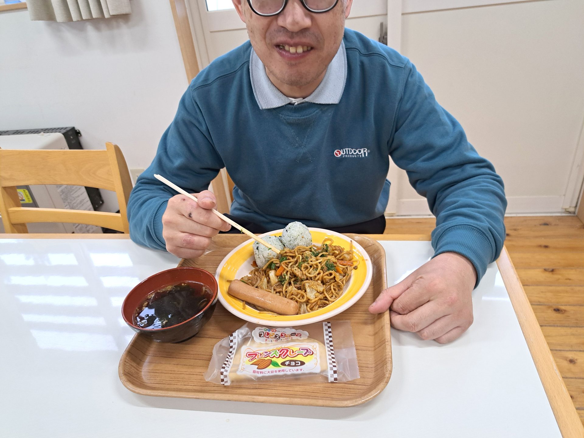 今日はソース焼きそばとおにぎりフランクフルト&ワカメスープ♪めっちゃ美味しそうですーーー(/ω\)