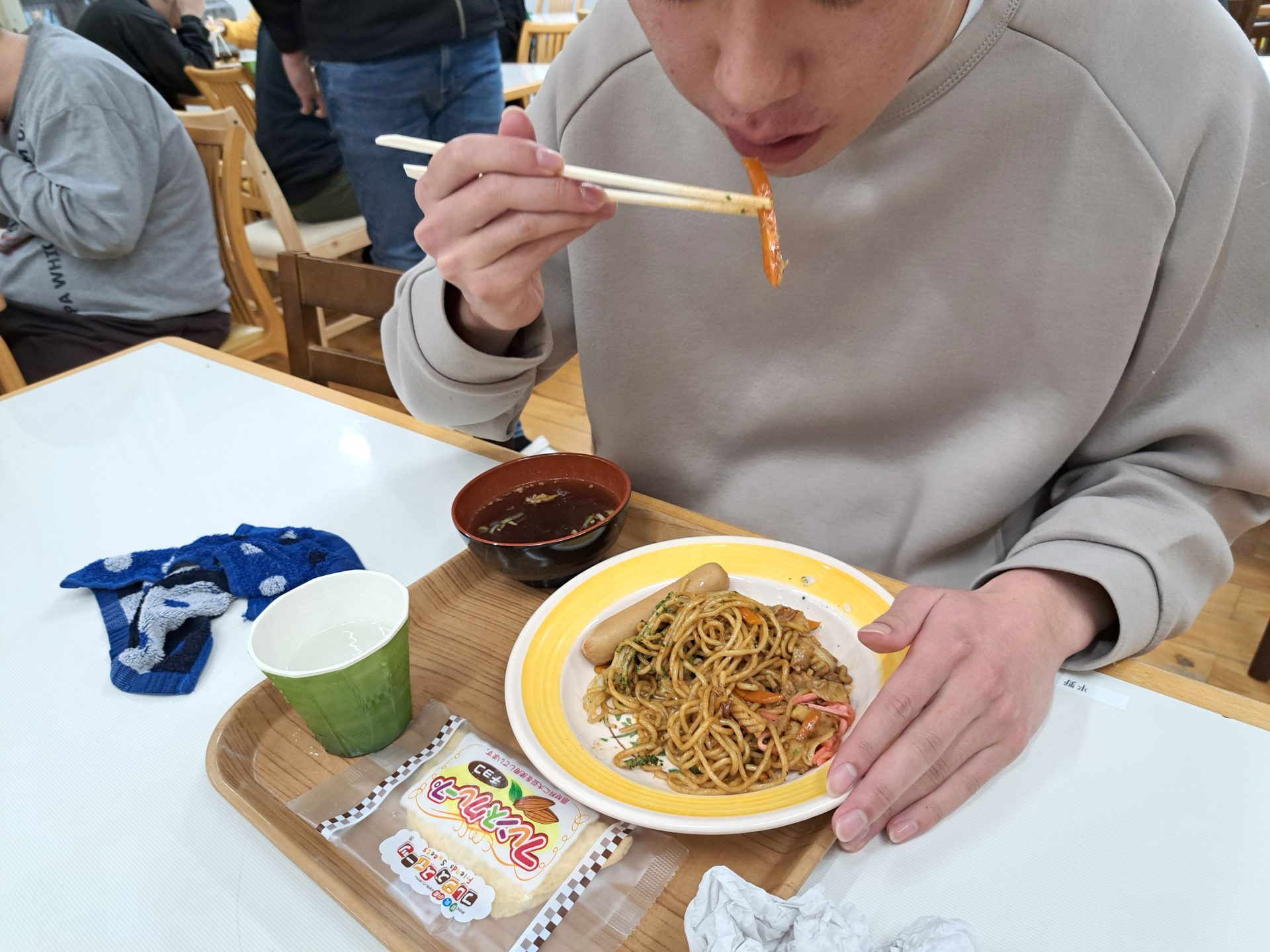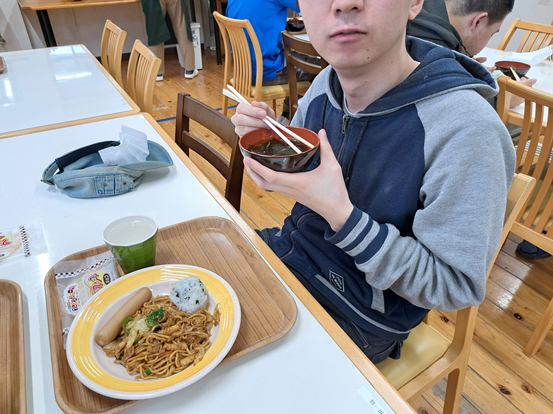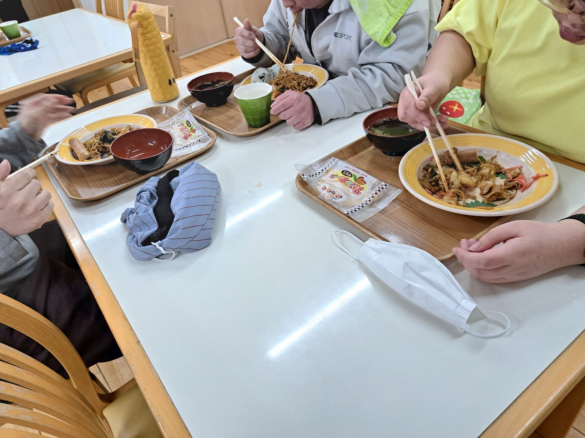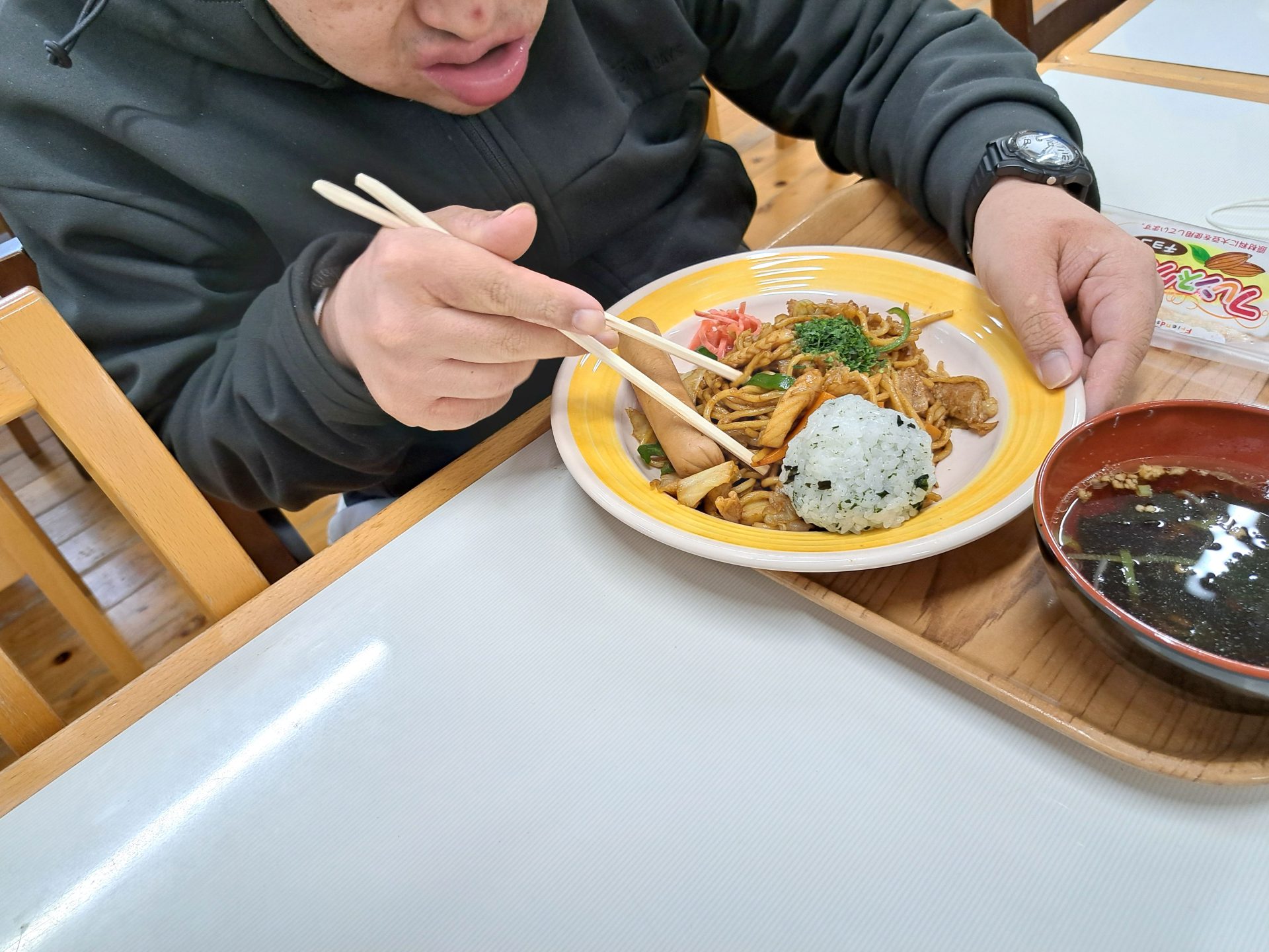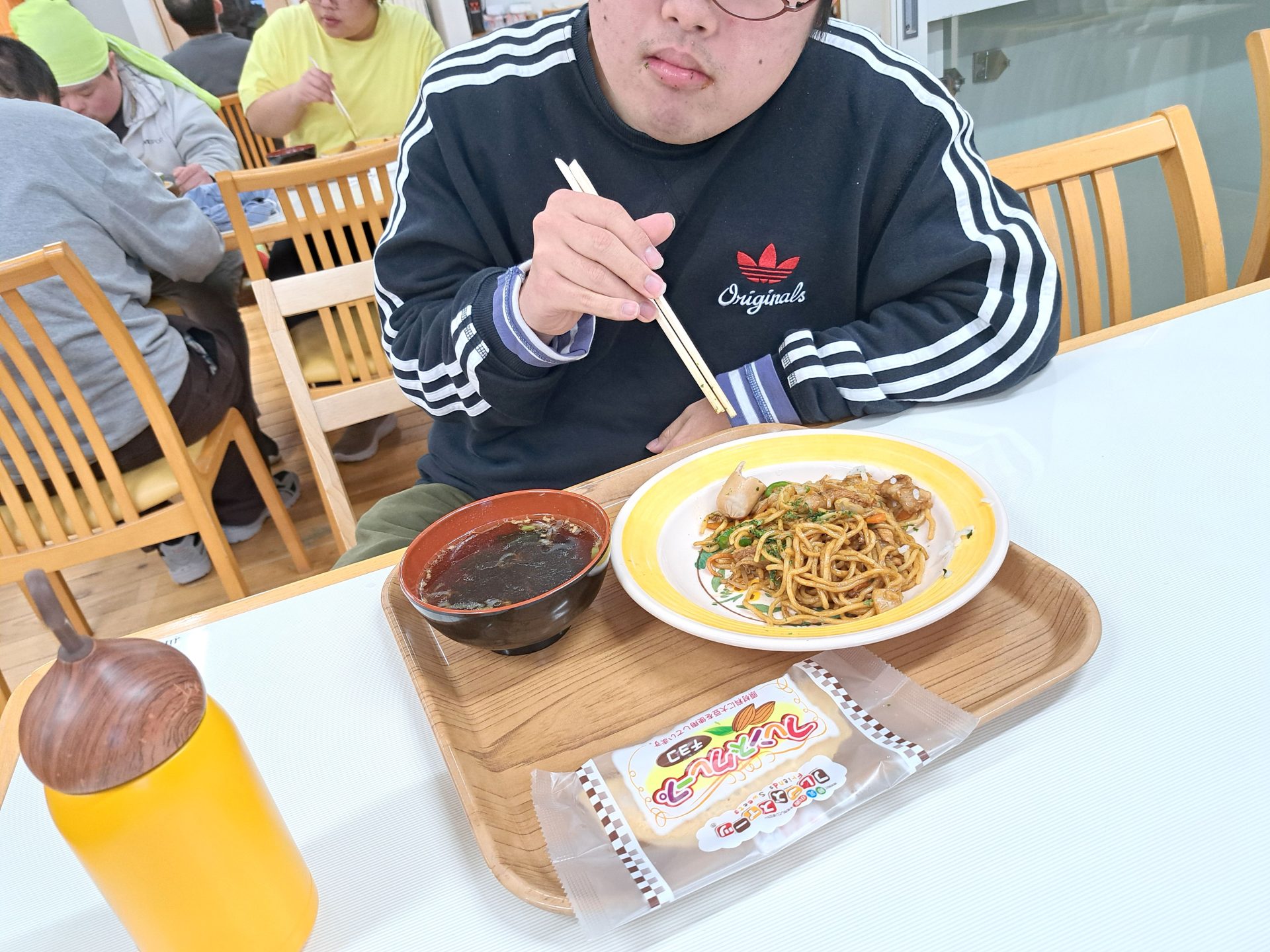 今日はソース焼きそばとおにぎりフランクフルト&ワカメスープ♪めっちゃ美味しそうですーーー(/ω\)