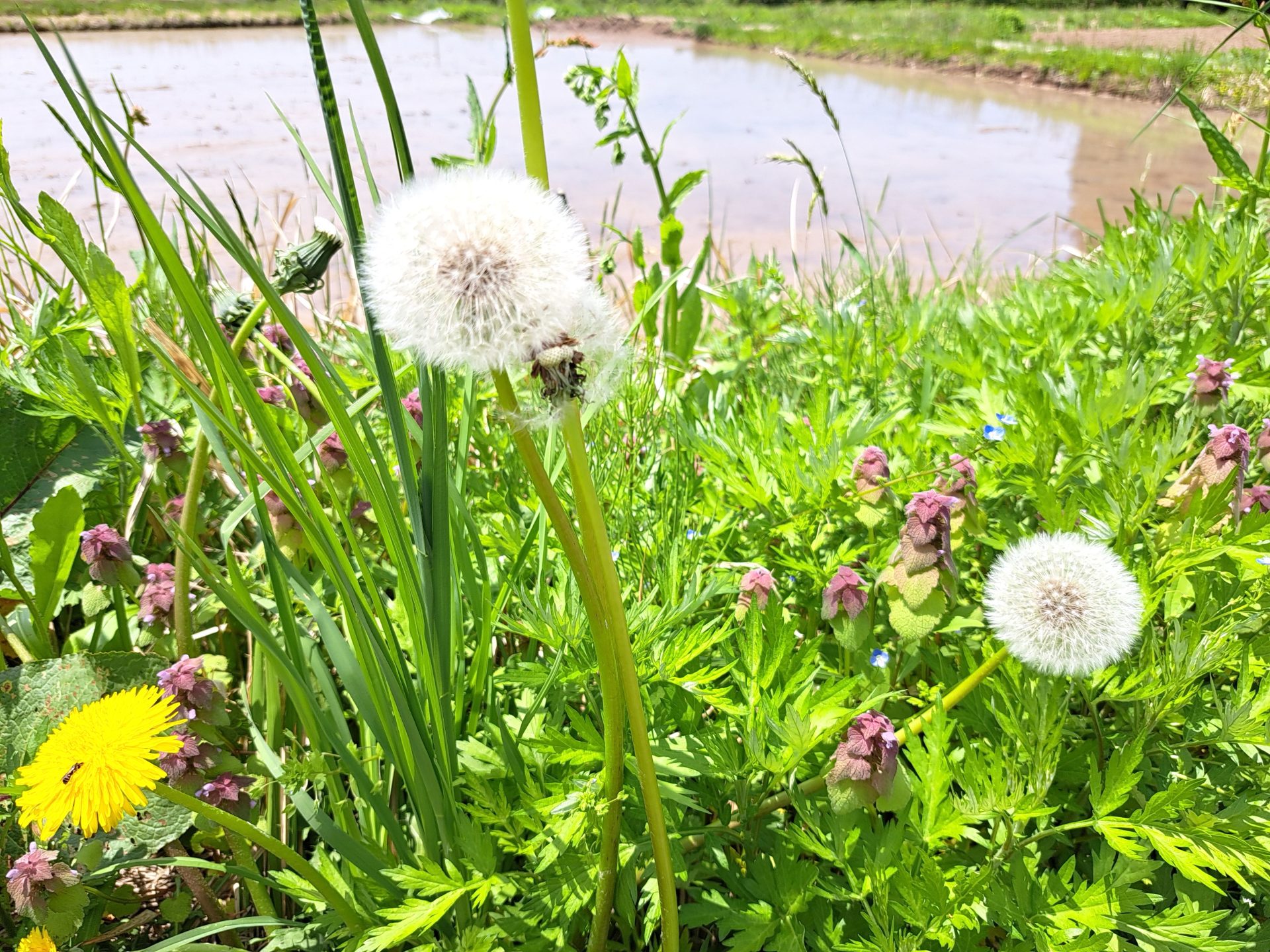 - 水田の周りには大きなタンポポ~♪