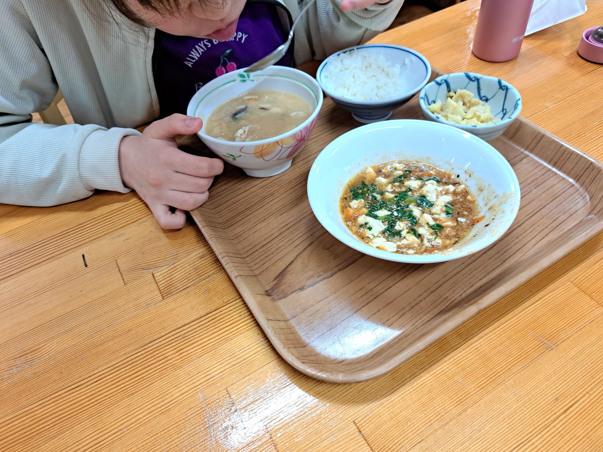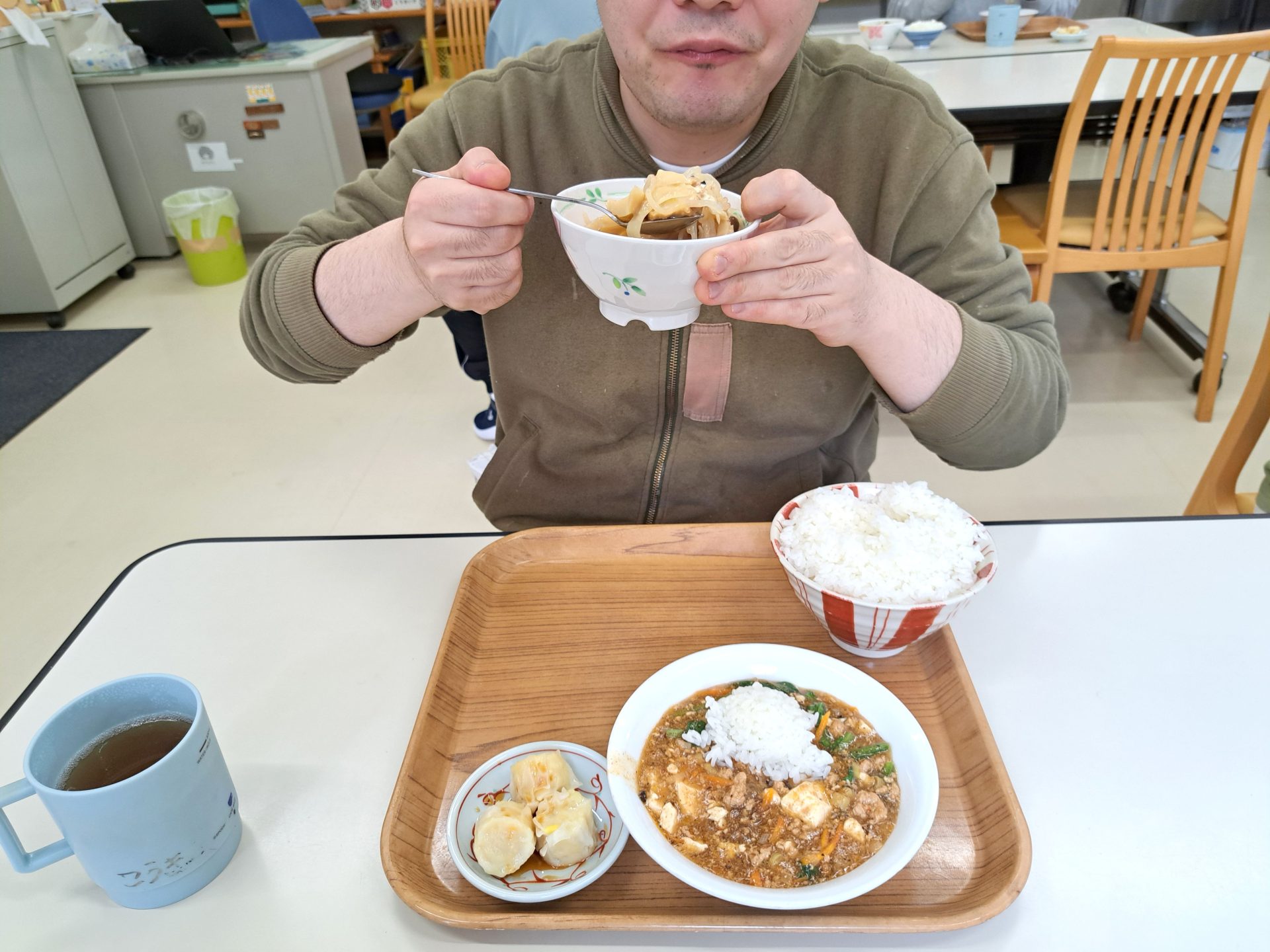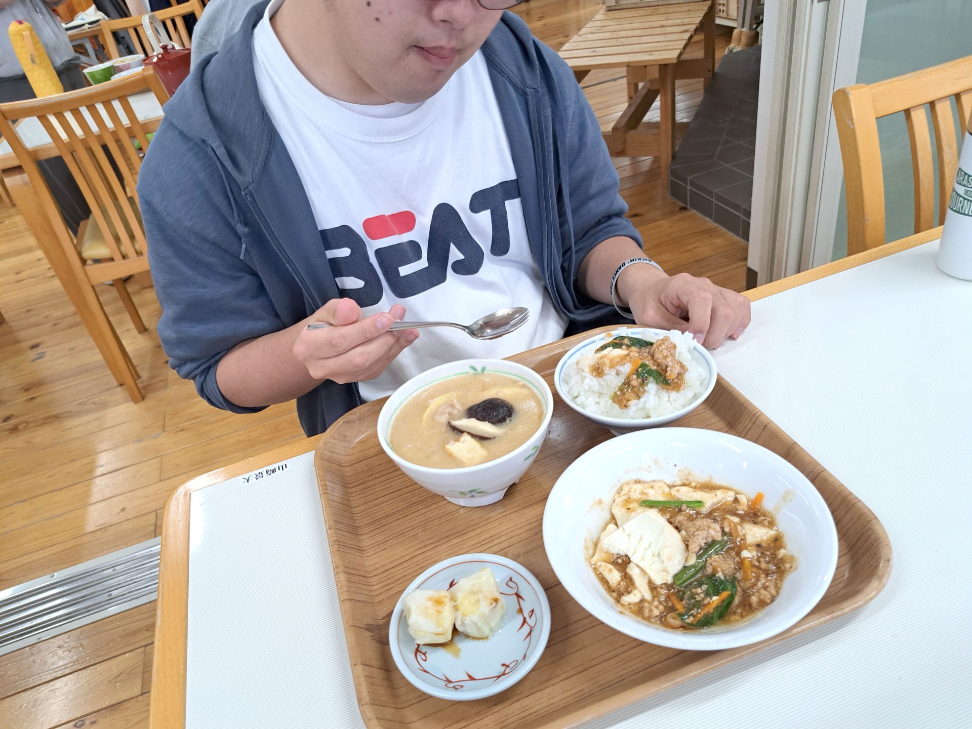 マーボー豆腐に孟宗汁とシュウマイって、すごいボリューミー!!