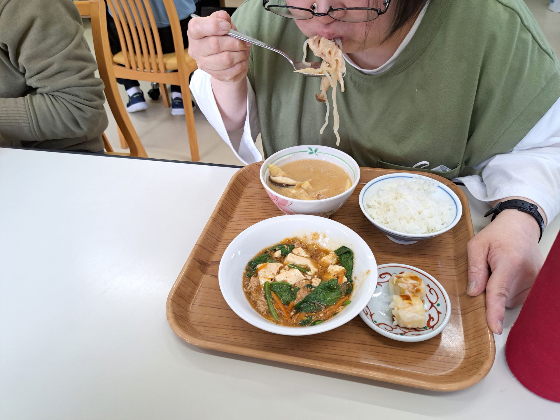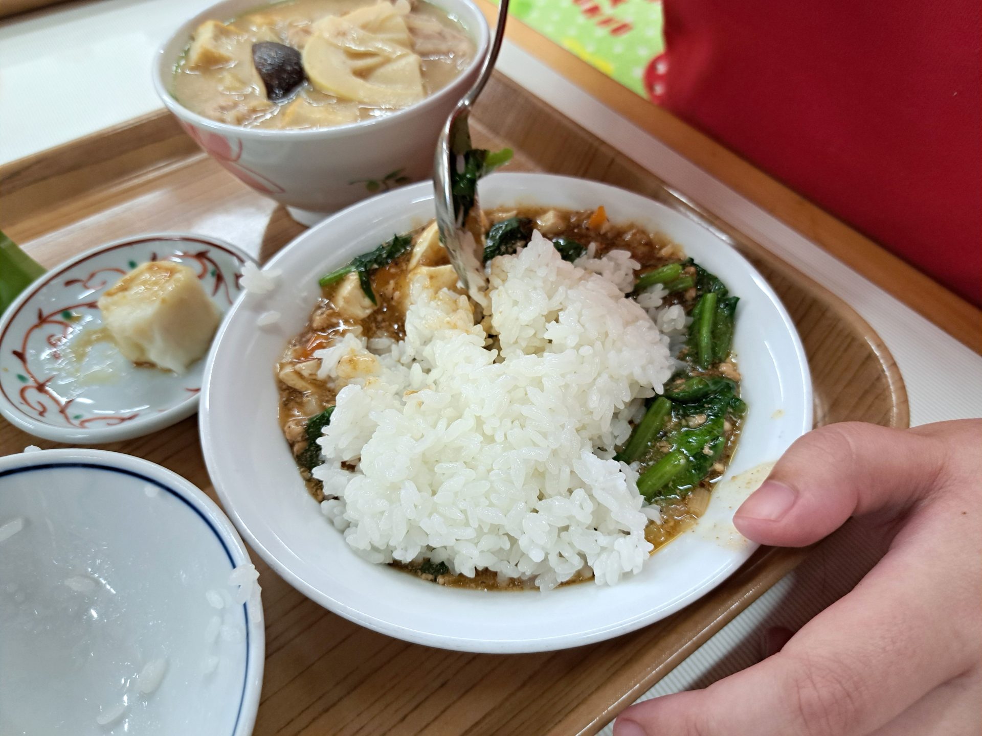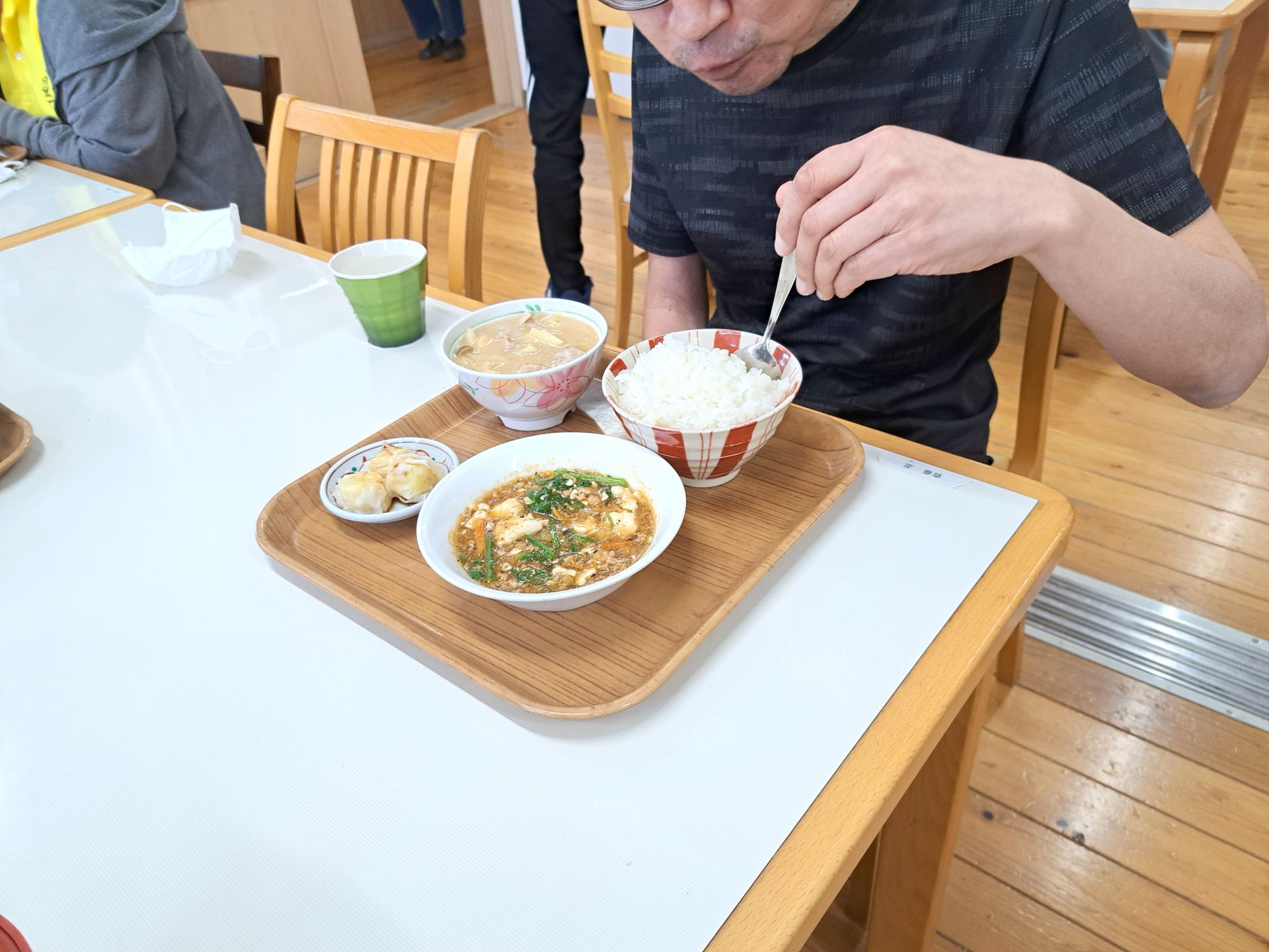 マーボー豆腐に孟宗汁とシュウマイって、すごいボリューミー!!