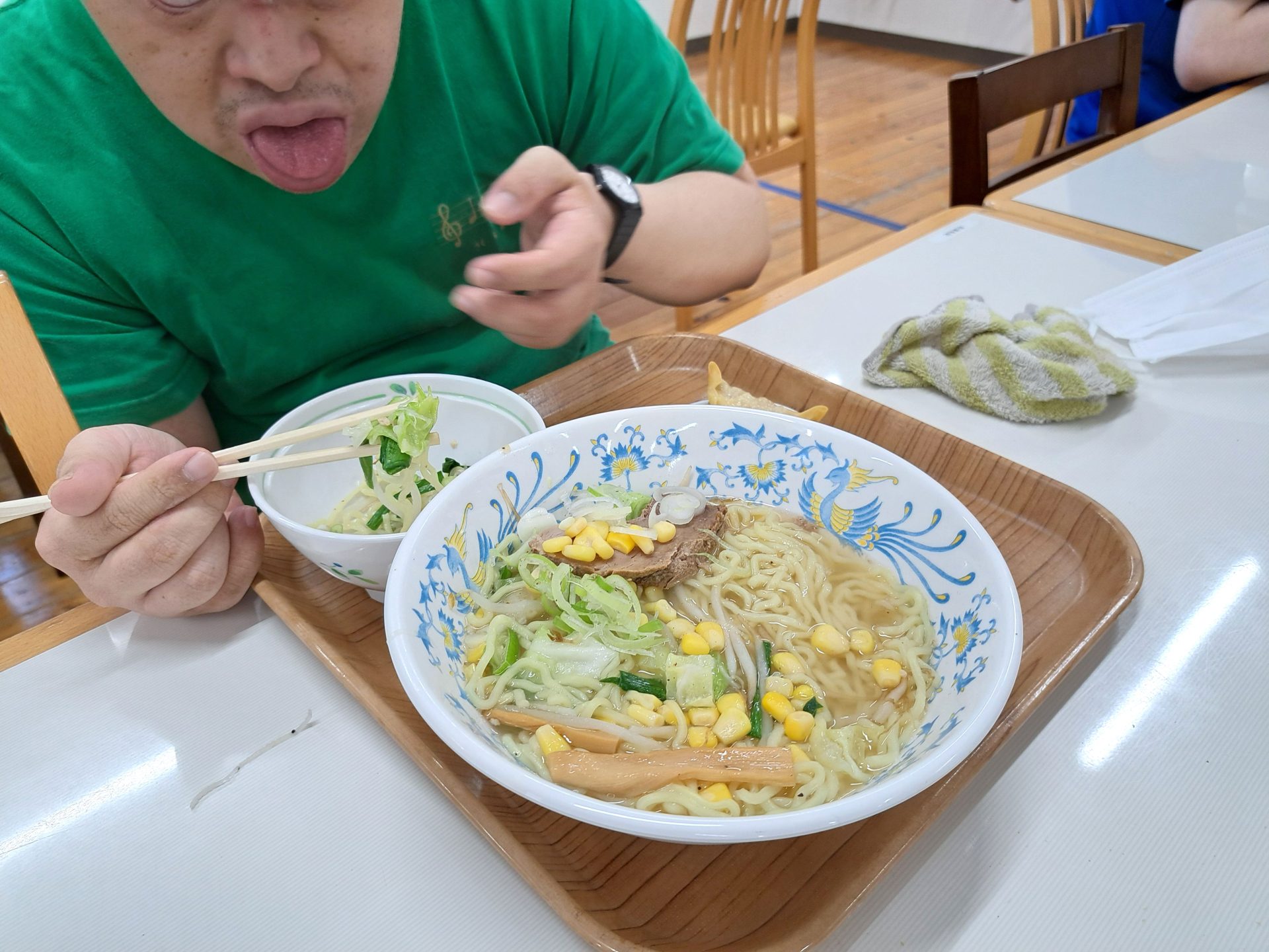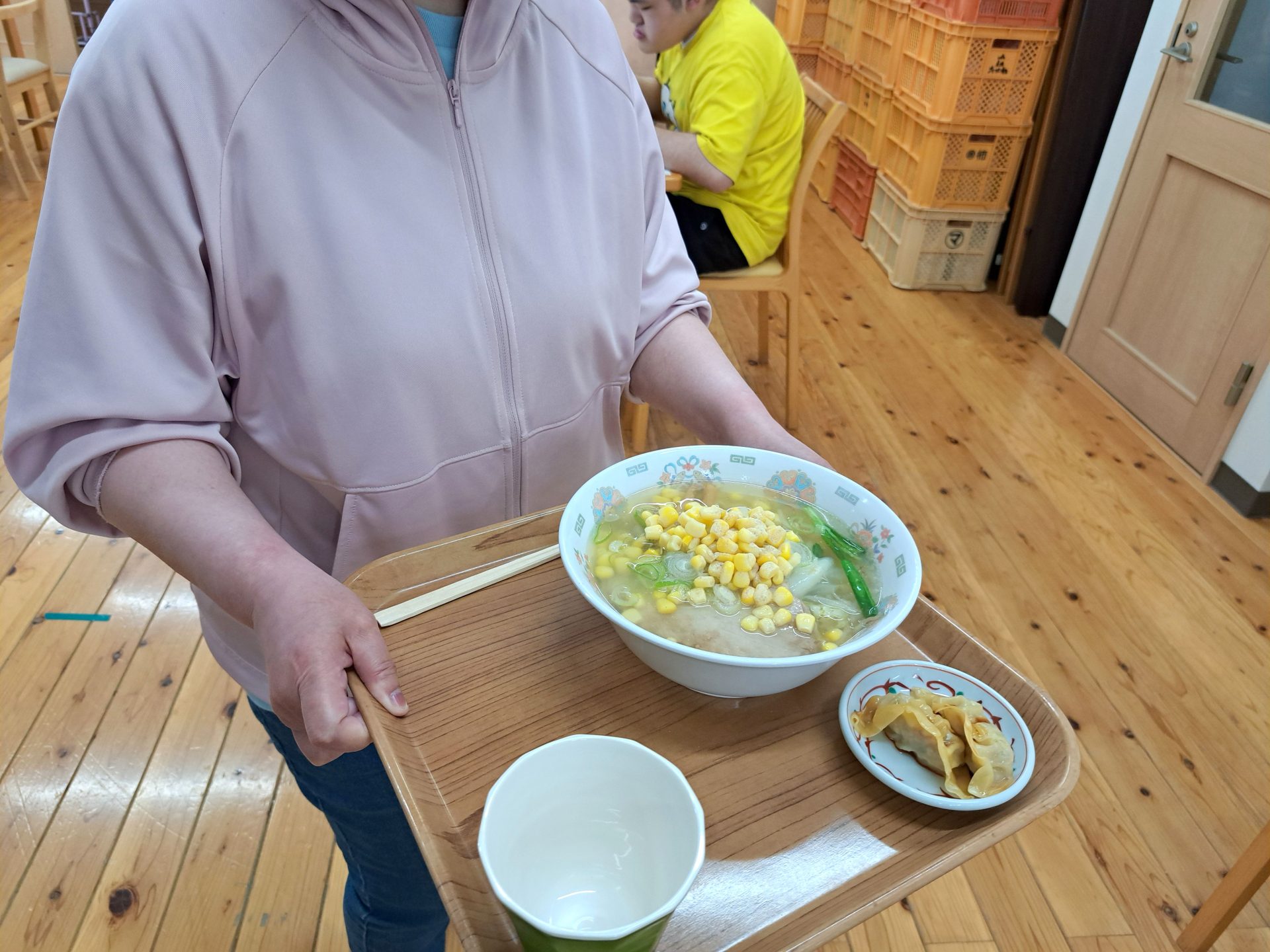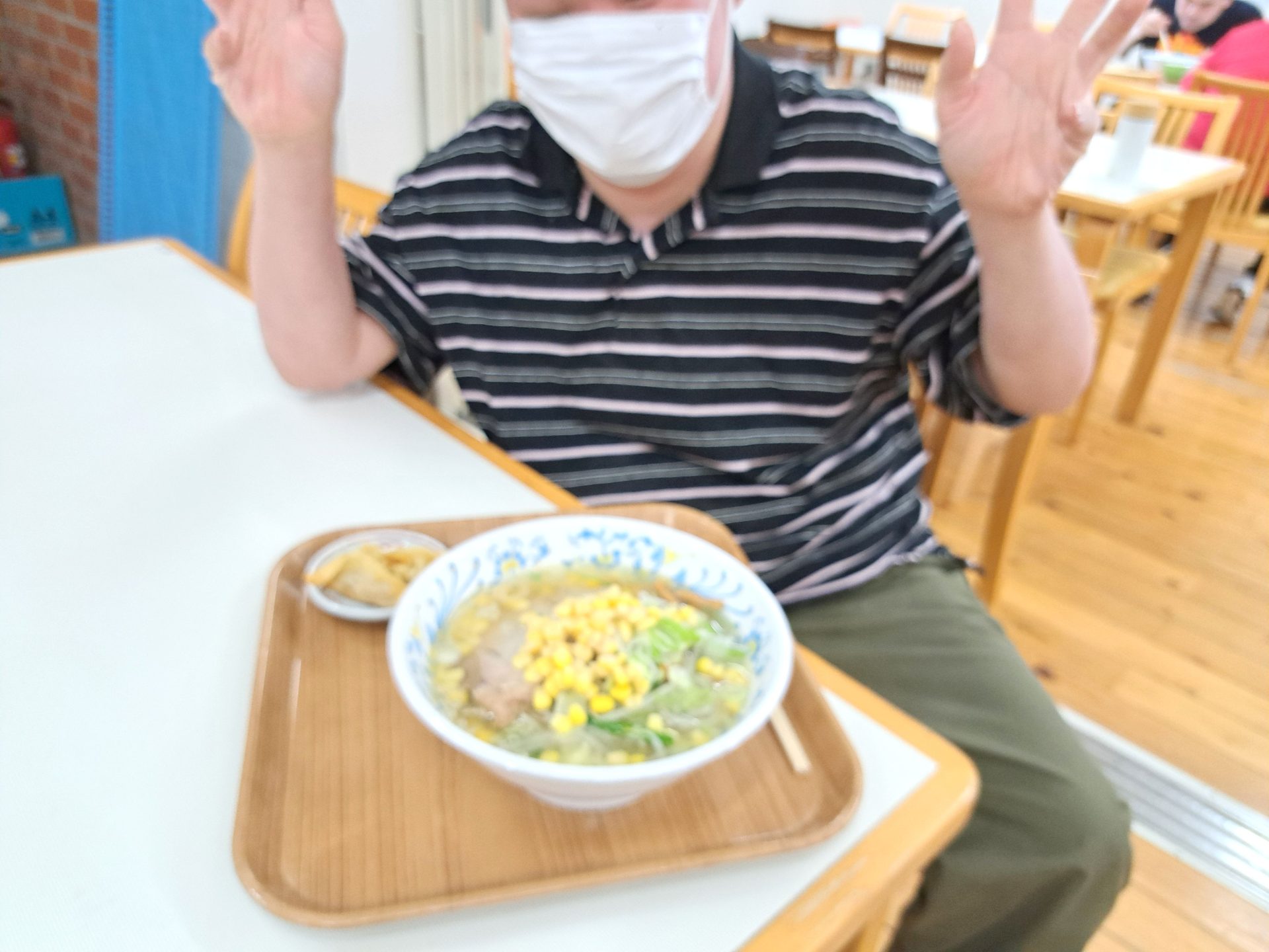こちら20歳と1日の利用者さんです~「鮭の焼き魚とご飯と牛乳です!」