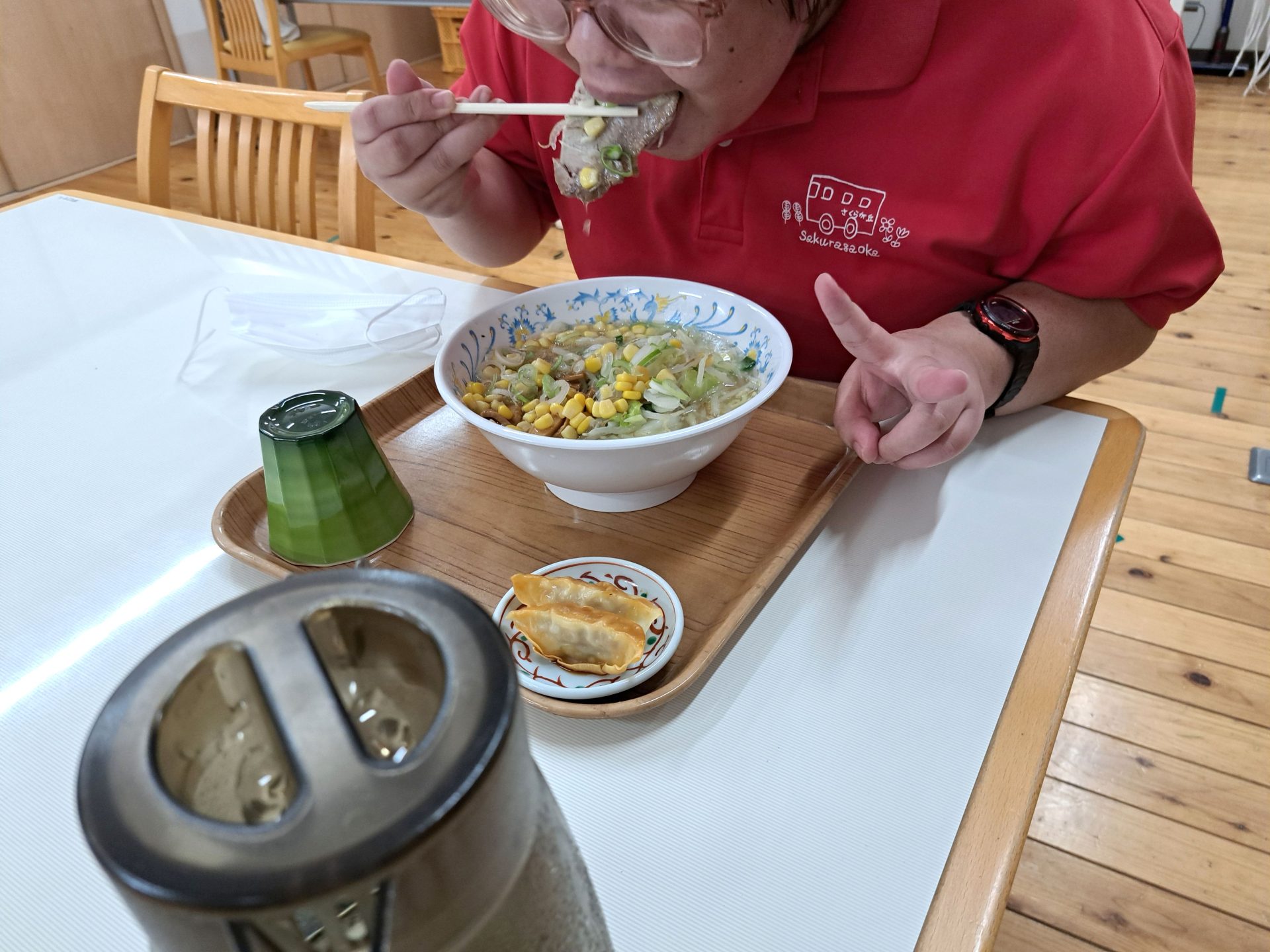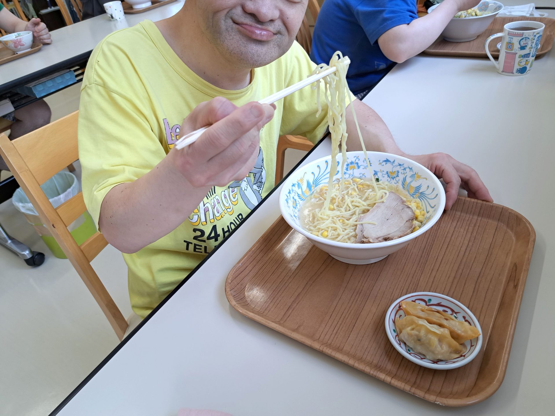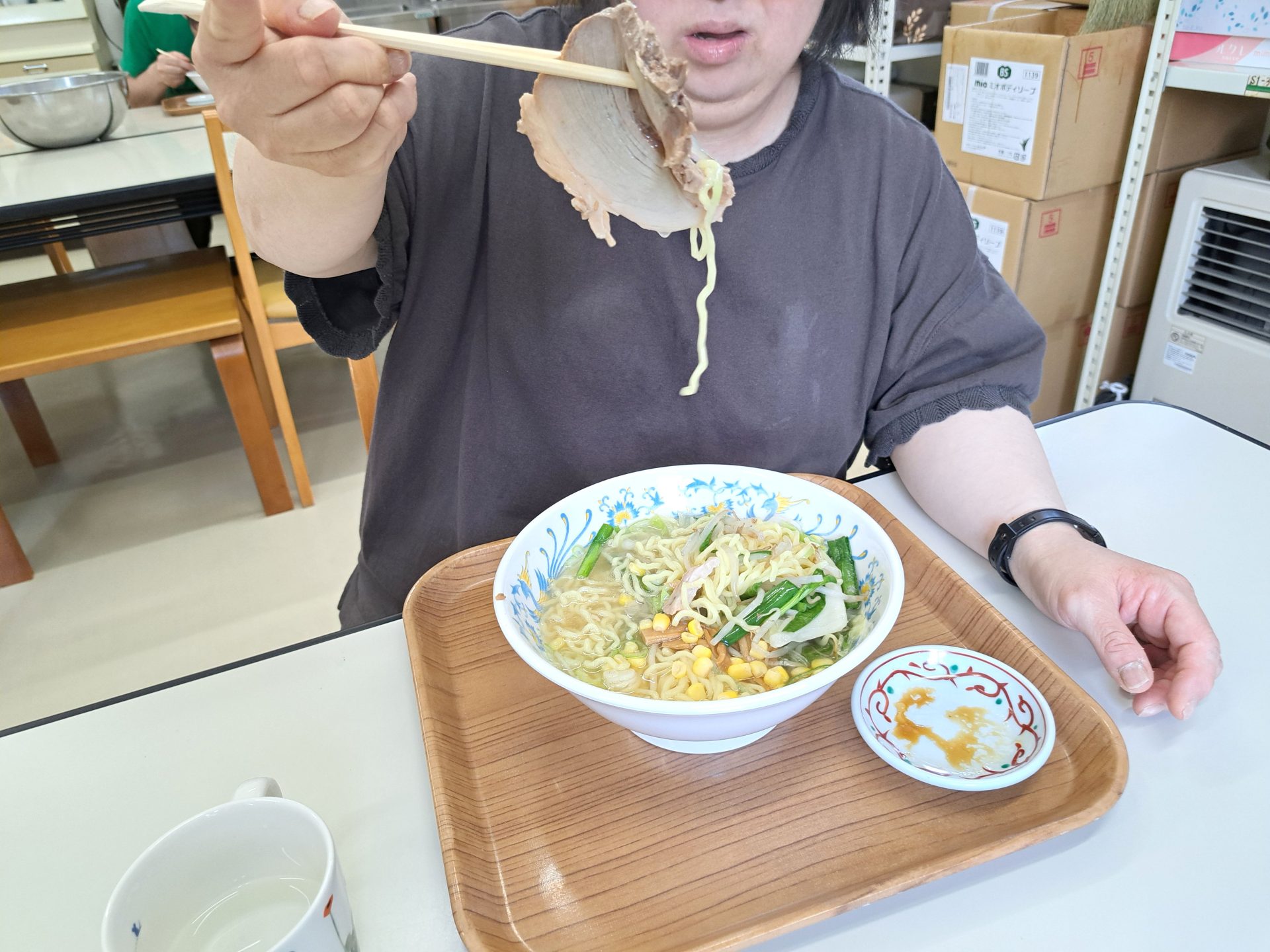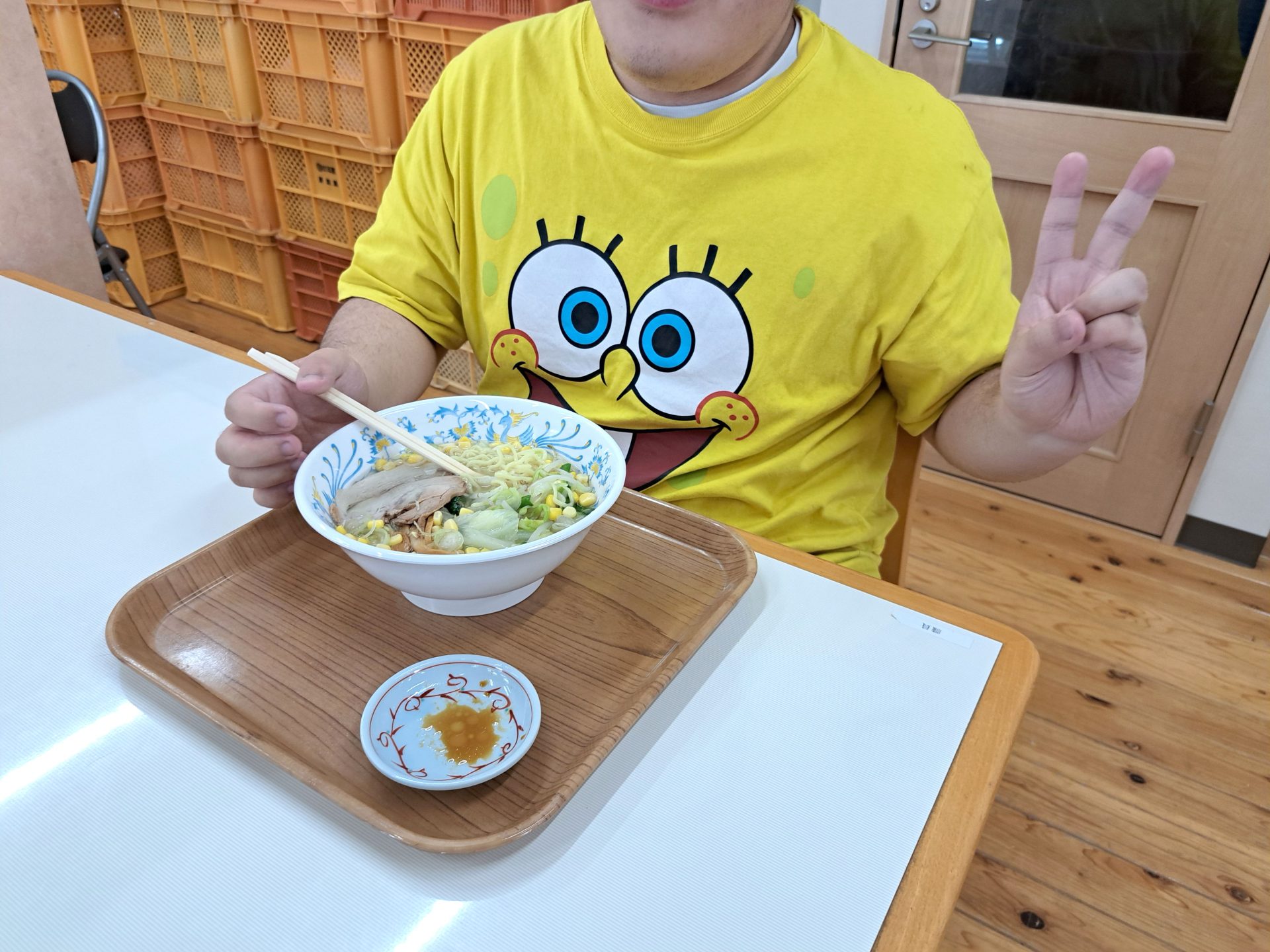 こちら20歳と1日の利用者さんです~「鮭の焼き魚とご飯と牛乳です!」