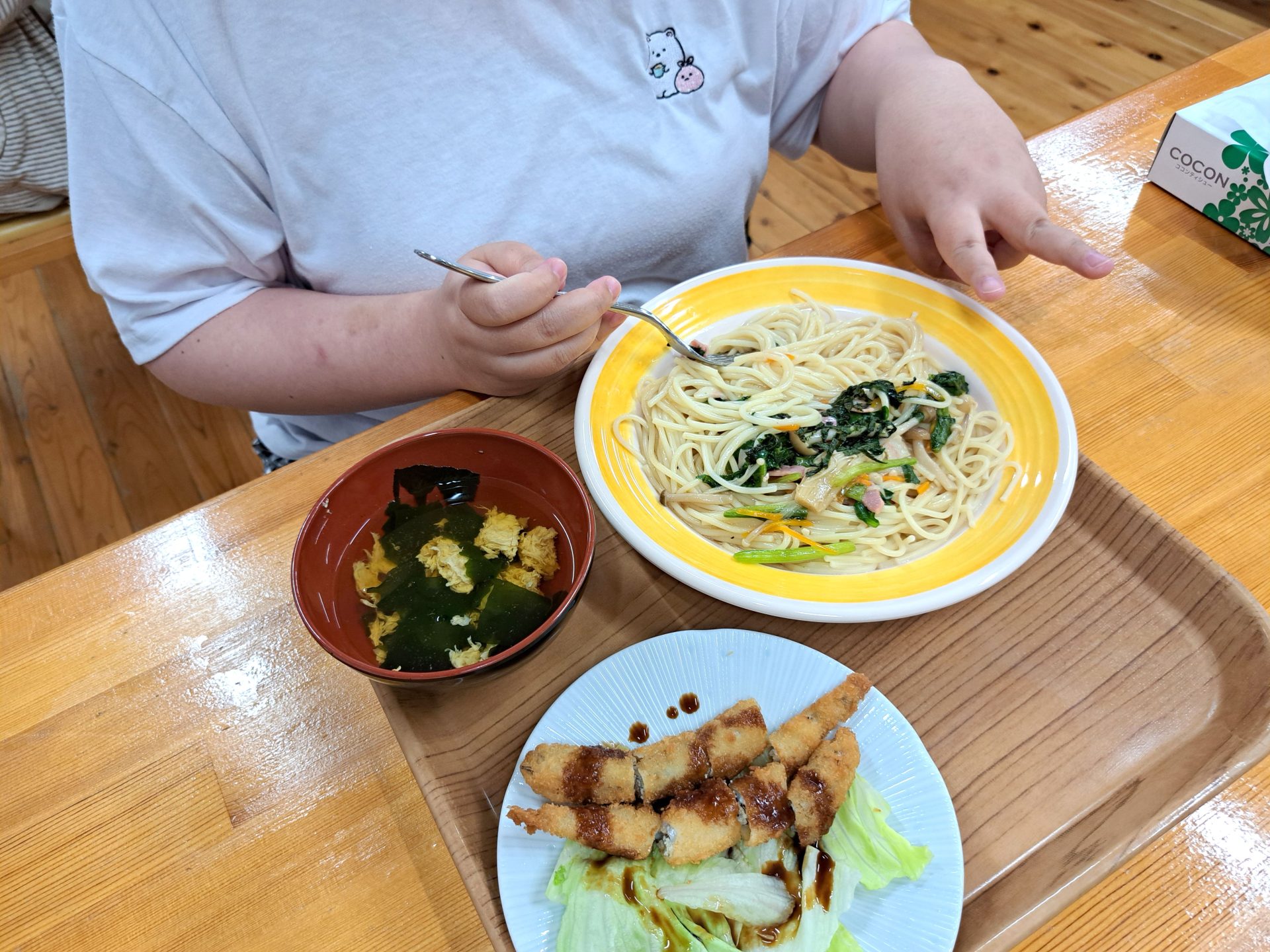 今日は久しぶりの「和風スパゲティ」ししゃもフライは鉄板コンビですね♪