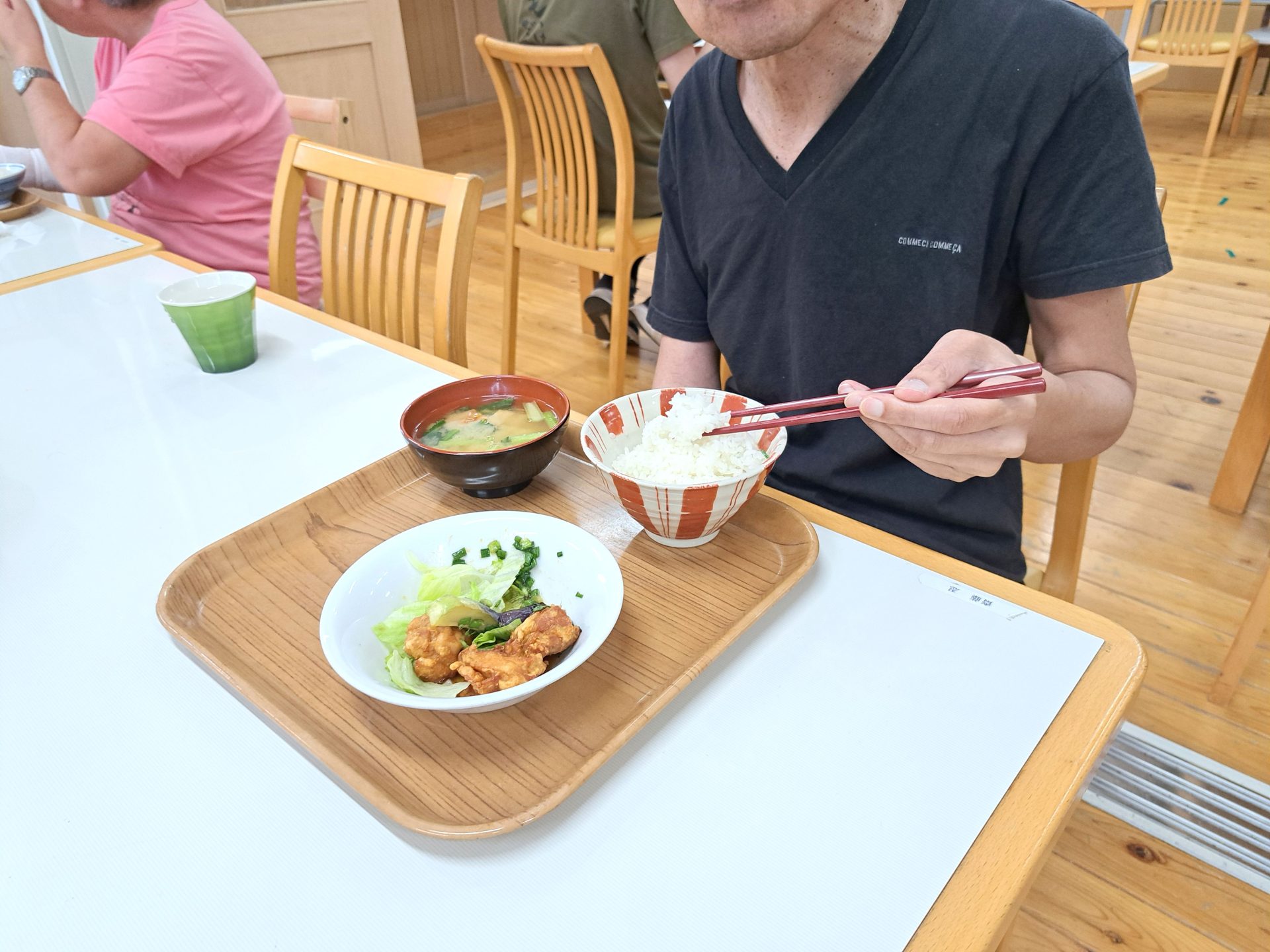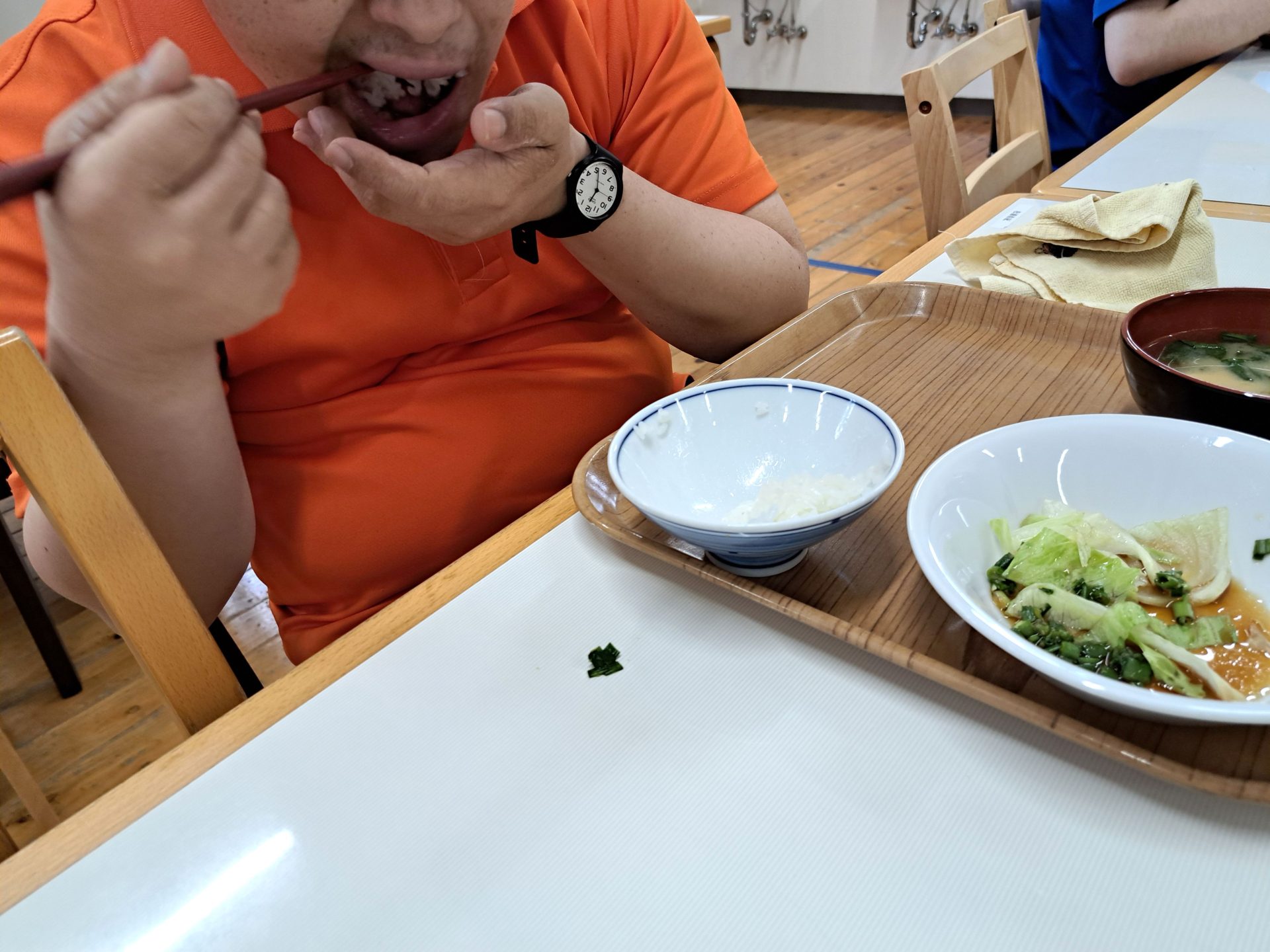 食堂では農芸班が作業中~中は涼しくていいね~♪