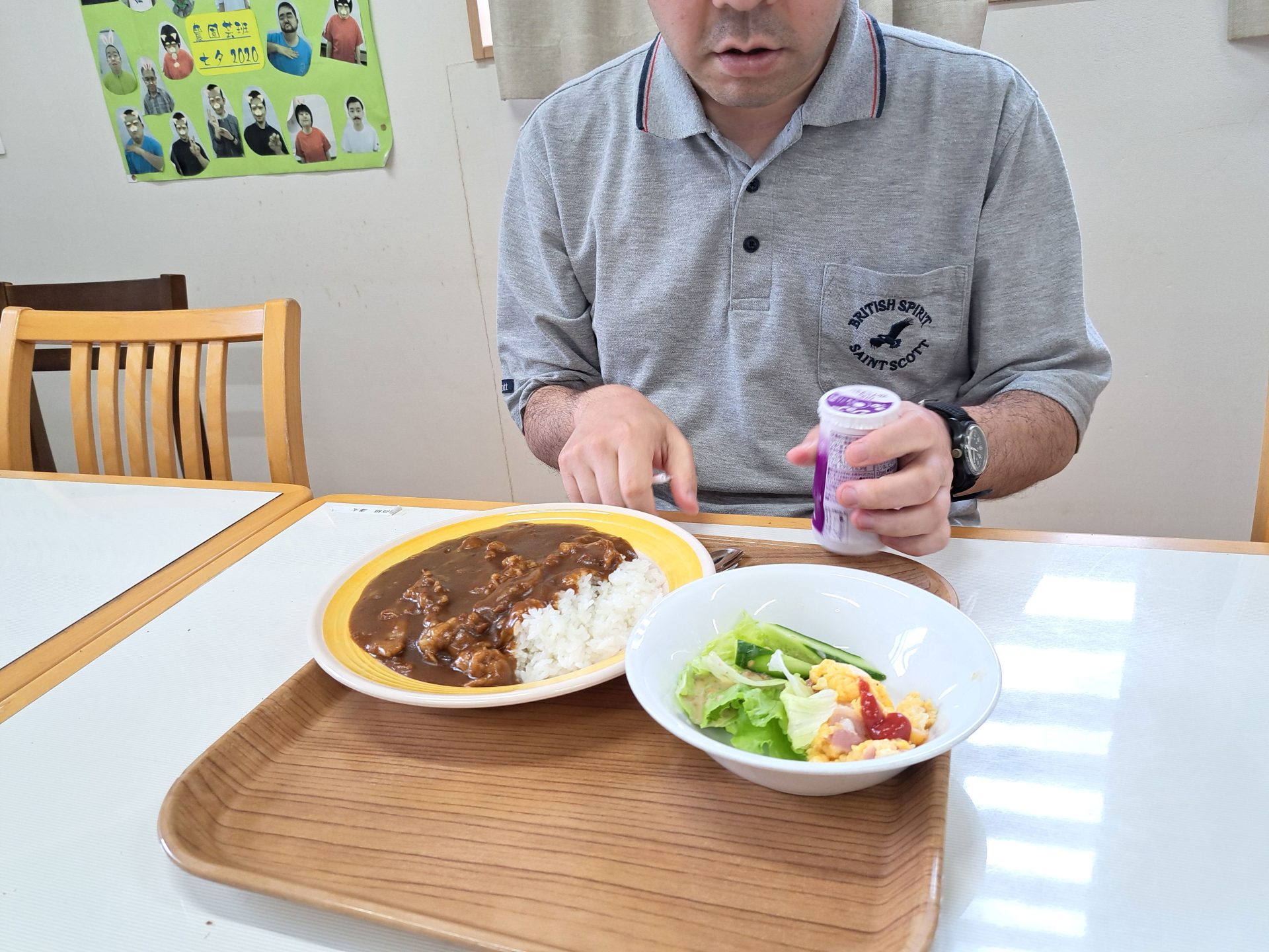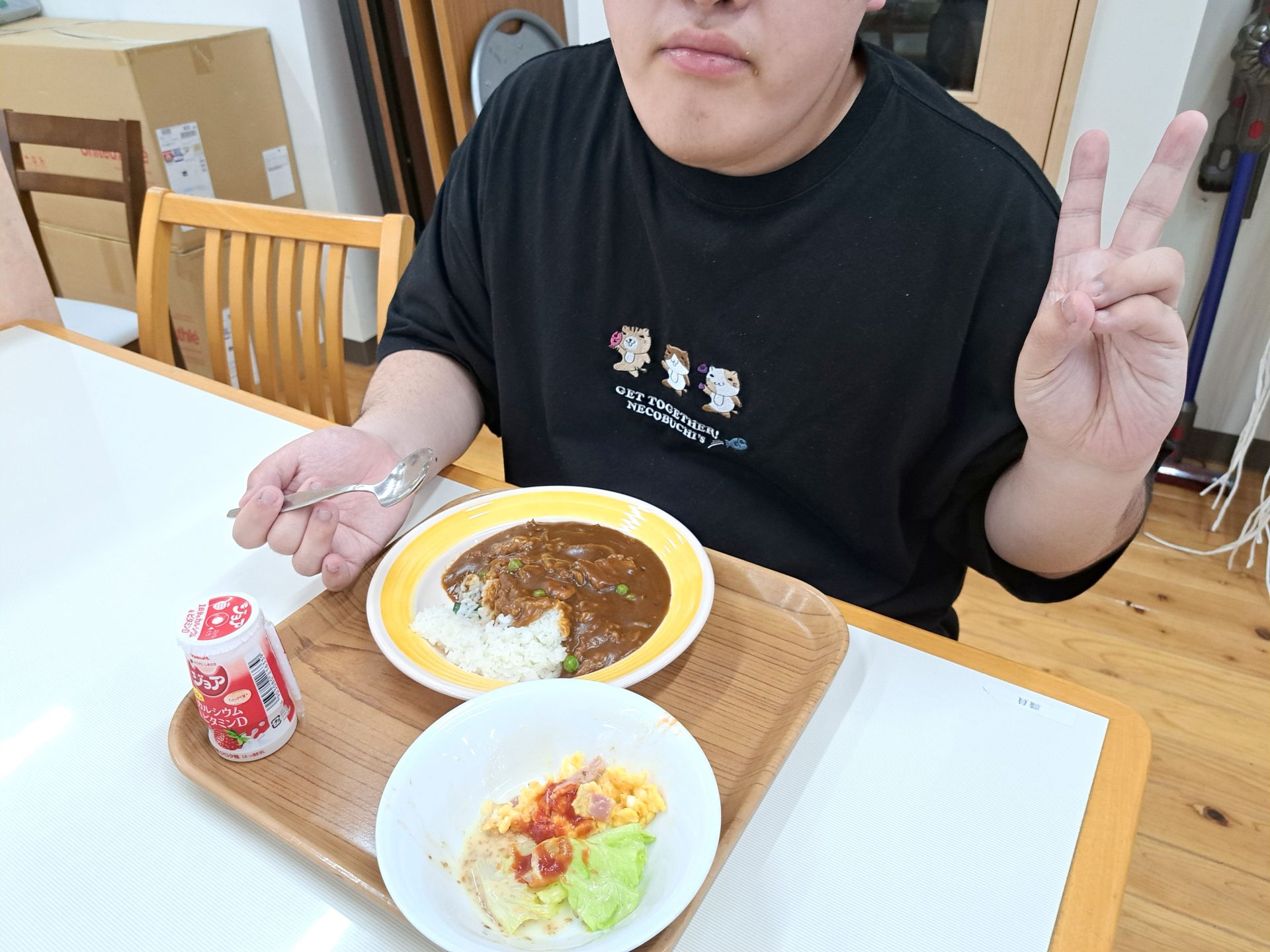 今日は豪華国産牛肉のハヤシライス&スクランブルエッグ&サラダ~ジョア付き♪!(^^)!