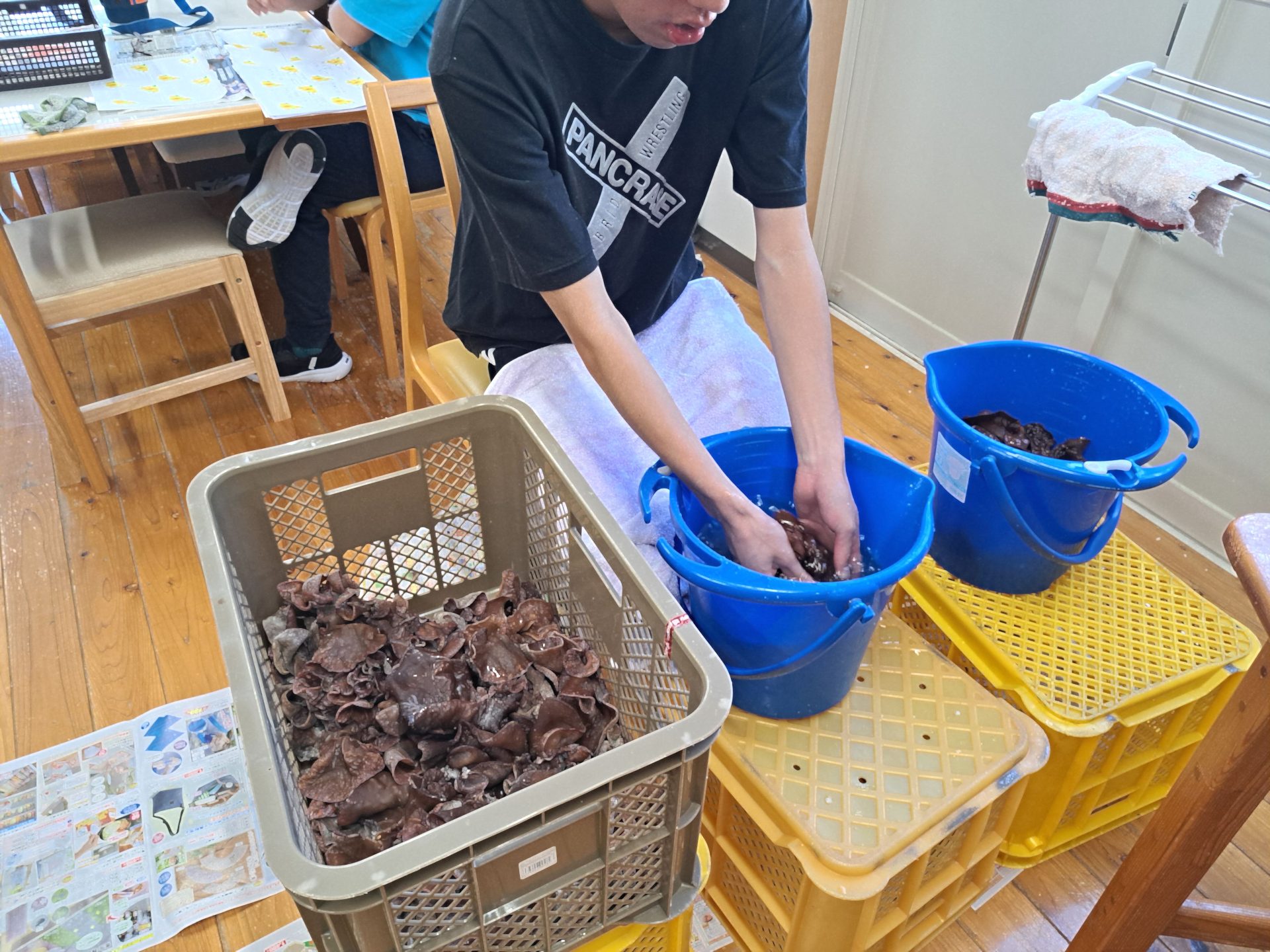 今日も農芸班は室内で作業~きくらげのお仕事忙しい~♪
