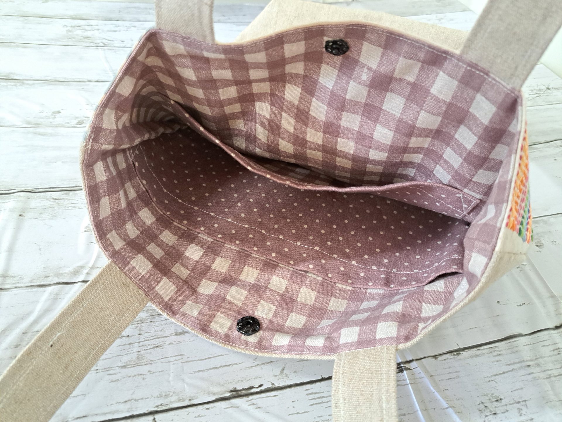 ようやく完成した刺し子バック~久しぶりに作ったのですが、やっぱり刺し子はかわいいですね~( *´艸`)