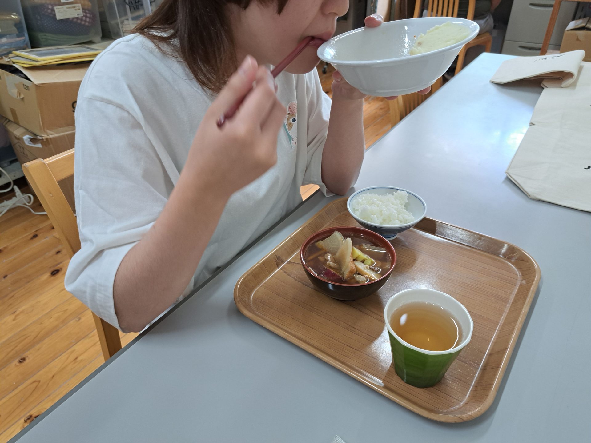 炊き立てごはんに、作り立ての熱々さつま汁~♪