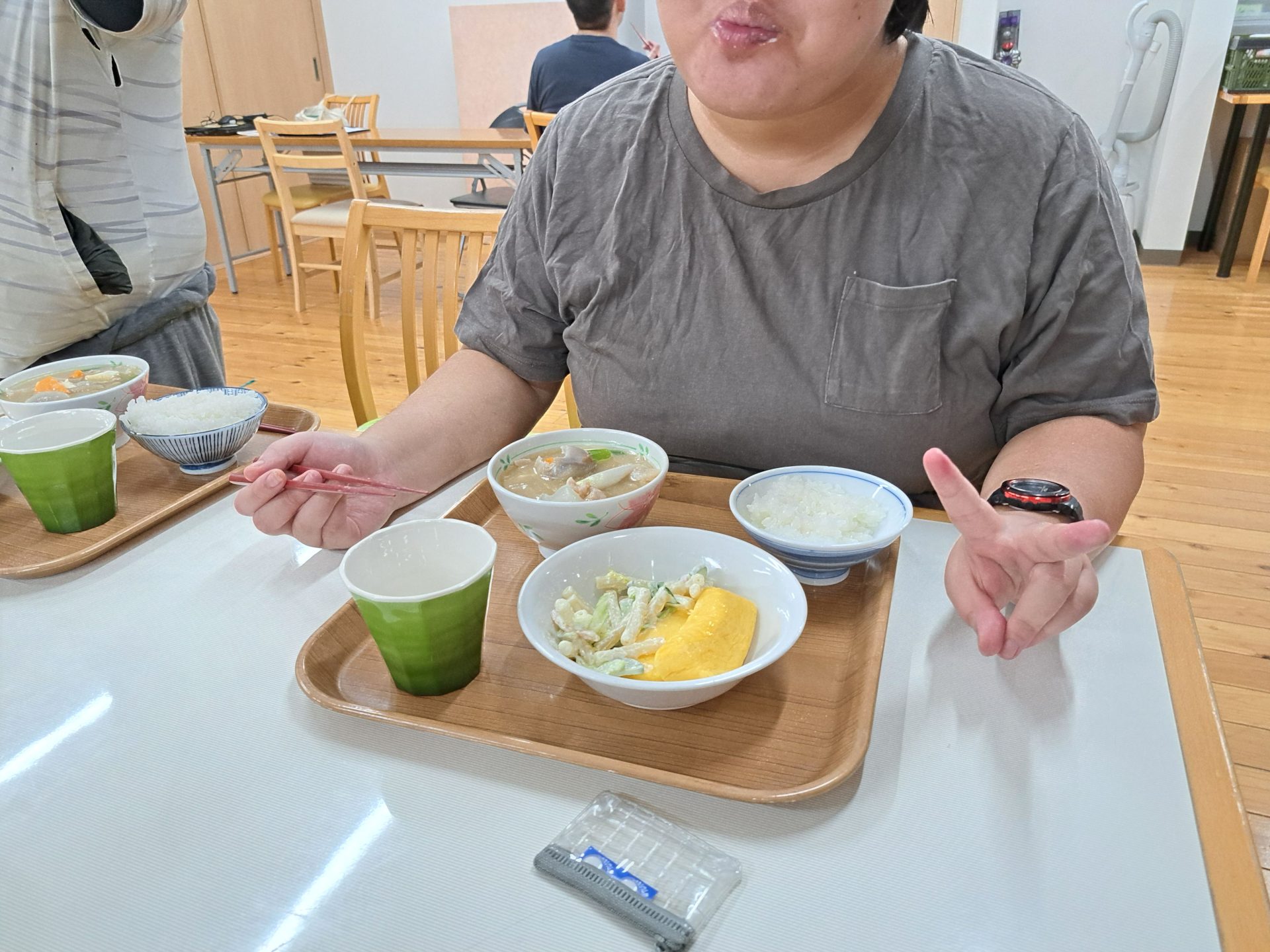 - 「卵焼きとじゃがいもの味噌汁だっけ~」