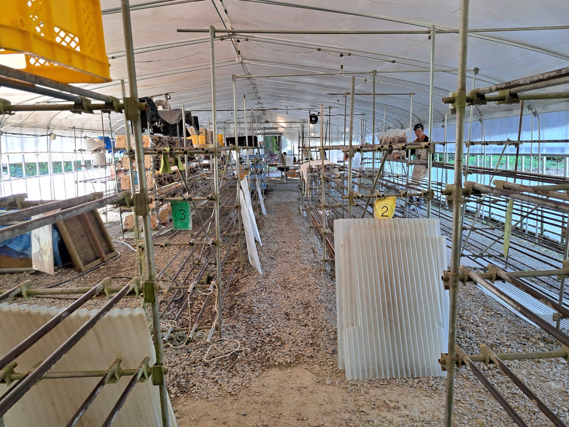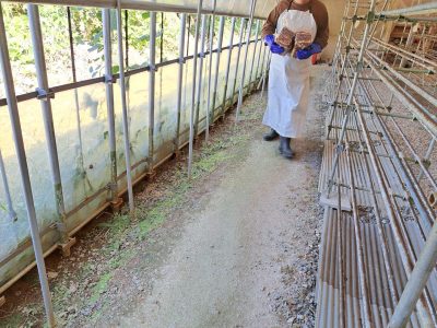 農芸班では今日から椎茸の菌床を移動、袋明け作業開始!