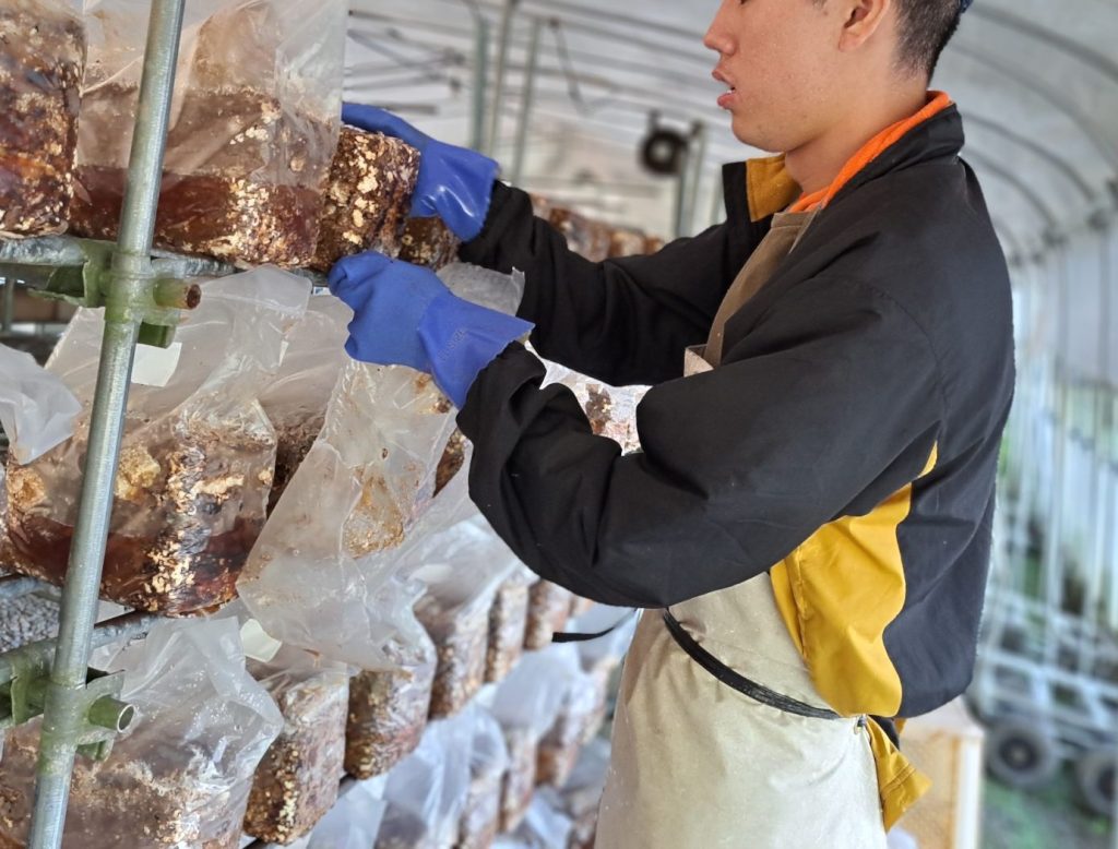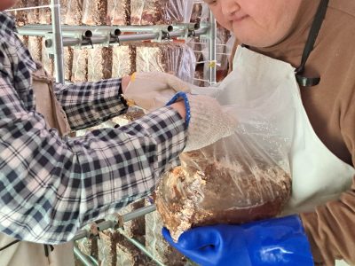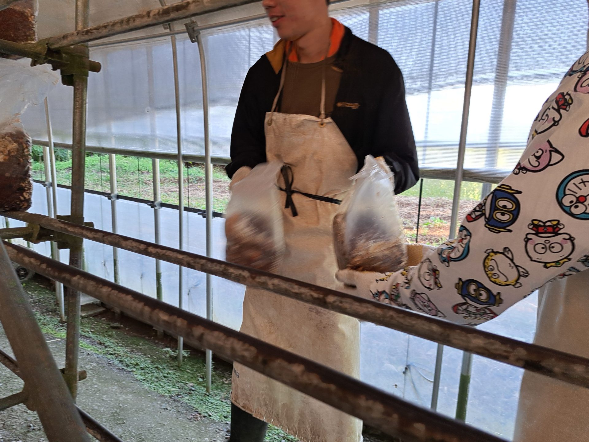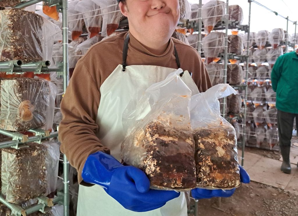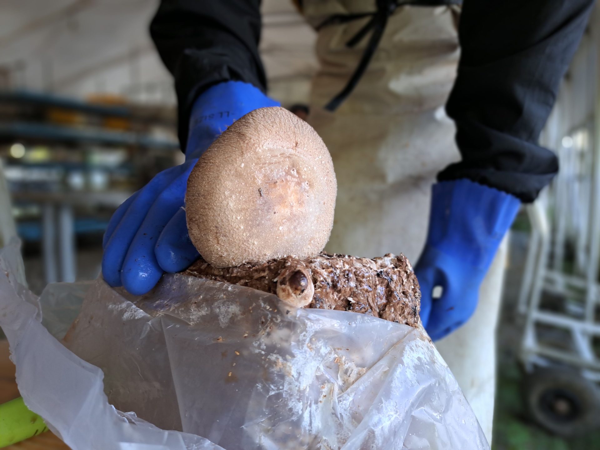 急激な寒暖差で袋内発生してしまっていたようです~まずはこのような椎茸を取り除く作業から始めます!